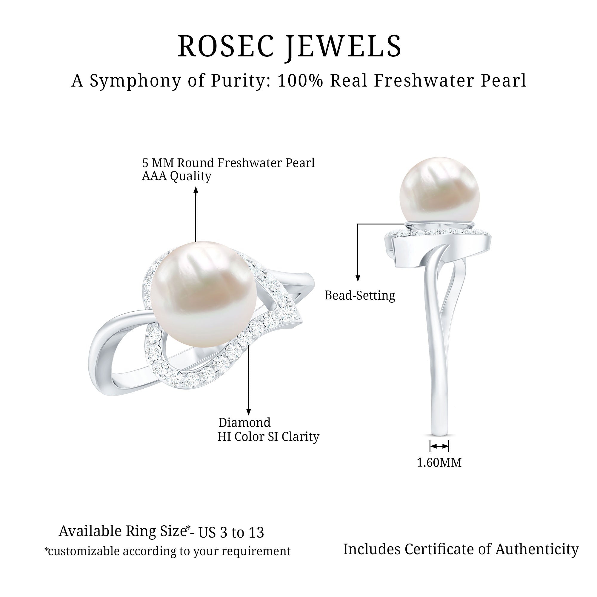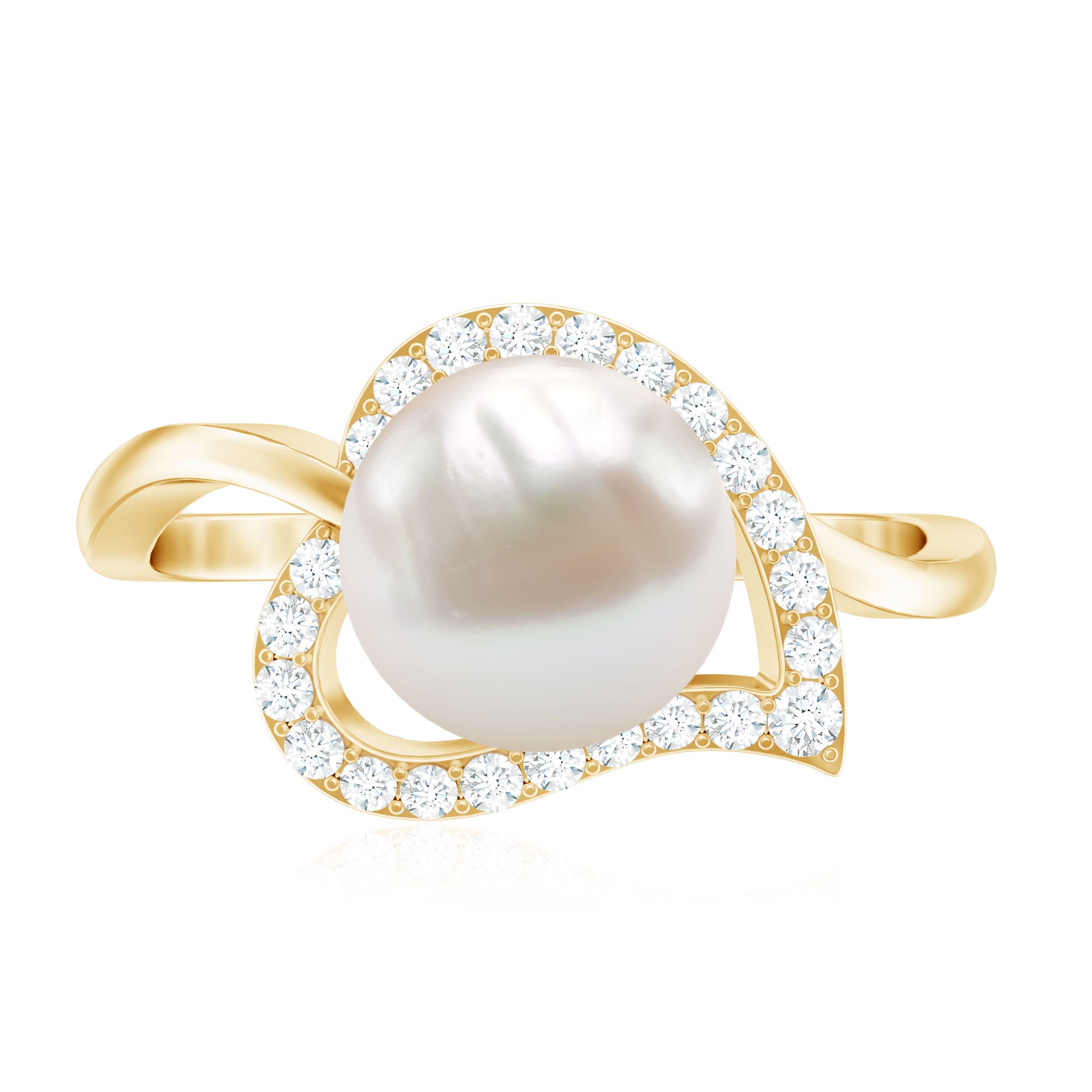 Express your love in the most exquisite way with our Pearl Heart Engagement Ring, featuring a dazzling pearl center stone and a bypass shank. The heart ring is accented with a shimmering Diamond, adding a touch of radiance and glamour to this already stunning piece. Perfect for showing your love and appreciation to that special person in your life, this ring is sure to become a treasured symbol of your eternal and never-ending love. So why wait? Grab this Freshwater Pear Ring with Diamond today and make her feel truly cherished and adored.