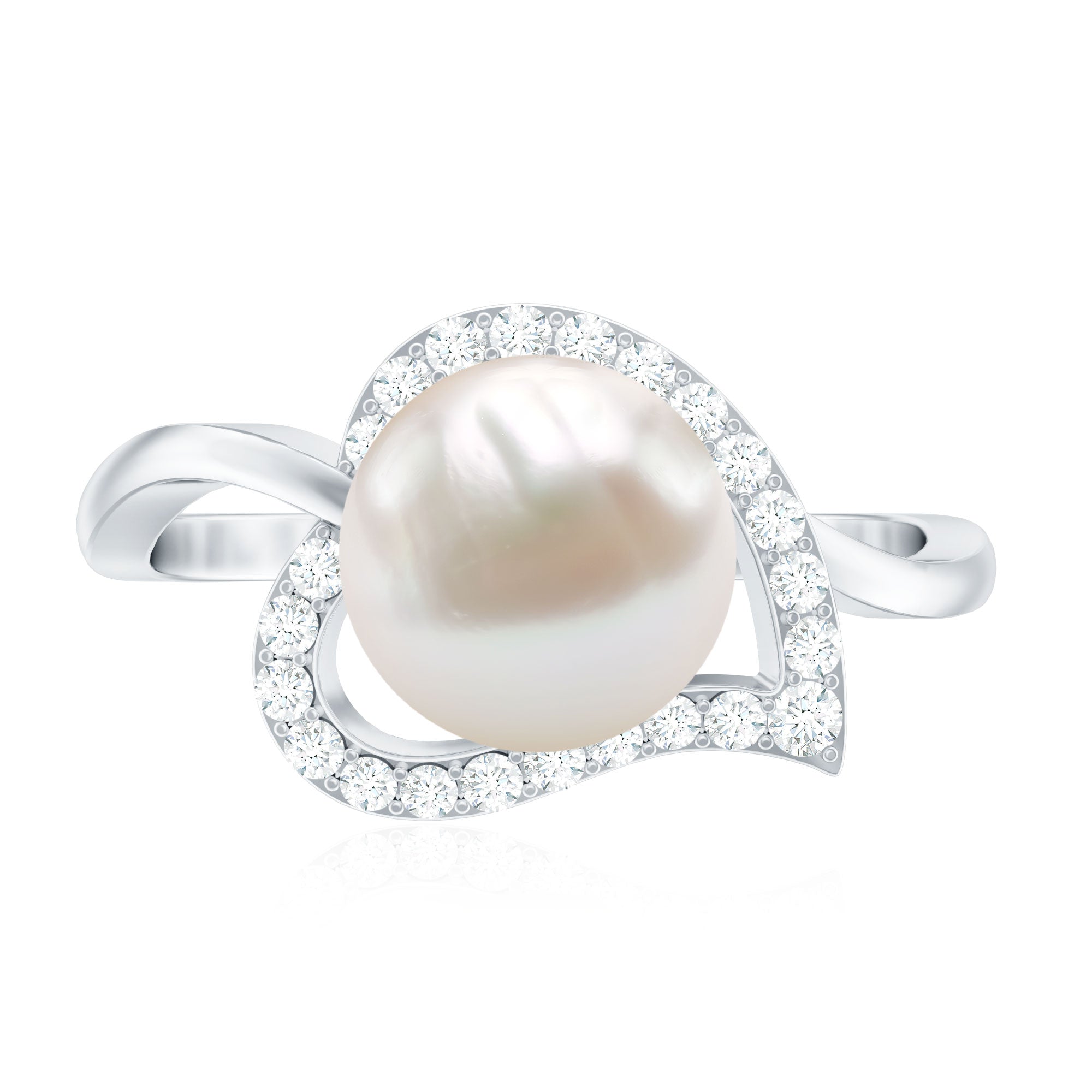 2.25 CT Freshwater Pearl and Diamond Heart Bypass Engagement Ring