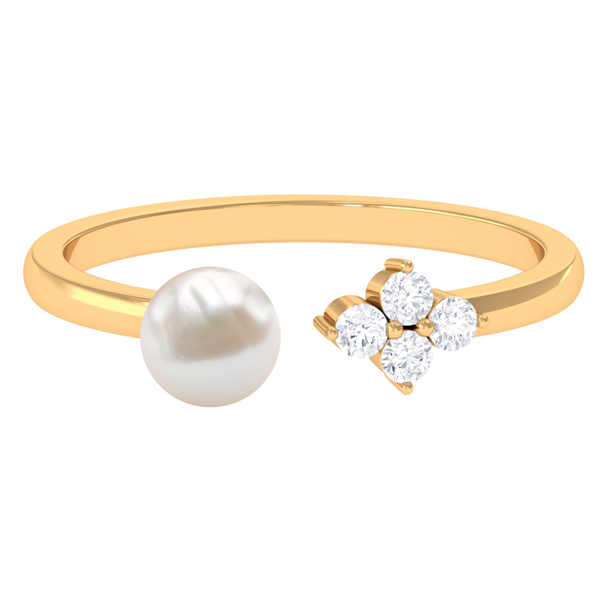 Experience the opulent grace of our Freshwater Pearl Ring, a testament to luxurious style. Adorned with a lustrous Freshwater Pearl delicately nestled in a Bead Setting, and further enhanced by the sparkle of Round Shape Diamonds on an Open Cuff Ring, this piece embodies a captivating and sophisticated design. Embrace the allure of this Pearl Cuff Ring, a striking and eye-catching accessory that adds a touch of elegance and splendor to your look.