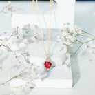 Express your love with a Heart Infinity Pendant designed to capture romance, devotion, and timeless beauty. Features an 8 MM heart shaped lab created ruby, held in secure prong setting. Surrounding the ruby is a sparkling halo of round moissanite stones, adding brilliance and giving the Ruby Heart Necklace a luxurious glow. Above the heart, a graceful infinity symbol represents endless love and an unbreakable connection. The symbol is also accented with round moissanites, creating a beautiful flow of sparkle from top to bottom. Every detail is crafted to highlight the pendant’s romantic meaning while keeping the design elegant and easy to wear. Hanging from a smooth cable chain with a hidden bail, the Lab Grown Ruby Necklace has a seamless look that sits comfortably against the skin. This thoughtful design makes it perfect for daily wear or special occasions. Ideal for Valentine’s Day, anniversaries, or any romantic moment, this Heart Shape Pendant makes a heartfelt gift for someone you adore. Its meaningful symbols, dazzling stones, and graceful style create a piece that celebrates love in the sweetest way.