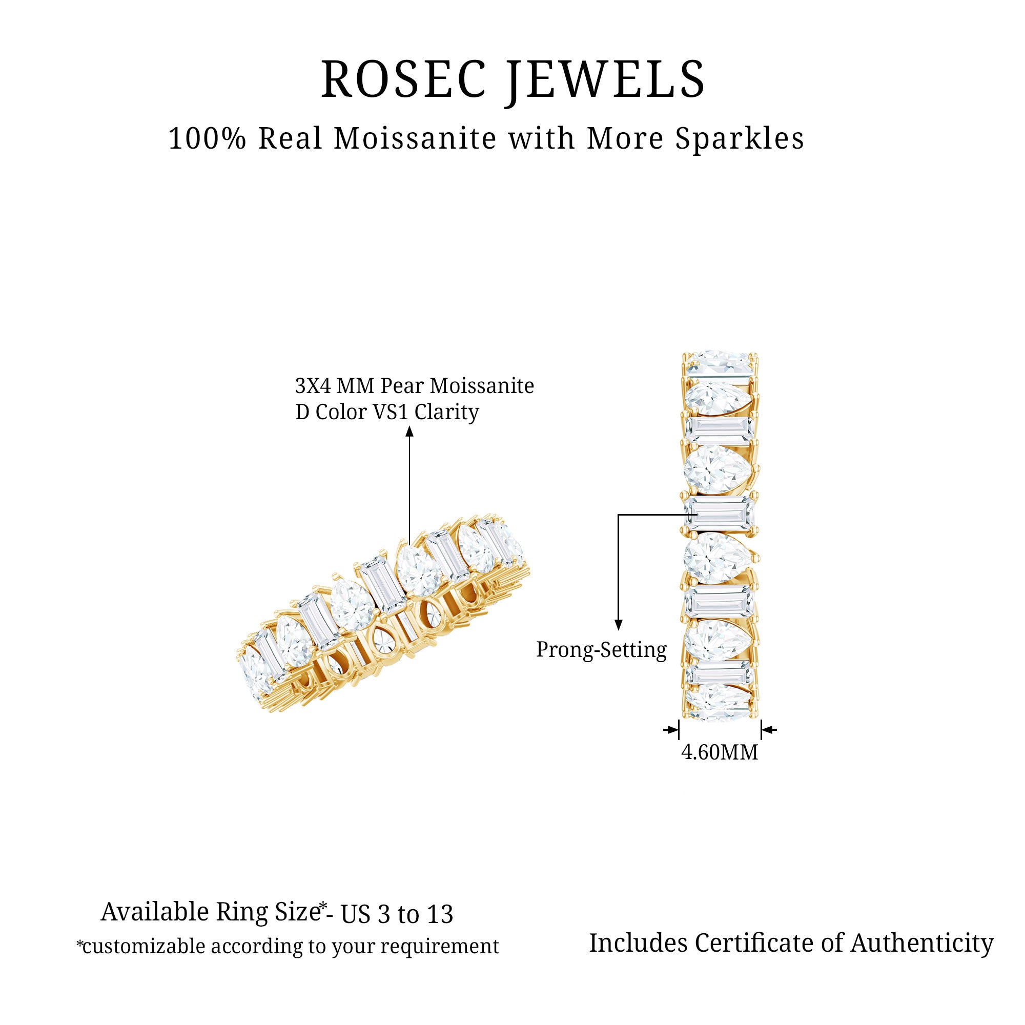 In this section, we will discuss why Rosec Jewels is one of the best websites for moissanite rings. Most buyers want to pick the best-certified moissanite rings and don't know the factors affecting the moissanite ring prices. 4Cs are the most important factor for any gemstone in deciding its quality and price. What are these 4c's and how to check them, while moissanite diamond rings, Read below: