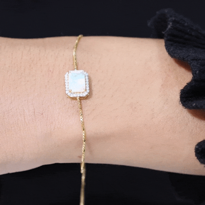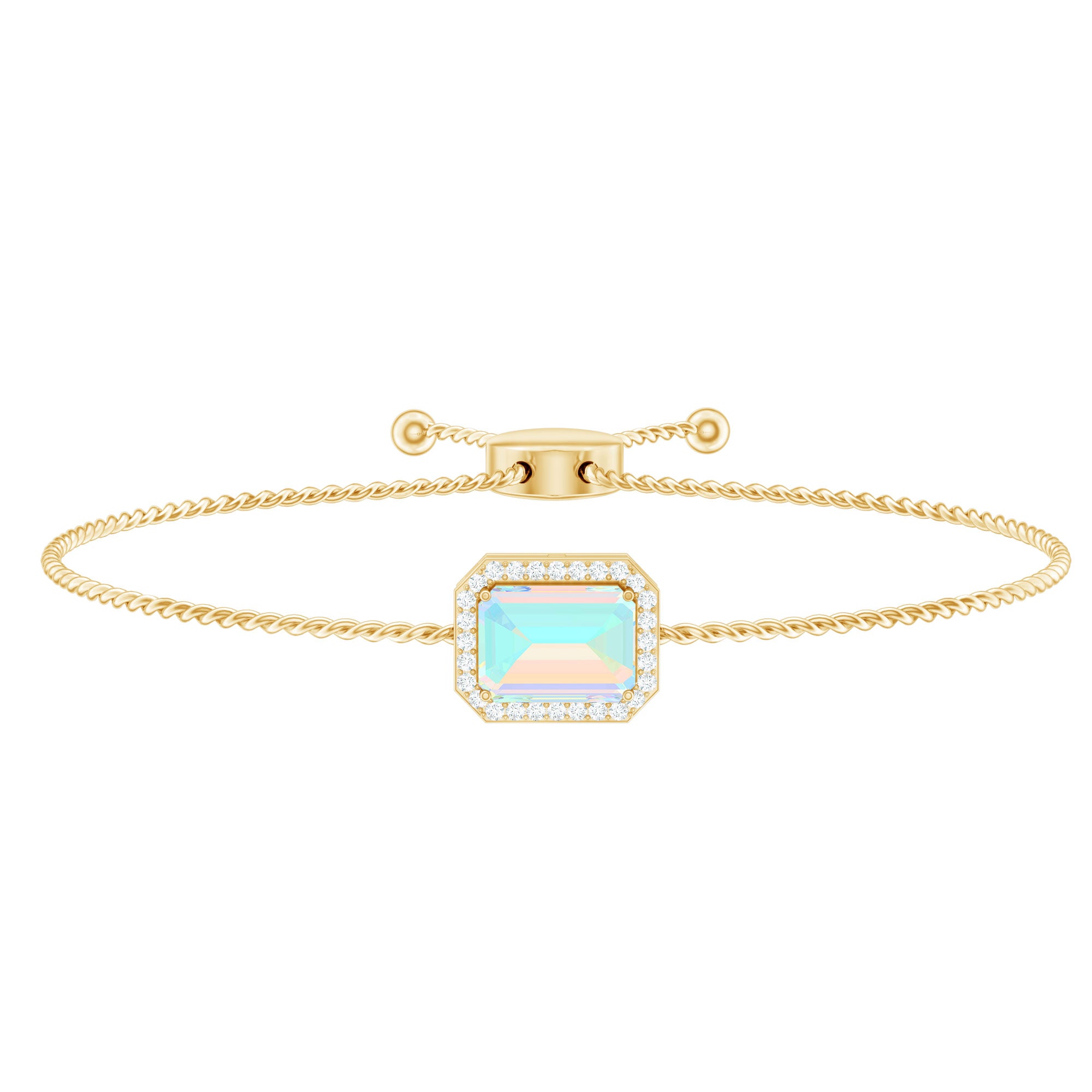 Enhance your Beauty with this Beautiful Gold Bolo Chain Bracelet embellished with Octagon Cut Ethiopian Opal in Prong Setting with Diamond Accent, crafted in Solid Gold Metal.