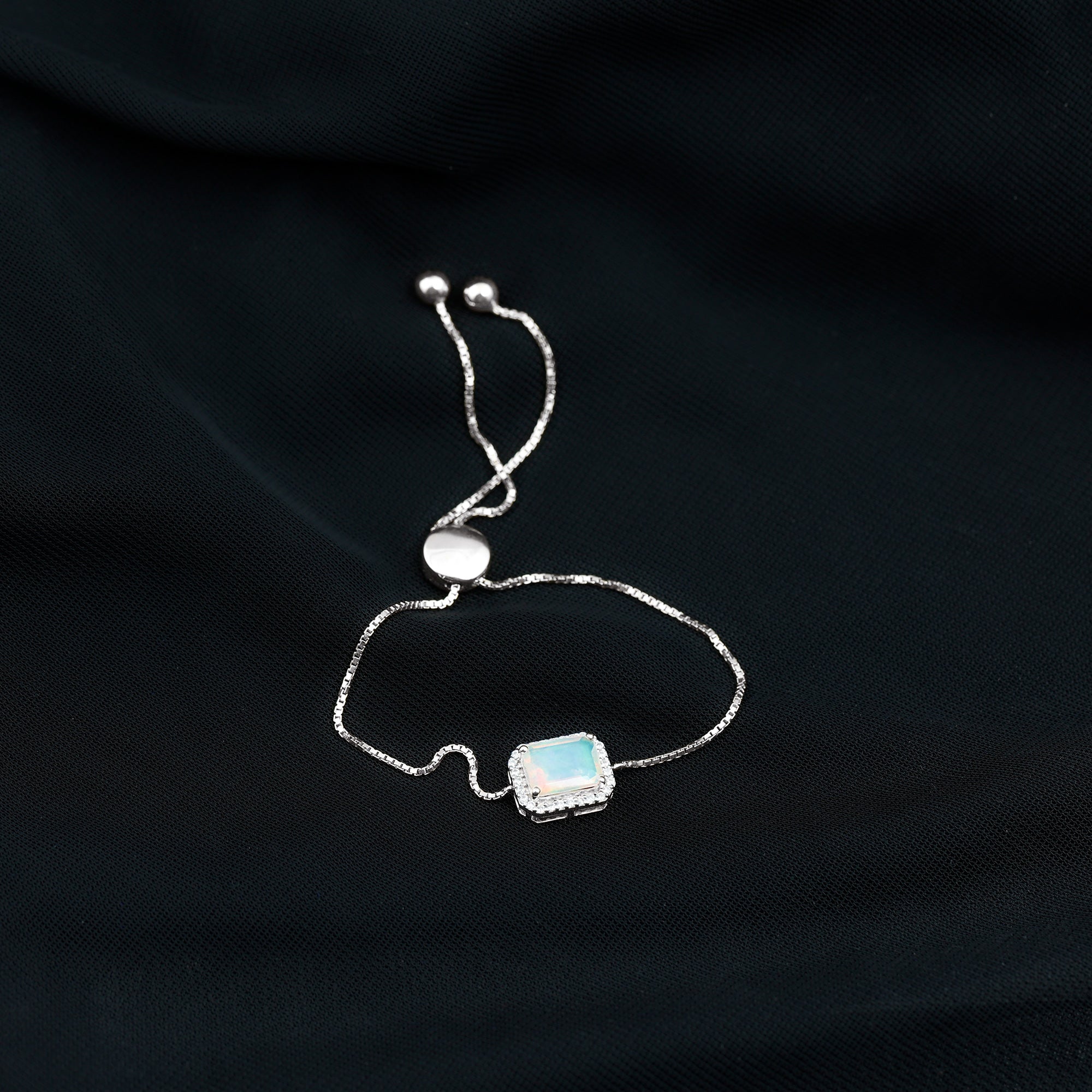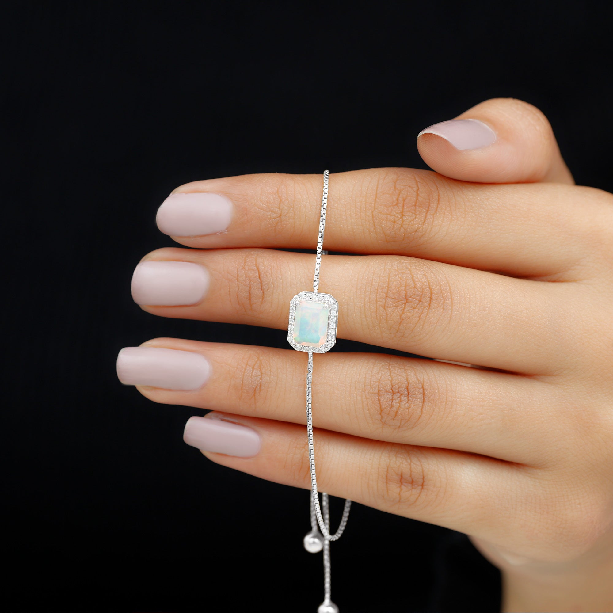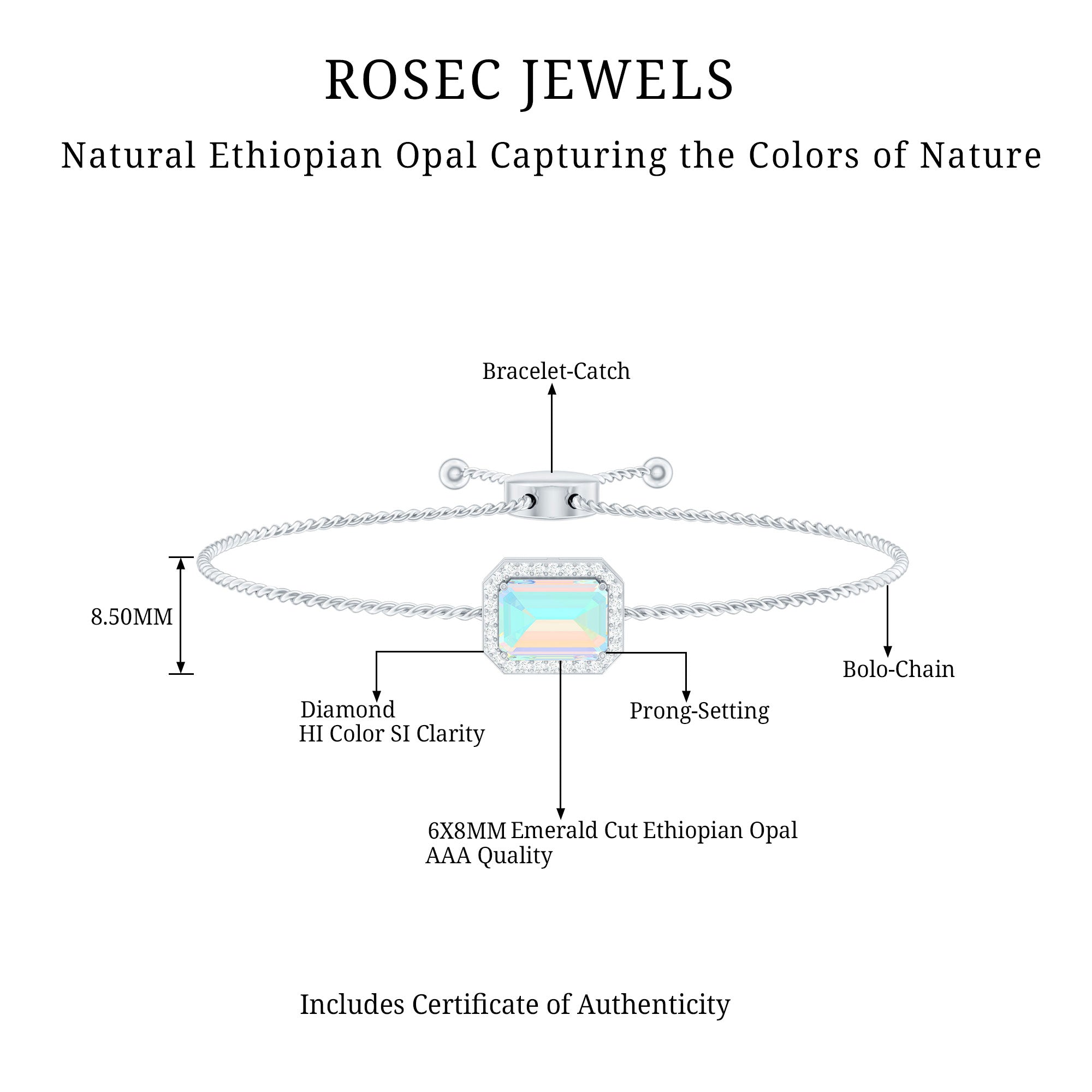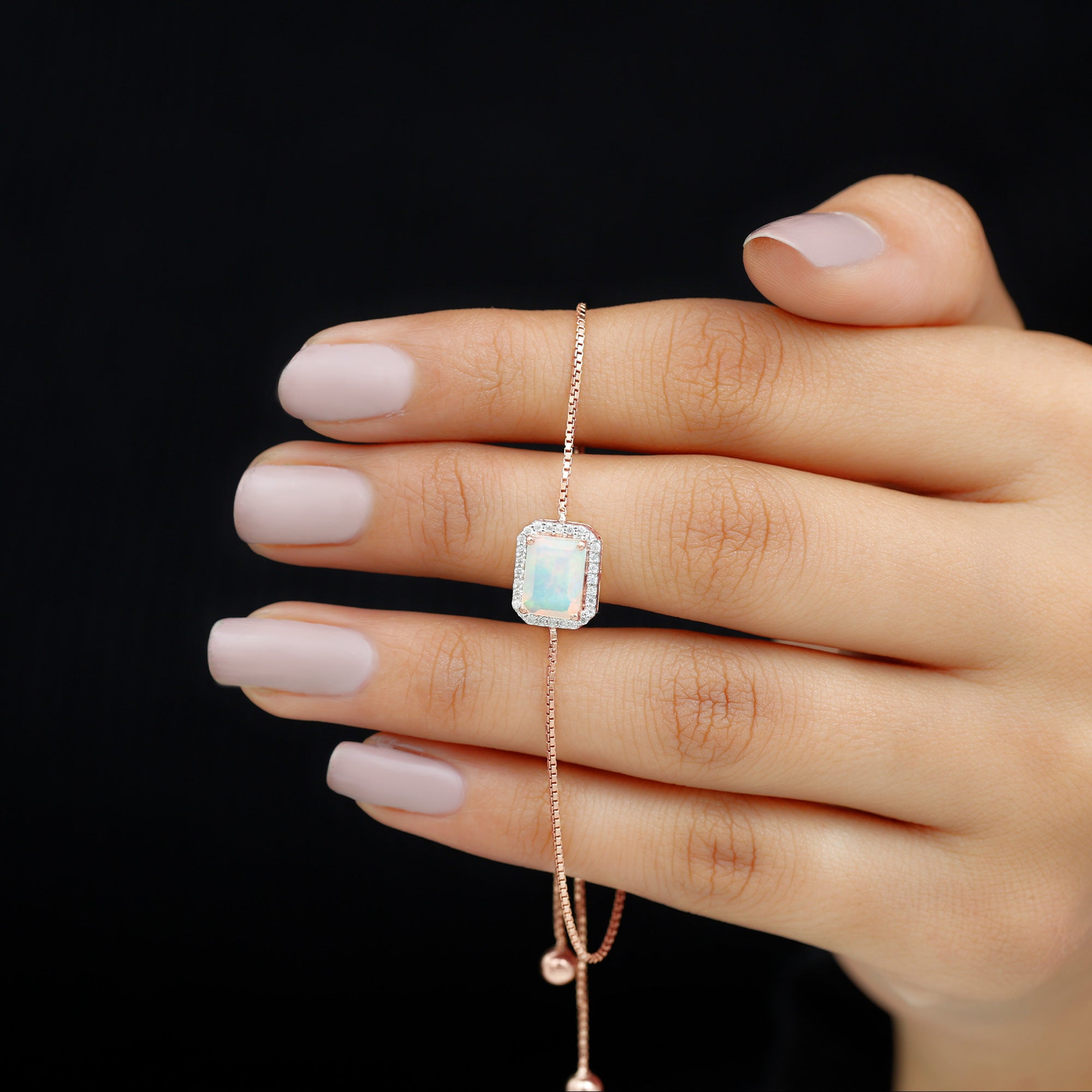 2.25 CT Octagon Cut Ethiopian Opal and Diamond Bolo Chain Bracelet