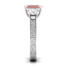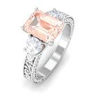 2.25 CT Octagon Cut Morganite and Moissanite Three Stone Engraved Anniversary Ring