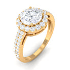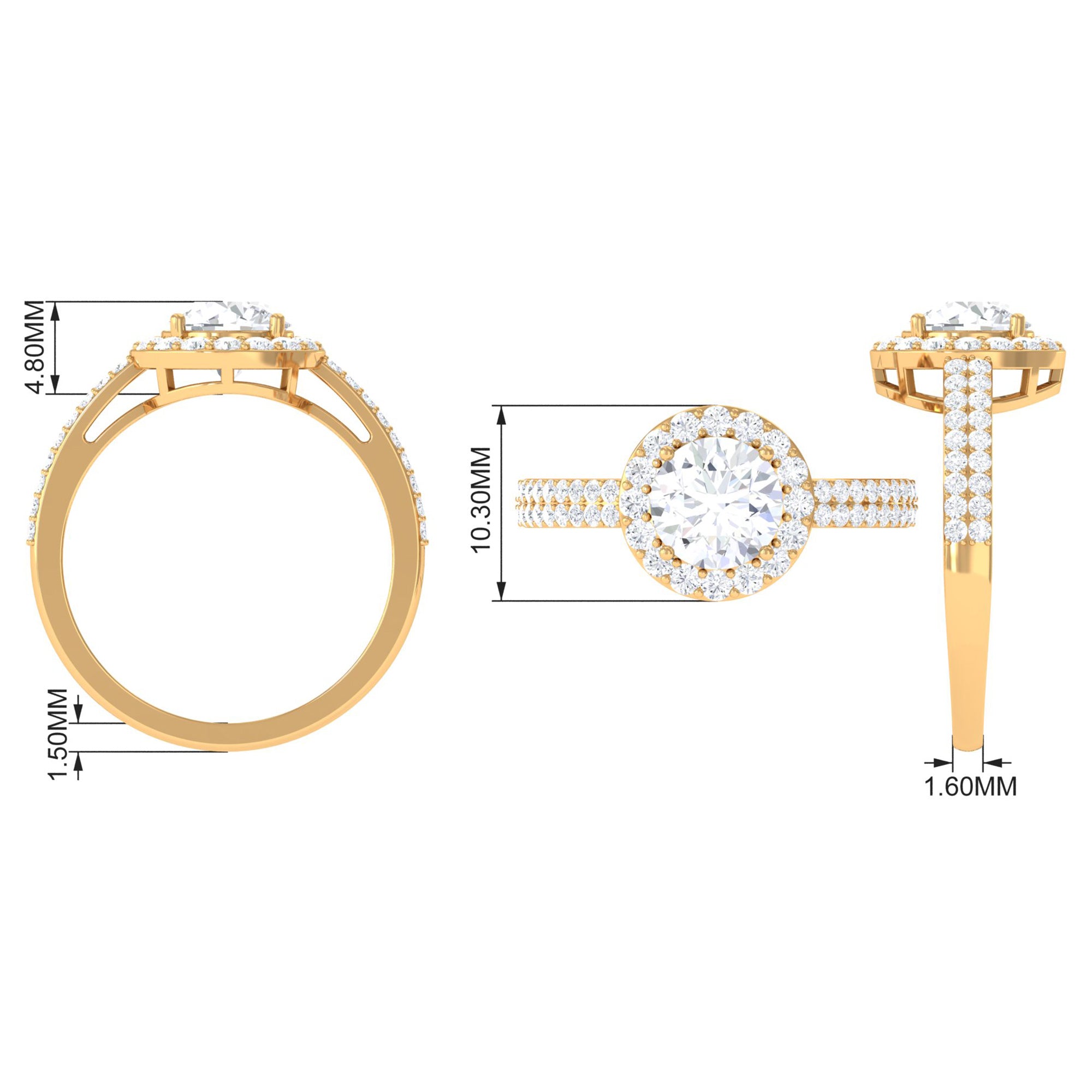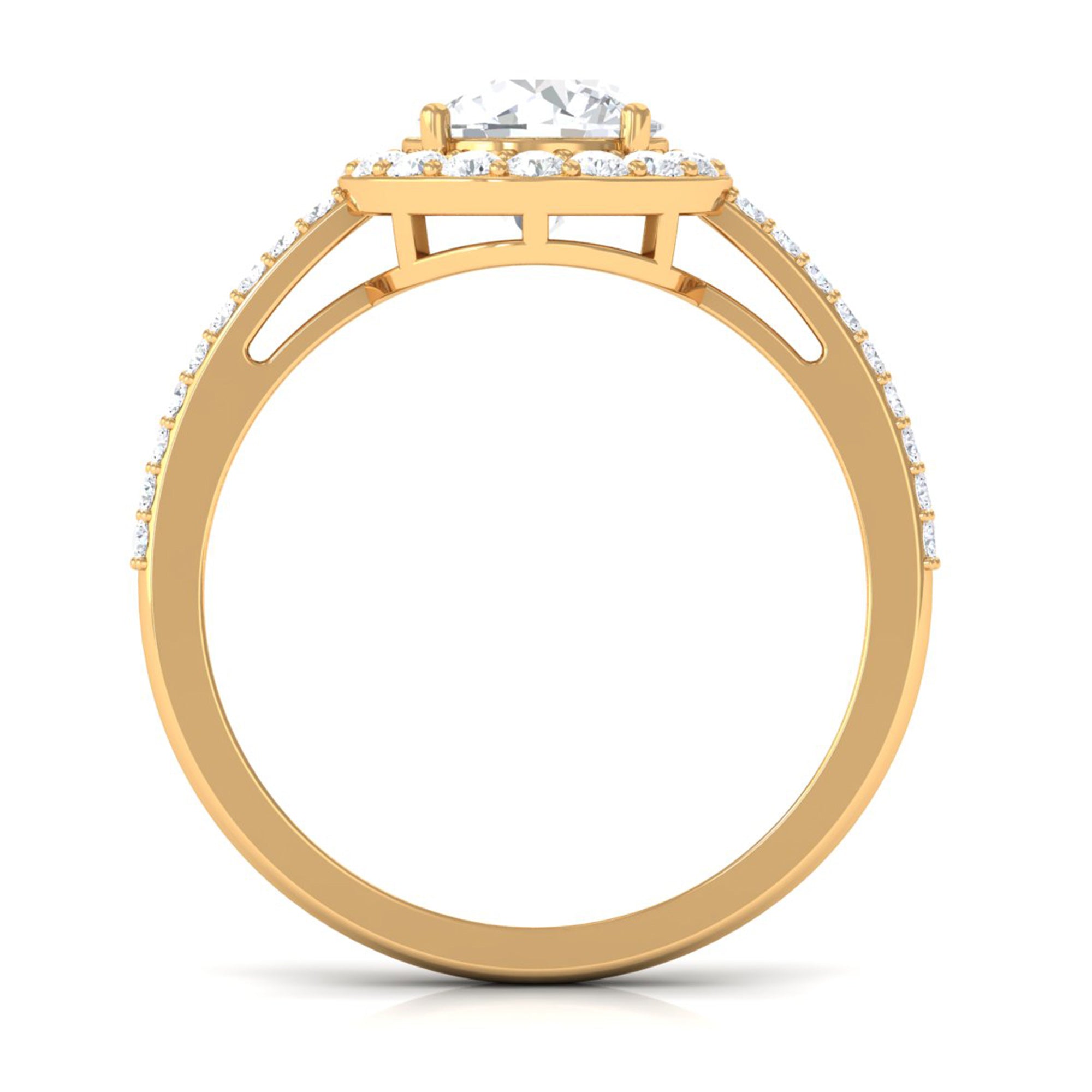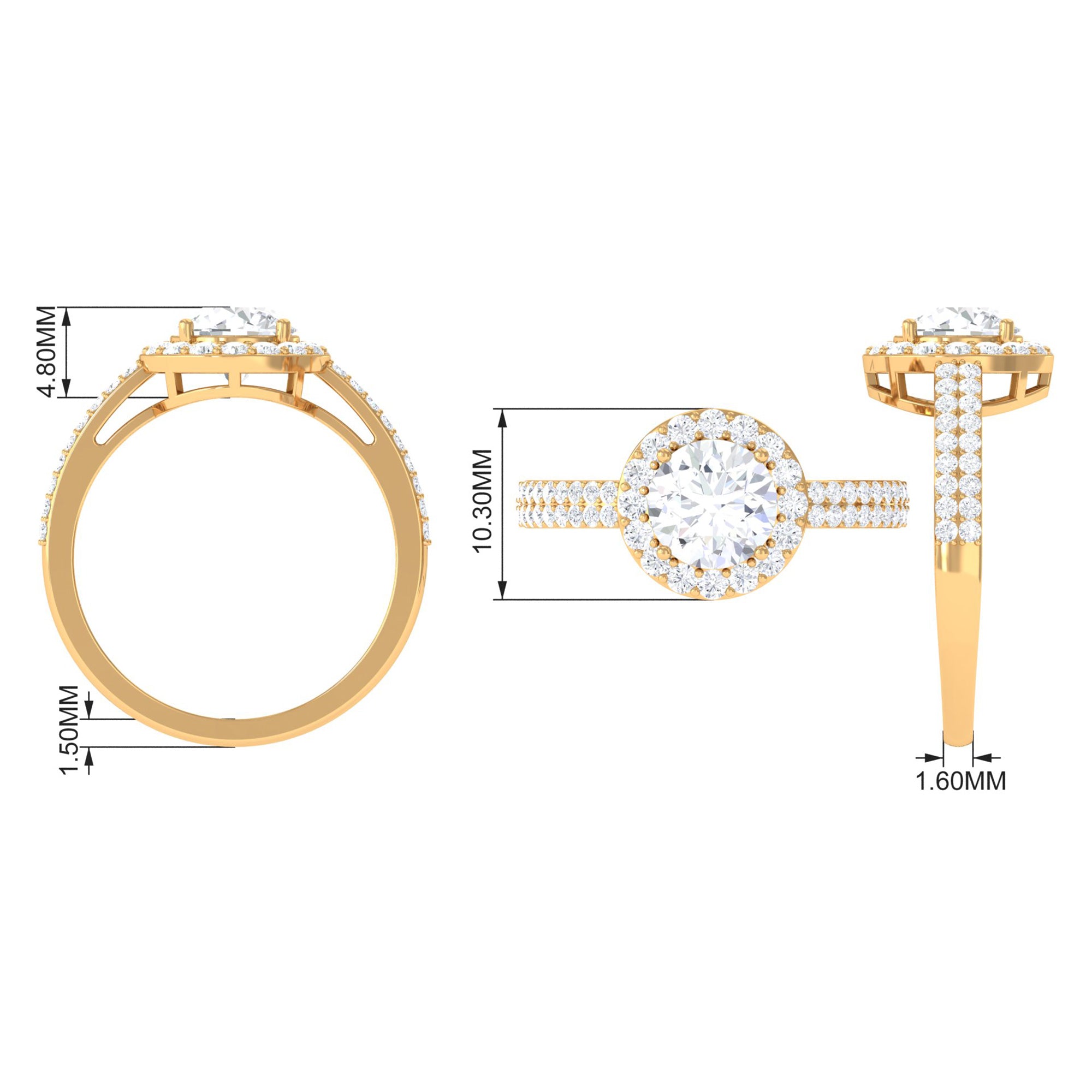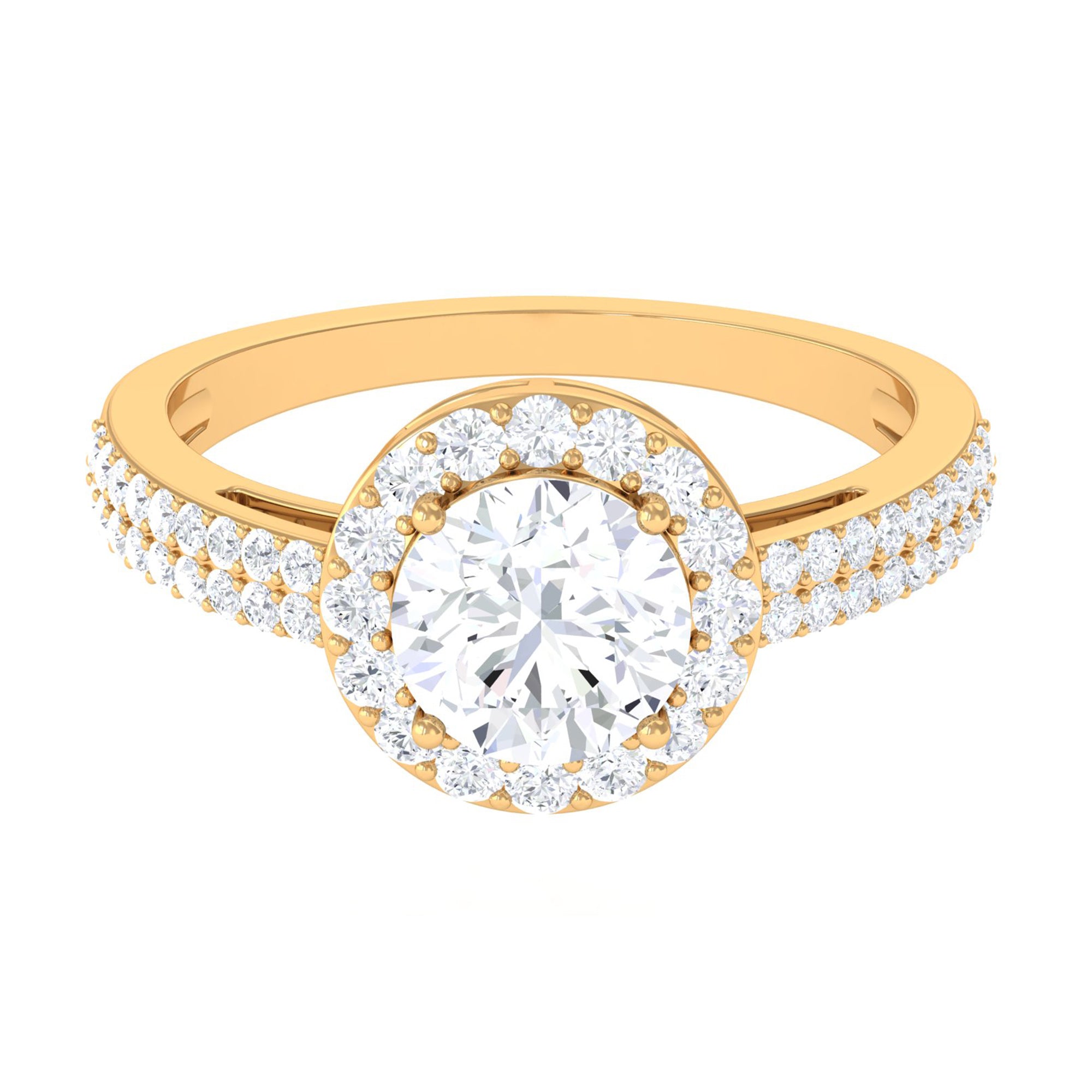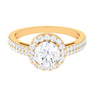 For your unforgettable moment, buy this Cubic Zirconia Engagement Ring. This Classic Round CZ Ring is embellished by Halo and Side Stones, which make this ring look more sumptuous. This Simulated Diamond Engagement Ring is crafted in Gold for alluring charm. This Engagement Ring is unique and it exhibits high brilliance.