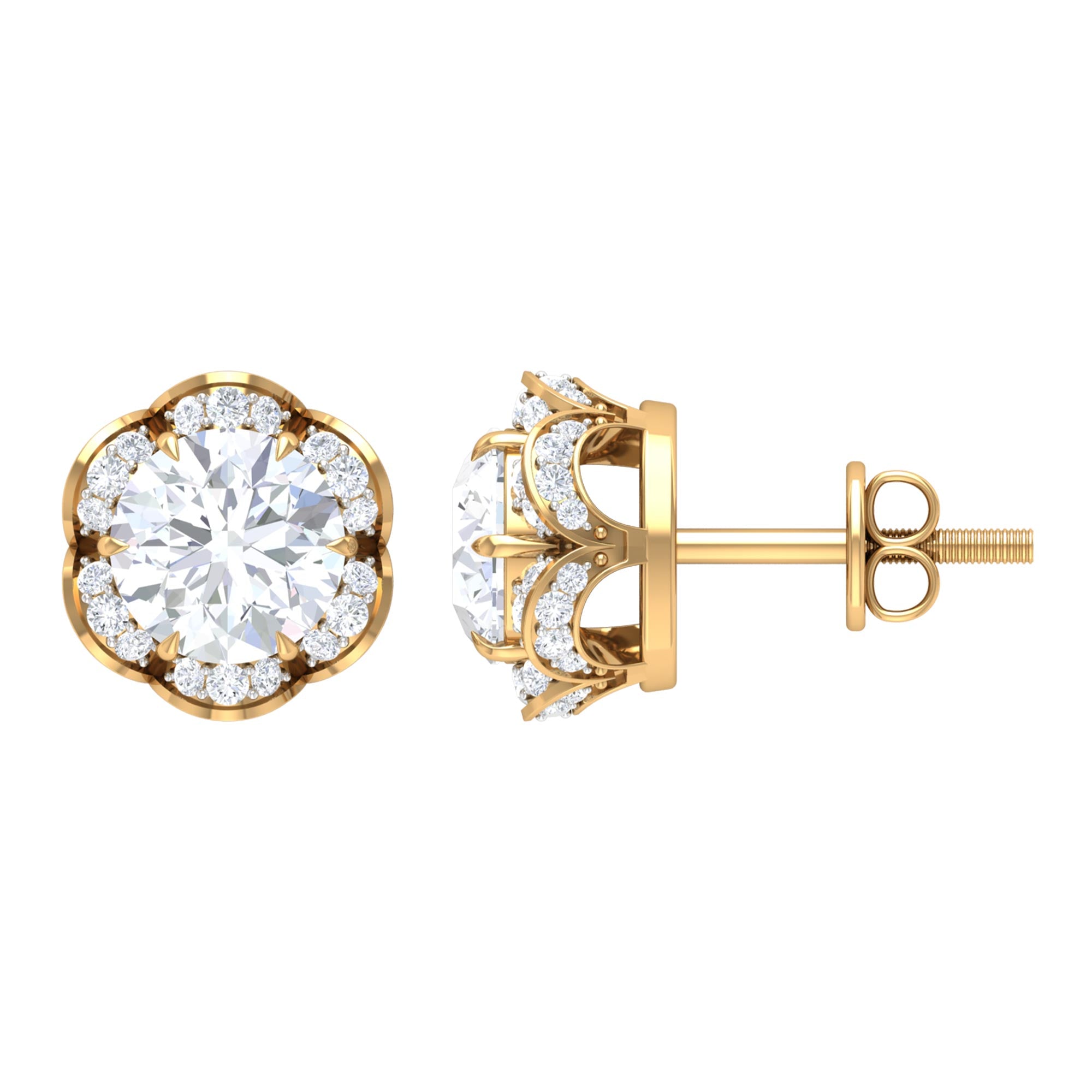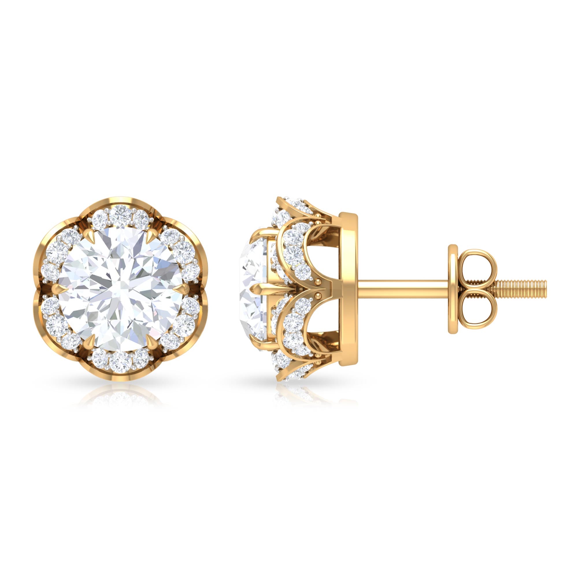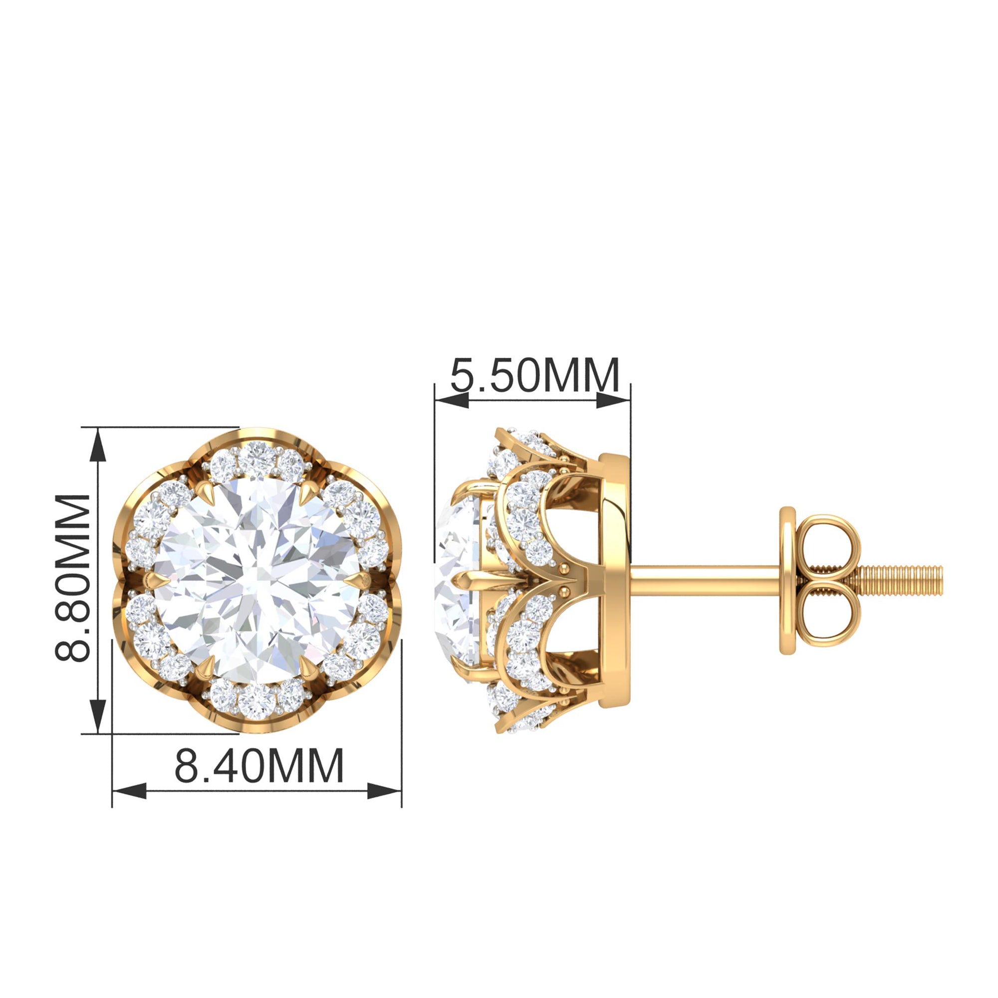 2.25 CT Round Shape Moissanite Floral Stud Earrings