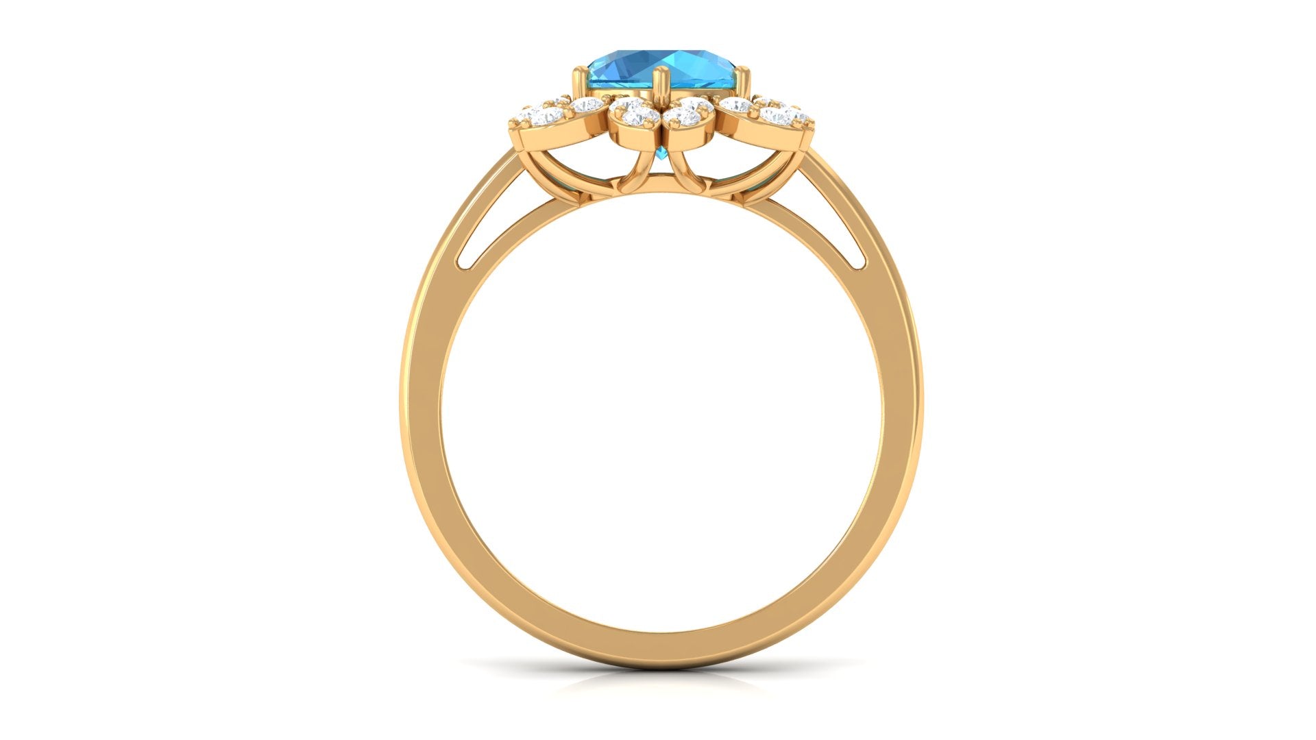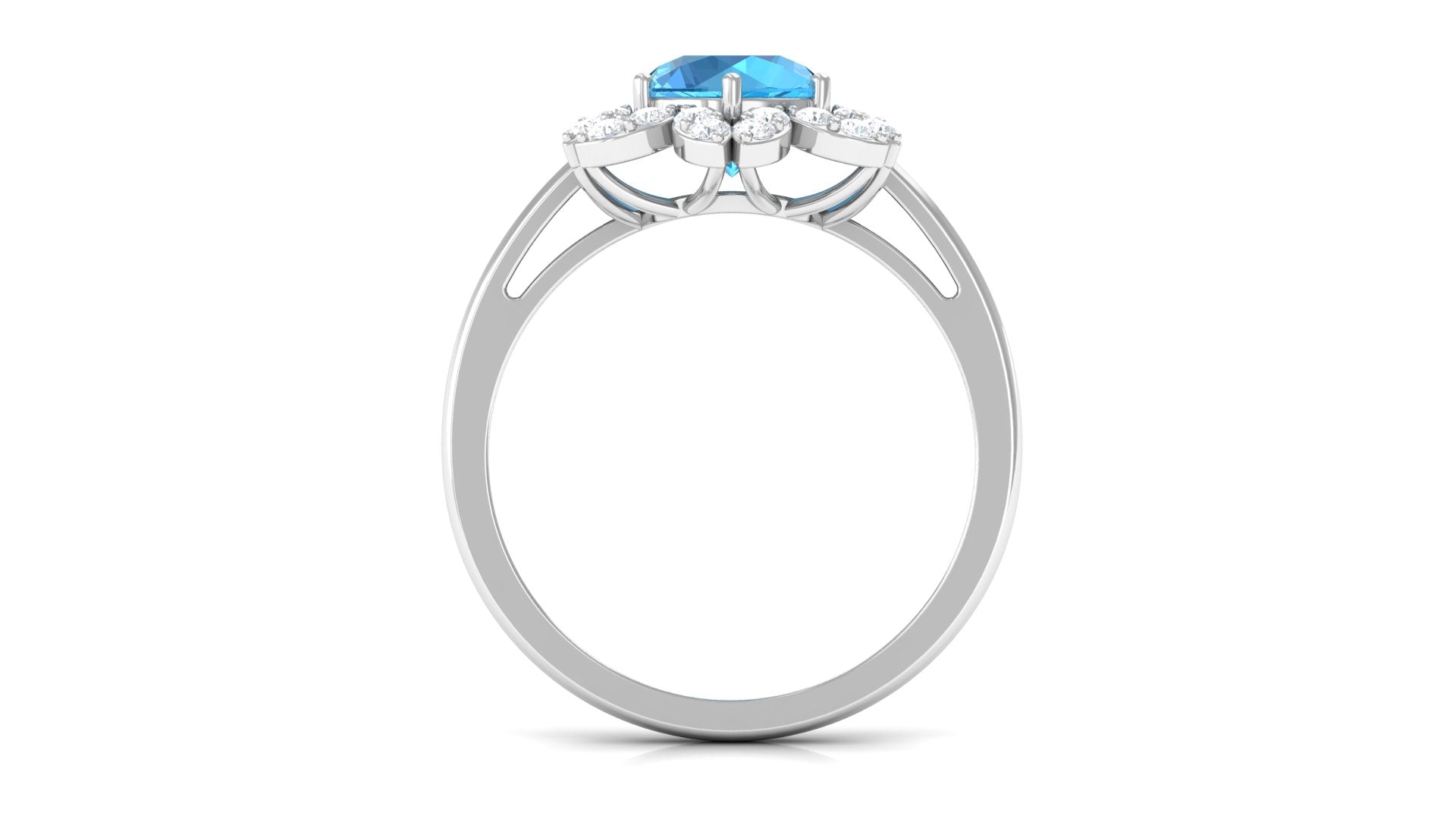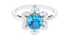 2.25 CT Swiss Blue Topaz Floral Ring with Diamond Halo