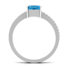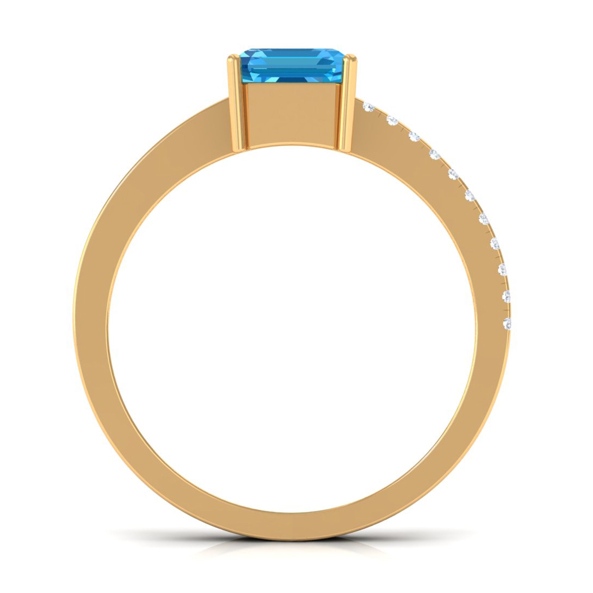 2.25 CT Two Tone Swiss Blue Topaz Solitaire with Diamond Side Stone Ring