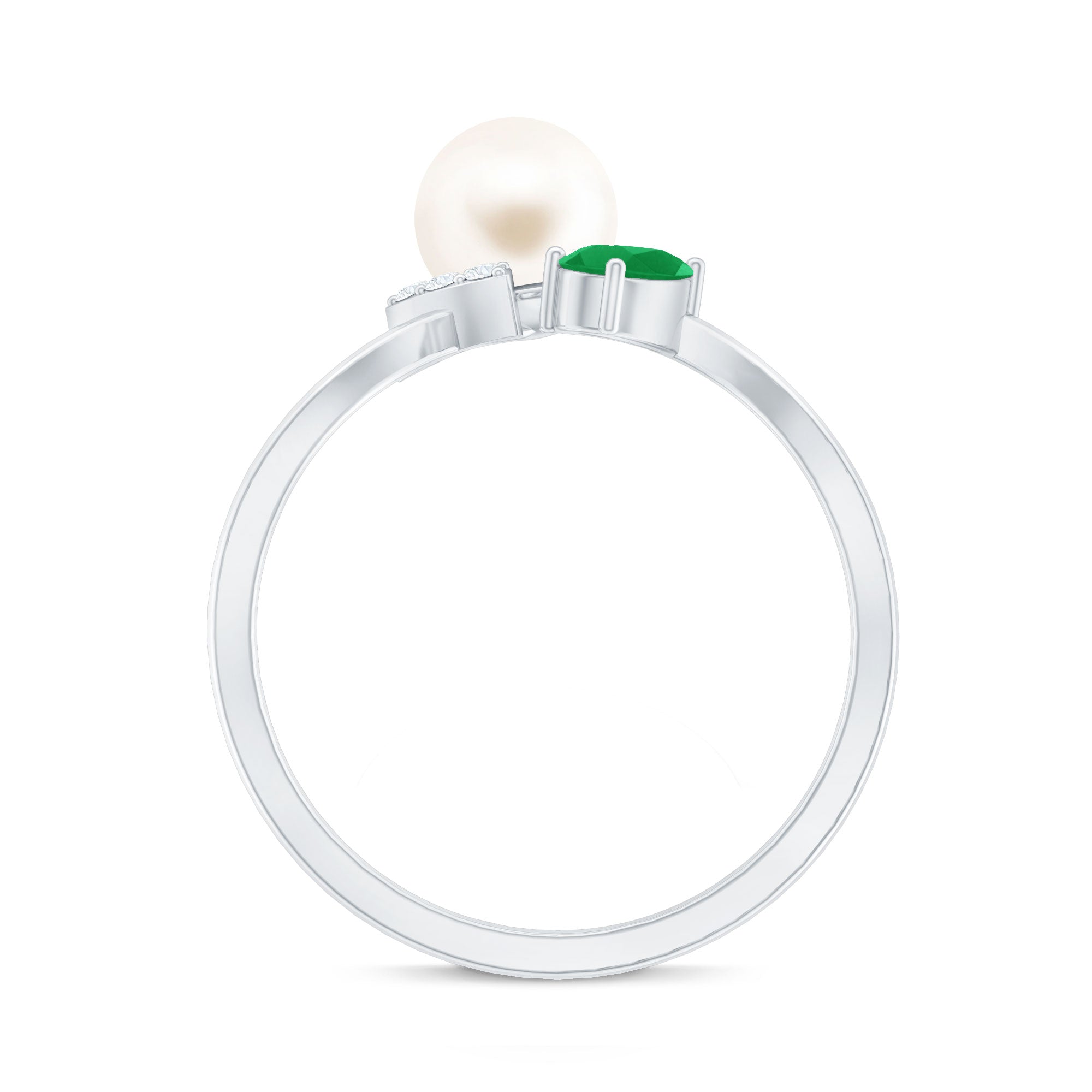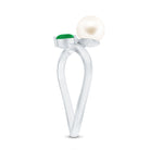 Cultured Freshwater Pearl Emerald Toi Et Moi Promise Ring