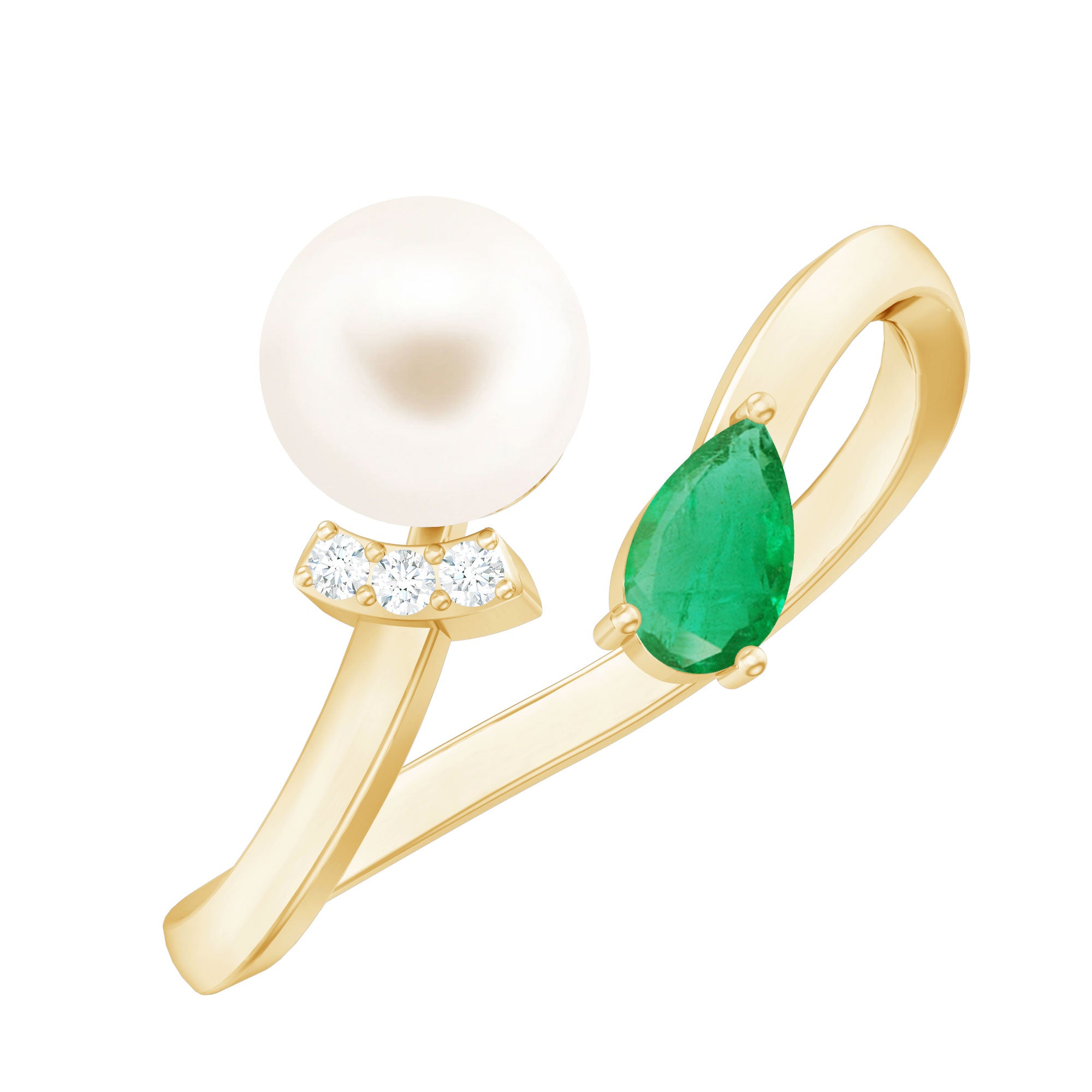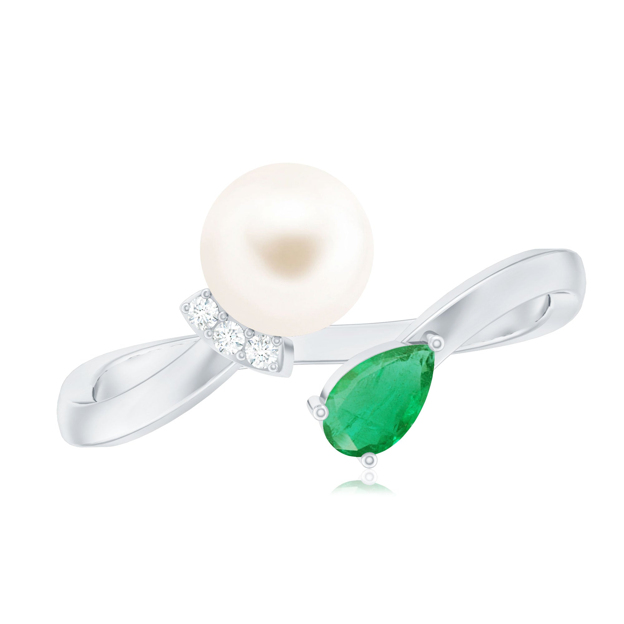 Whispered promises and timeless elegance come together in this exquisite Toi Et Moi Ring, where a luminous 6 mm Freshwater Pearl meets a vibrant 3X5 mm Pear Shaped Emerald in a delicate dance of love. Tiny, sparkling Moissanite stones flank the Pearl, adding just the right hint of shimmer to catch every ray of light and every stolen glance. Designed to wrap gently around the finger, this Pearl Promise Ring embodies connection, making it the perfect symbol of a bond that is uniquely yours. Each glance at this delicate Pearl Emerald Ring evokes romance, devotion and the kind of beauty that never fades. Whether gifted as a promise, an engagement or a meaningful token of affection, this Wrap Ring tells a story of shared dreams and endless devotion. The combination of soft Pearl, vibrant Emerald, and sparkling Moissanite captures the essence of a love that is both gentle and extraordinary. Let this Proposal Ring be the sparkling token to your story of love, a piece as radiant as your feelings.