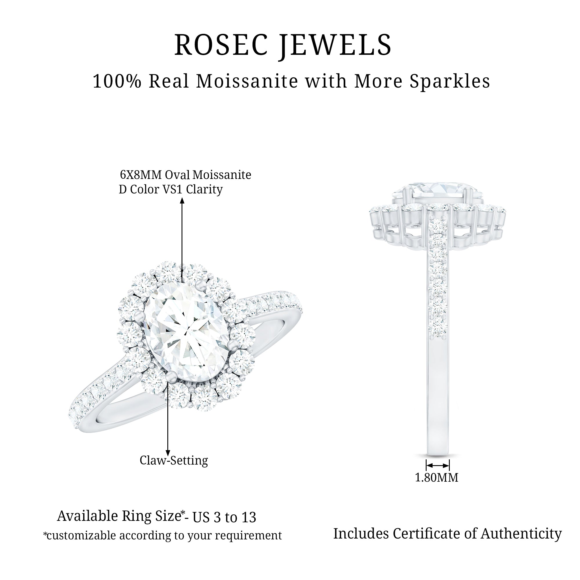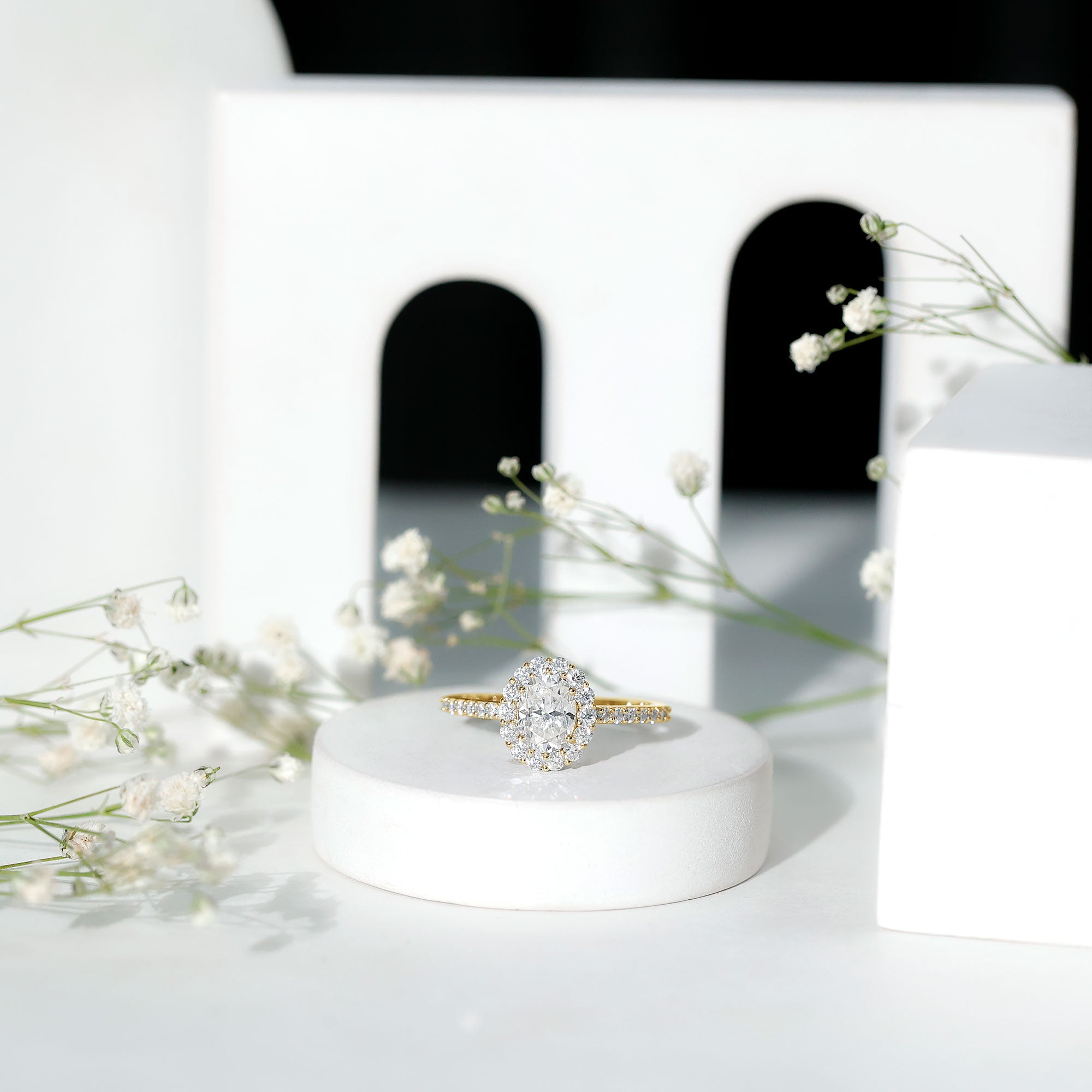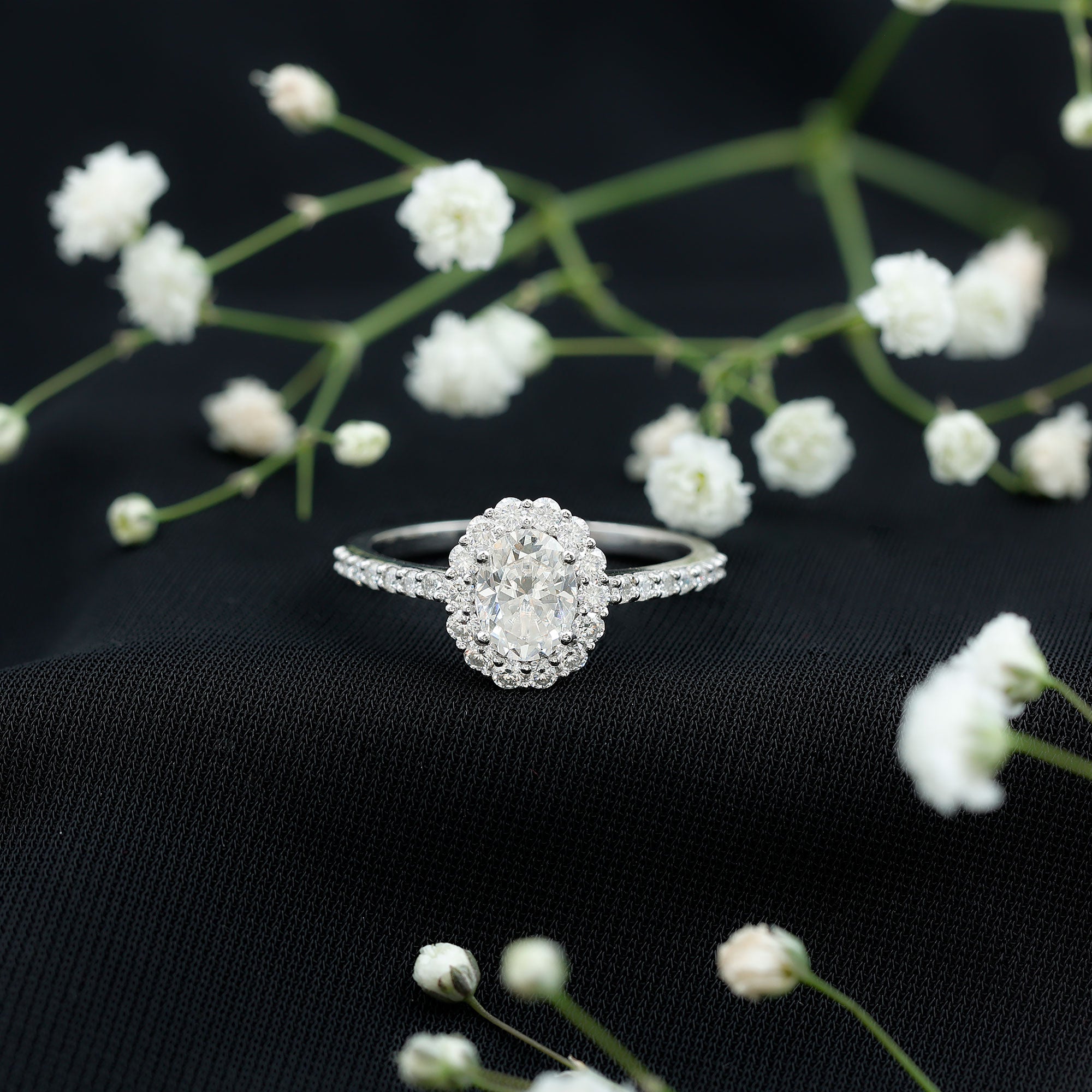 2.5 CT Oval Moissanite Classic Halo Engagement Ring