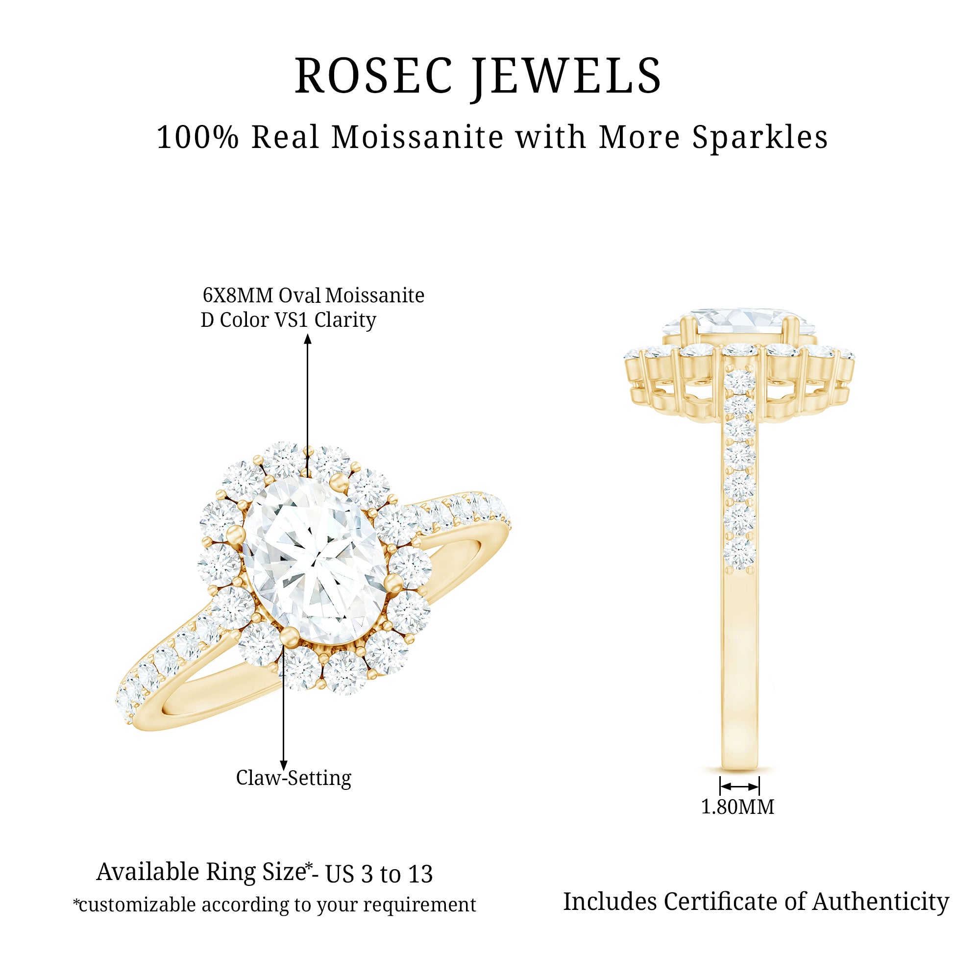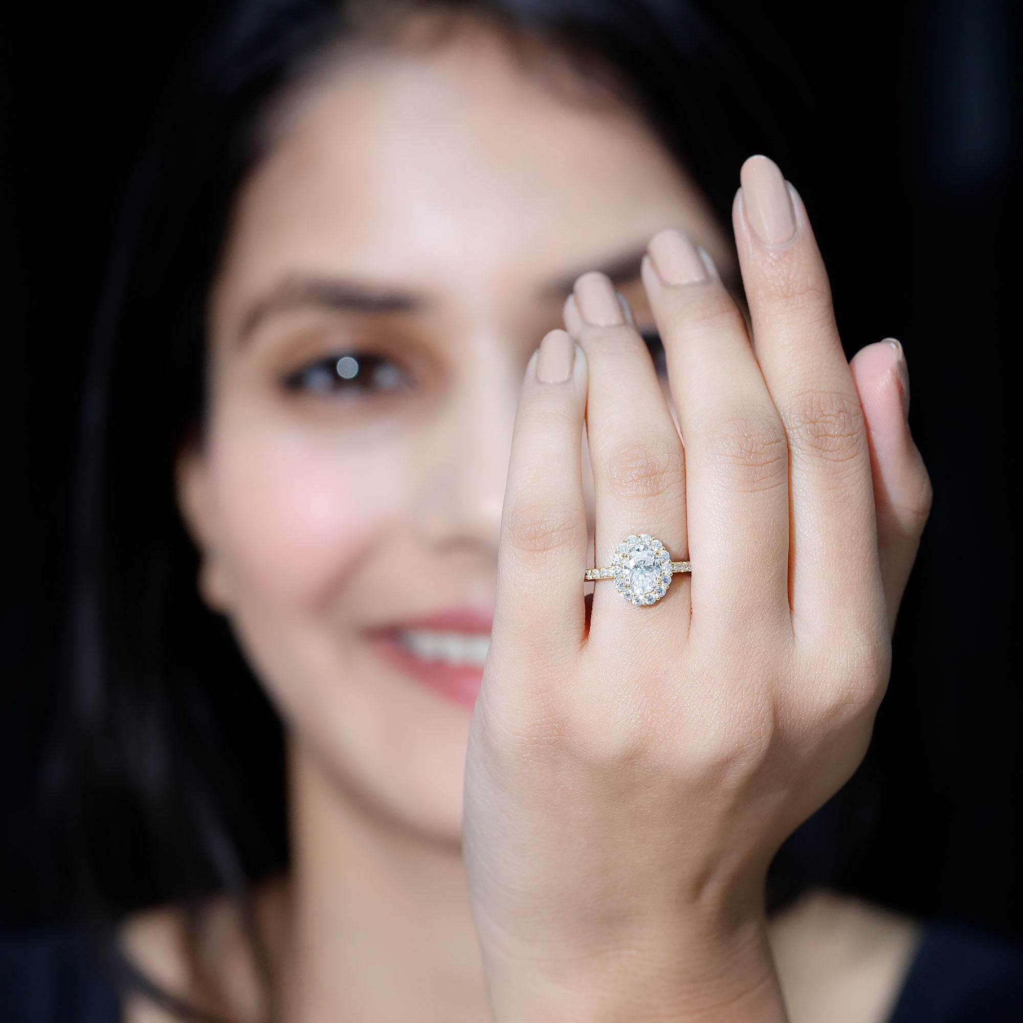 Make your special day unforgettable with this luxurious Engagement Ring, featuring a stunning Oval Cut Moissanite stone in a secure Prong Setting, surrounded by a sparkling Round Moissanite Classic Halo. The Moissanite ring is expertly crafted from Solid Gold, adding to its elegance and sophistication. This beautiful Halo ring is the perfect choice for those seeking a timeless and classic engagement ring that will take their beloveds breath away.