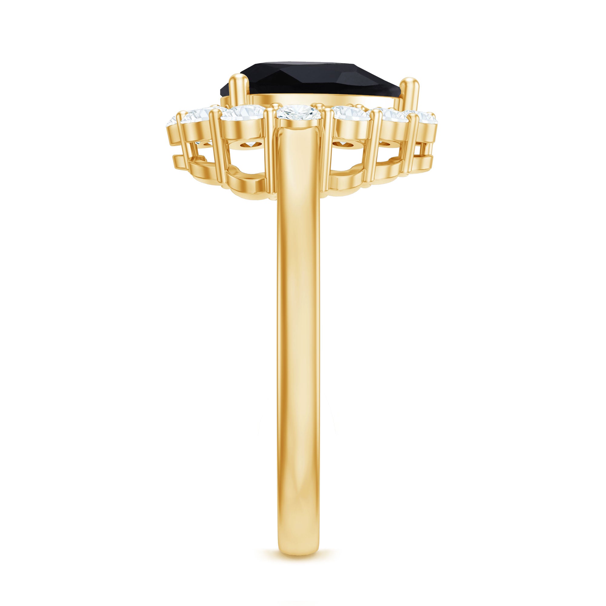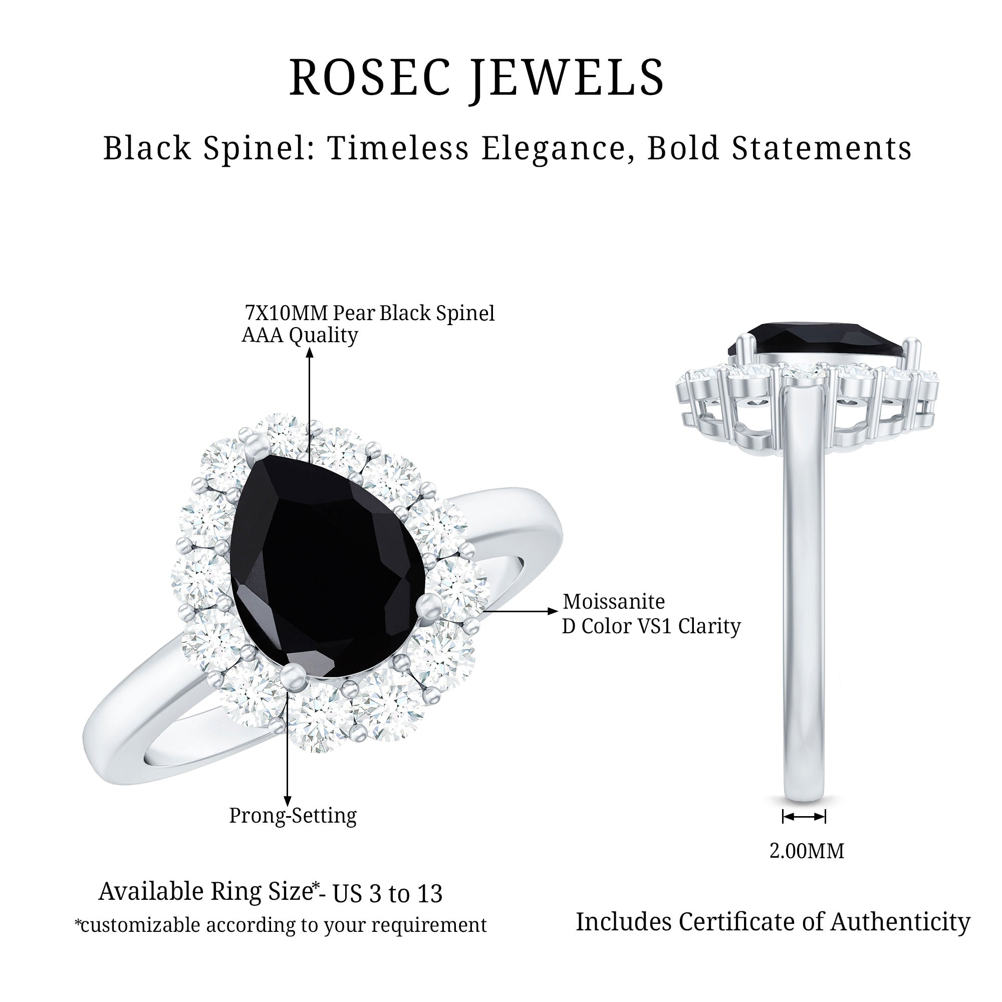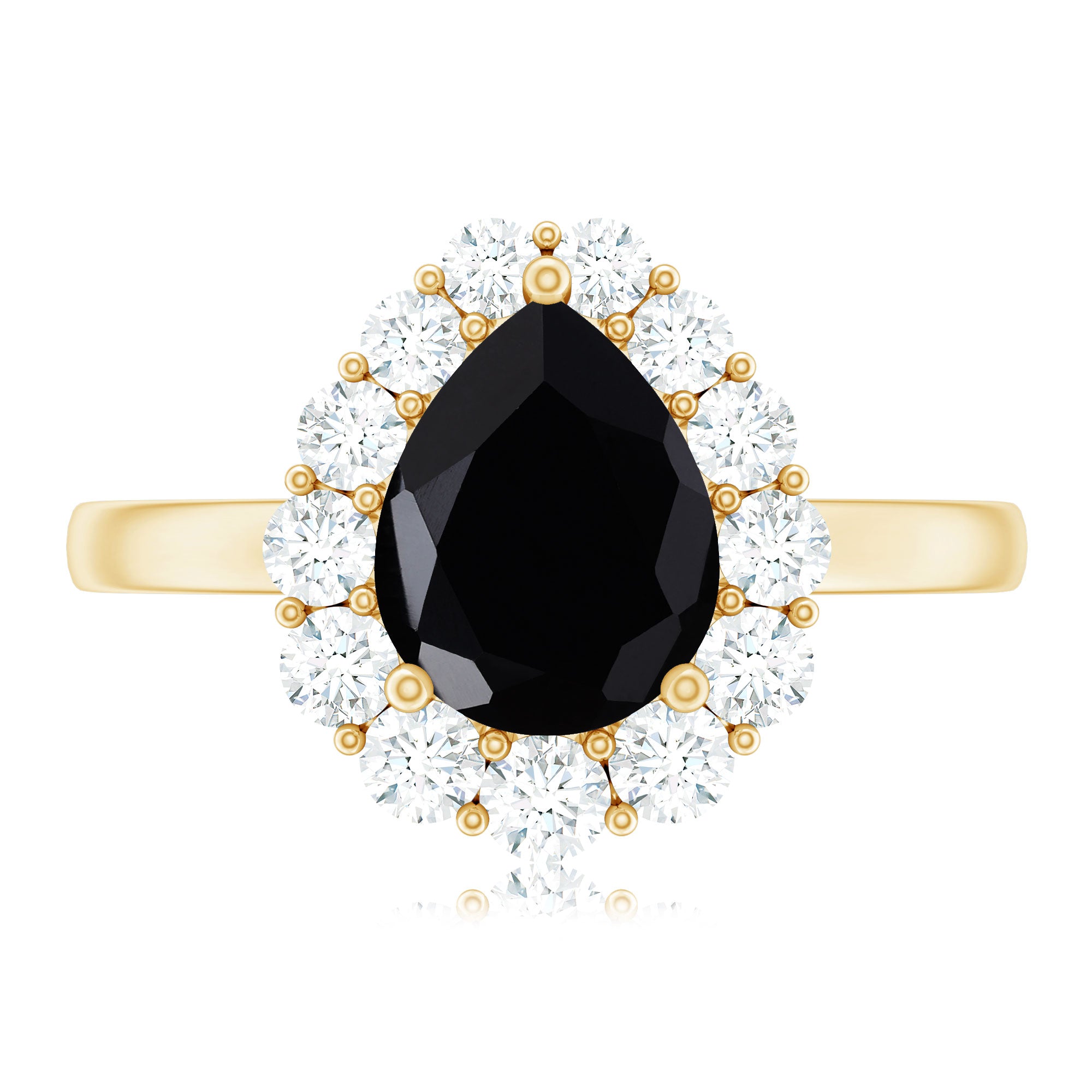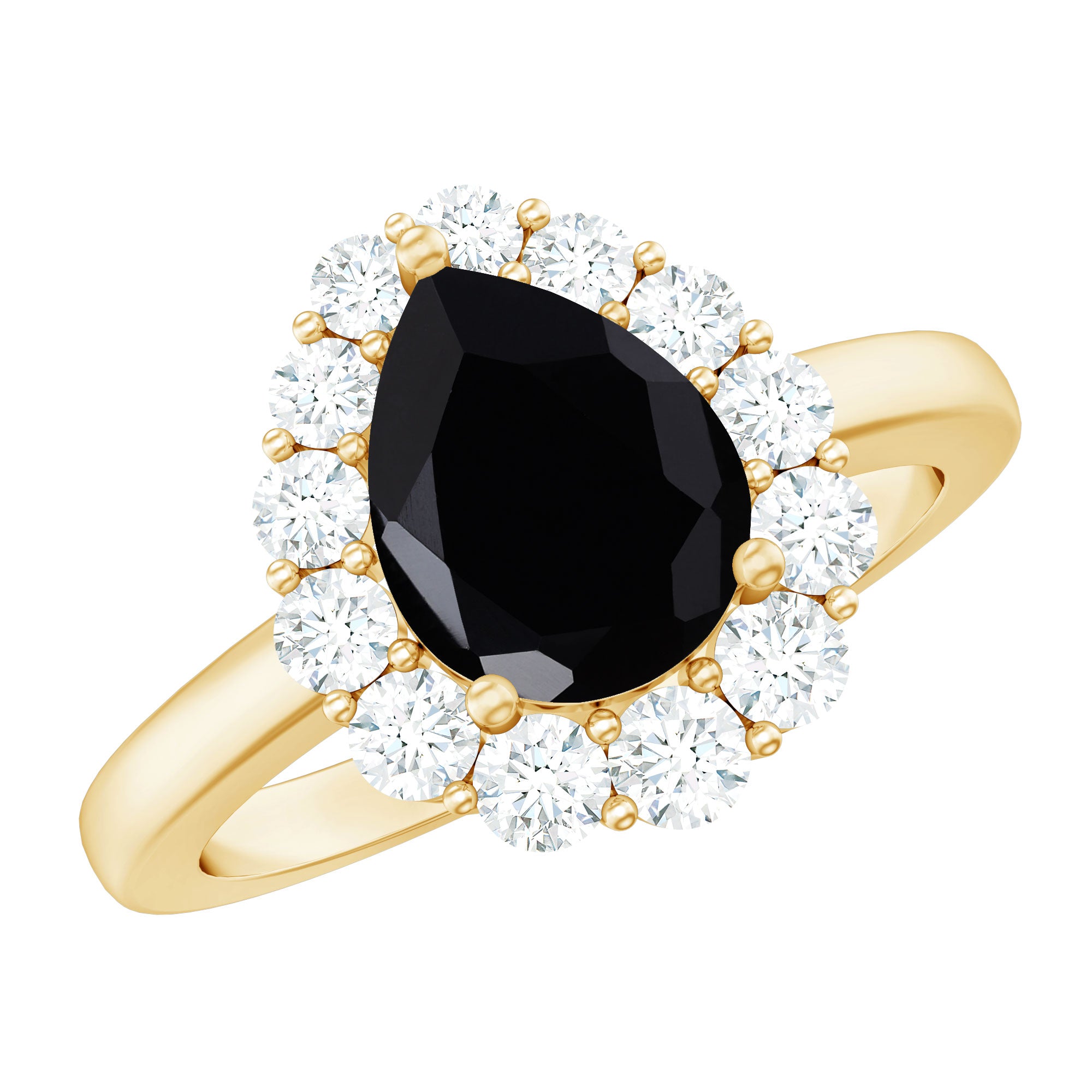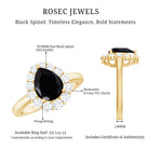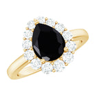 A striking symbol of your everlasting love, this gorgeous Black Spinel Ring for her features a lovely center pear shape Black Spinel that is framed with halo of sparkling Round Moissanite. Pledge your love and affection to your partner by presenting this ultimate Black Spinel Teardrop Ring.