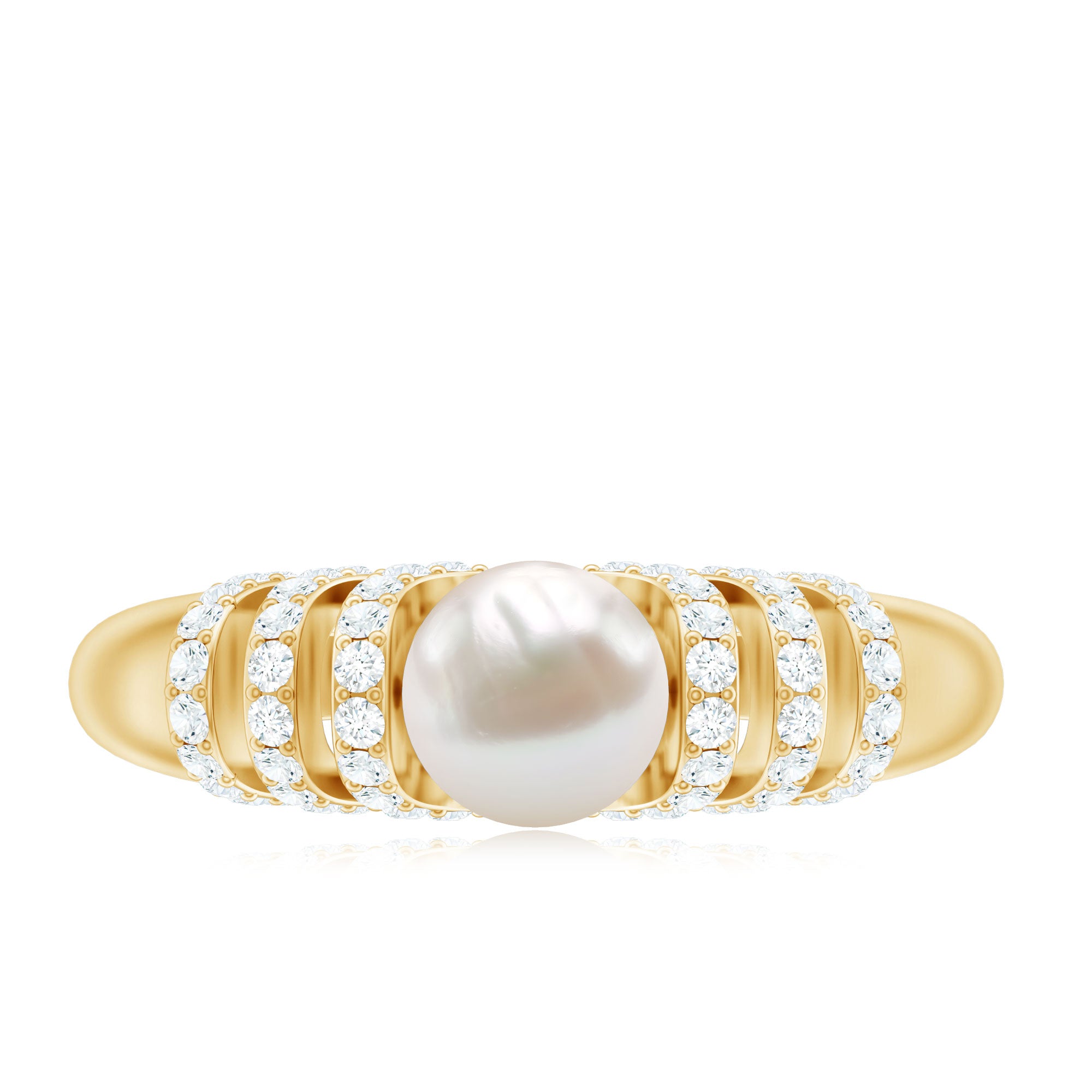 Looking for the perfect present for the love of your life, One thatll shine as bright as your love for her. This round shape Freshwater Pearl Engagement Ring is the perfect pick. Captivating Solitaire Engagement Ring is embellished with round shape Diamond held in Surface Prong Setting and crafted in gold metal to amplify the charm of this Ring.