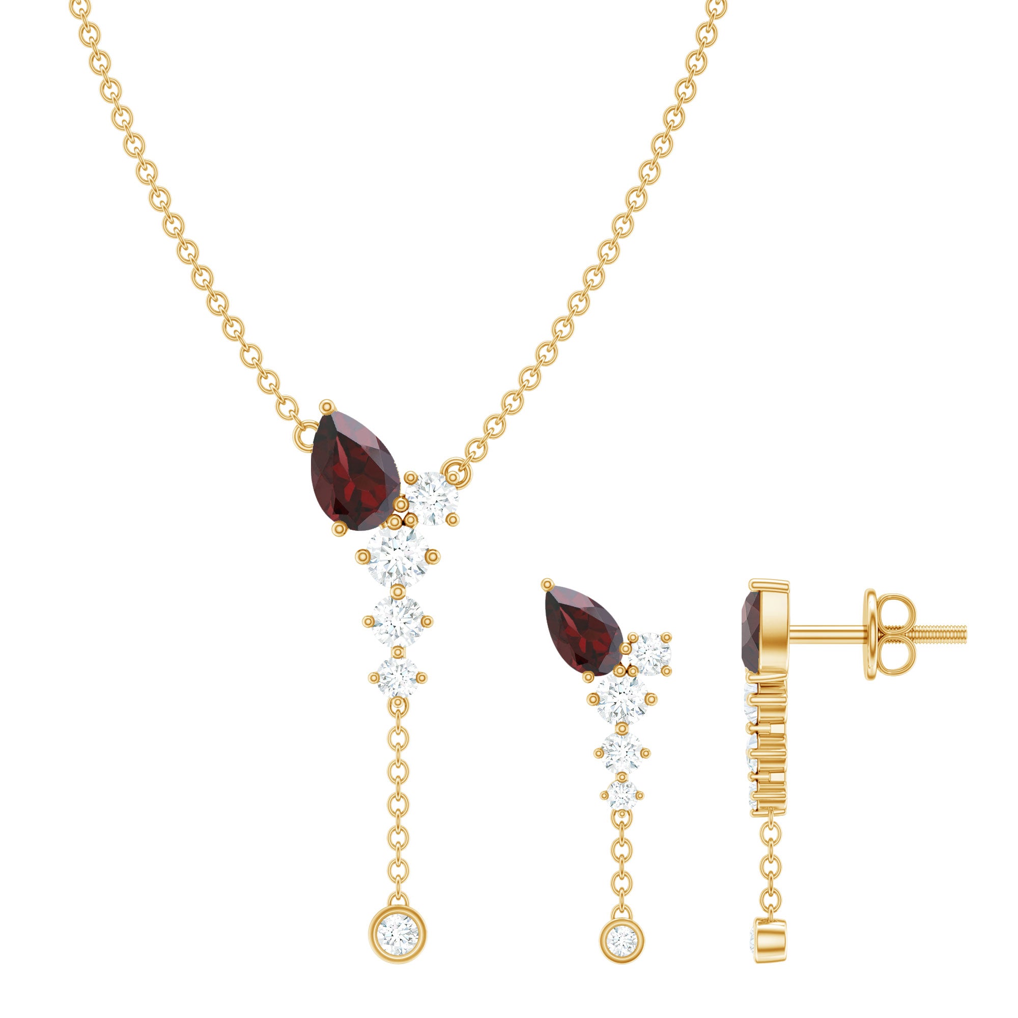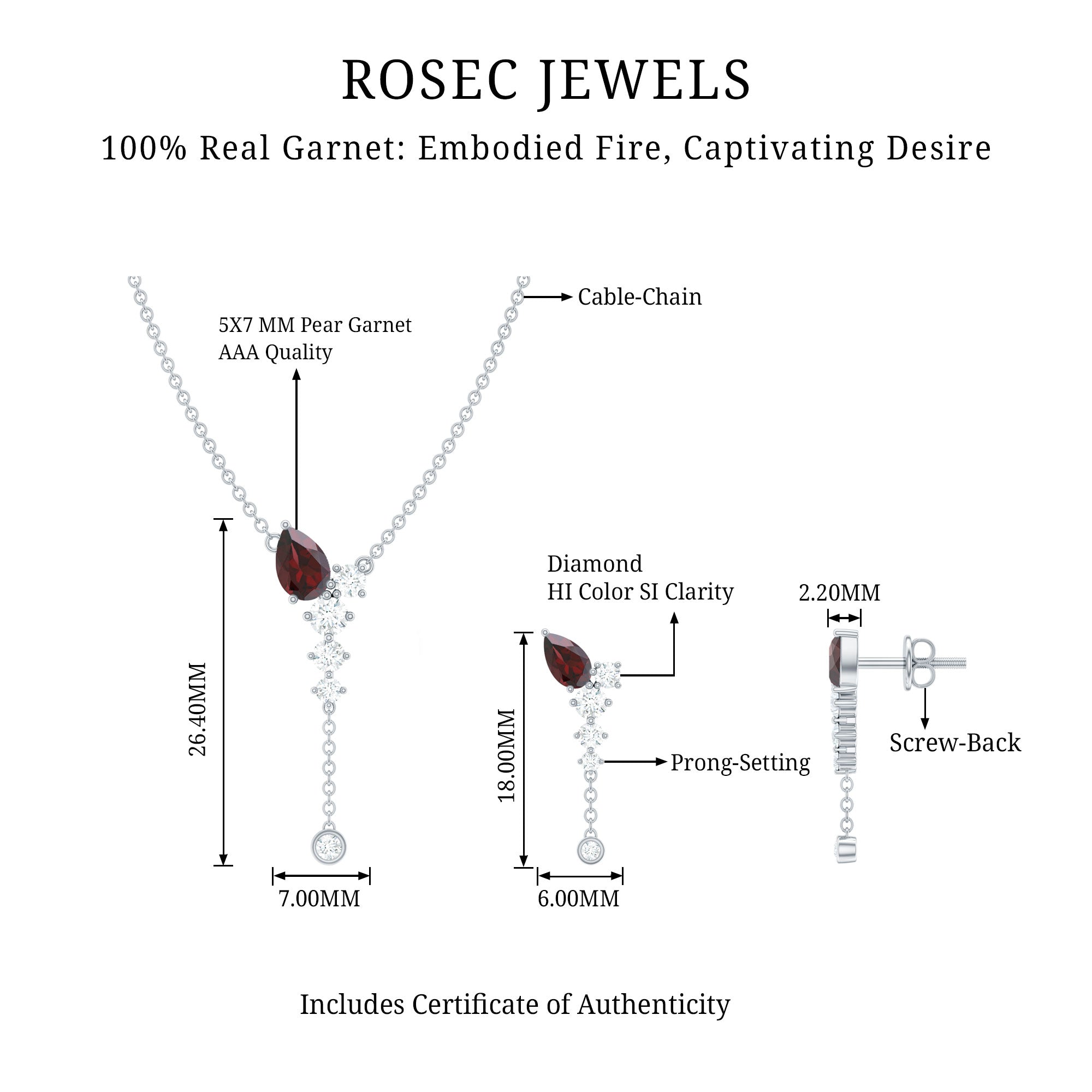 2.50 CT Minimal Garnet Lariat Y Necklace and Earrings Set with Diamond