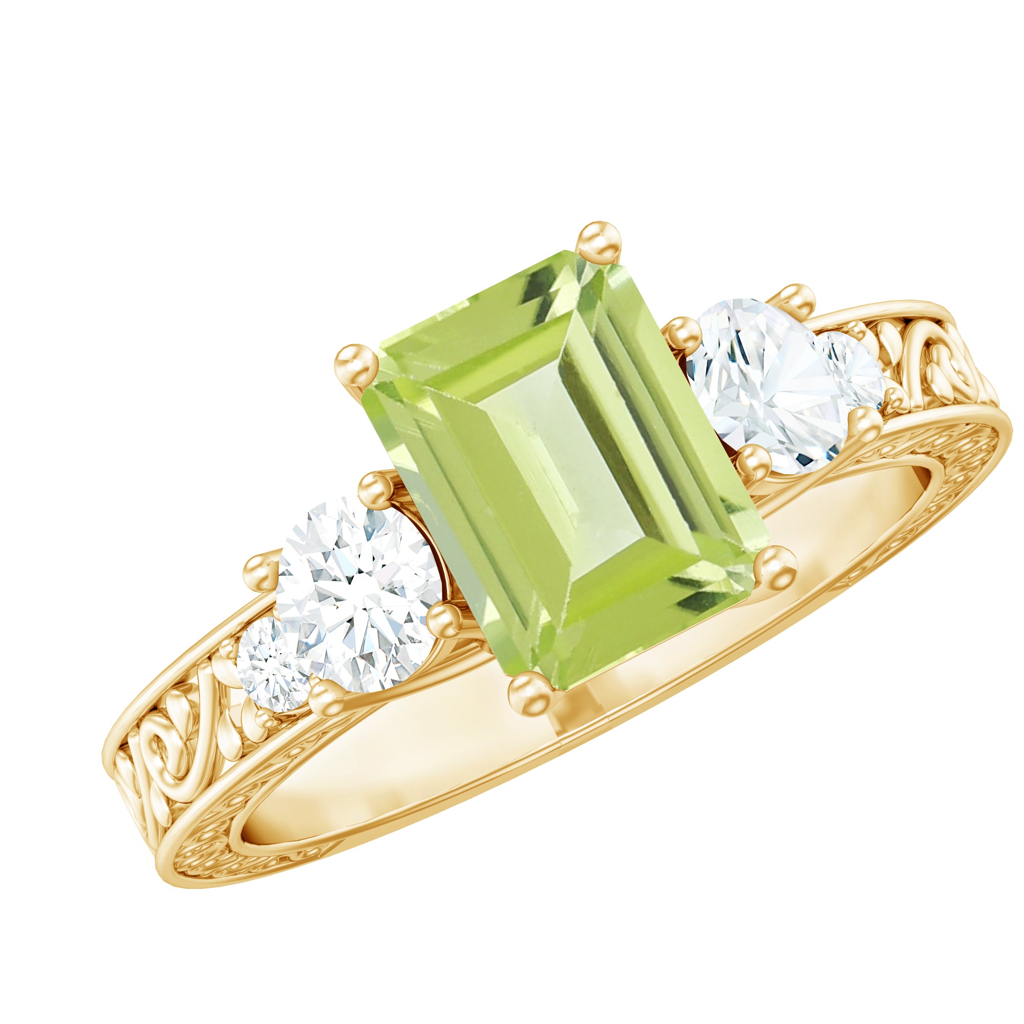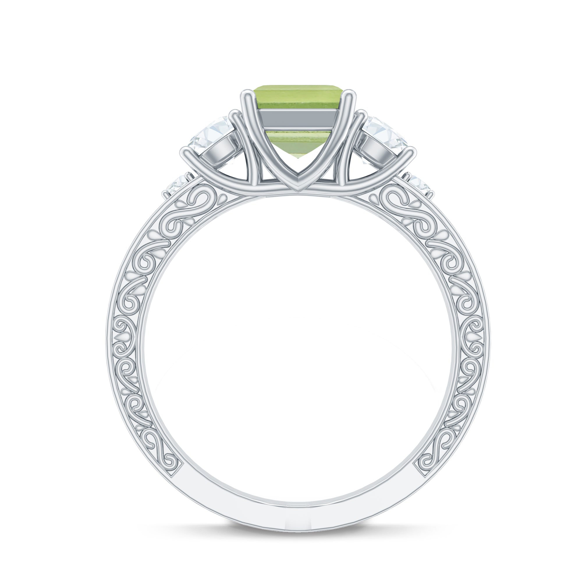 Octagon Cut Peridot Engagement Ring with Moissanite