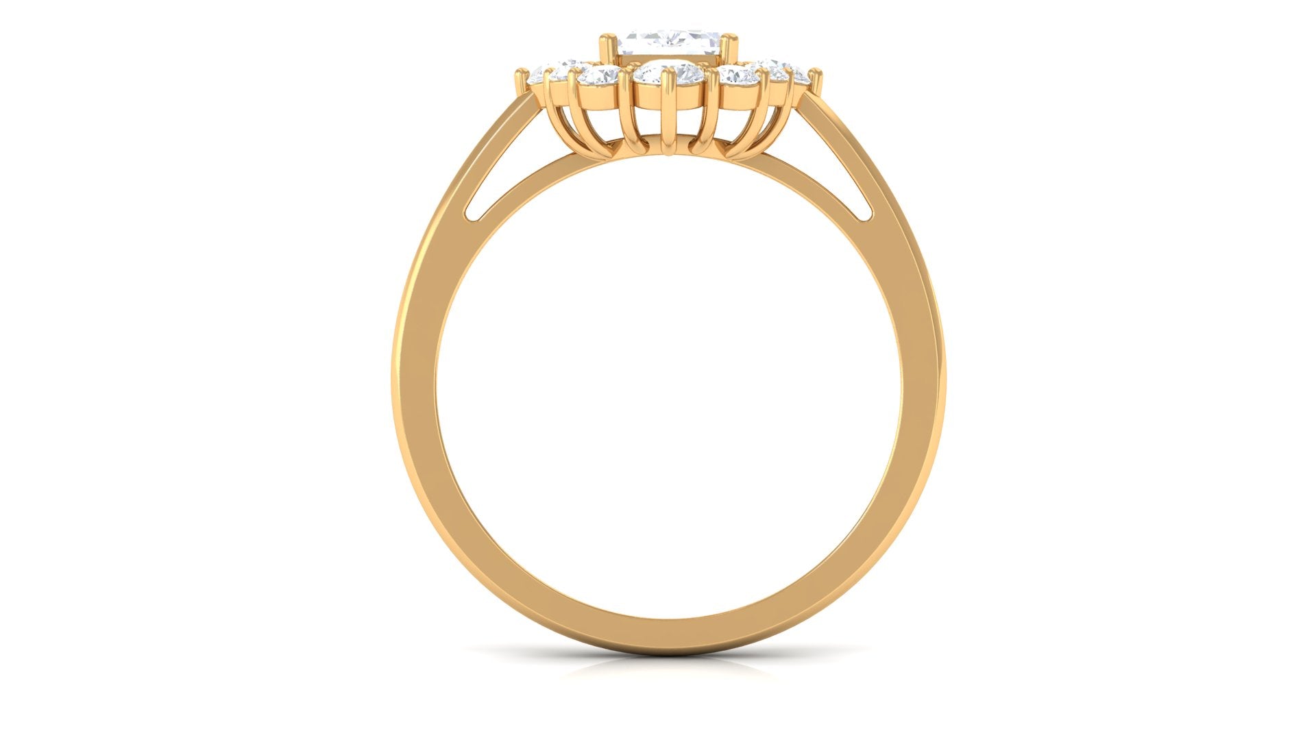 A perfect ring is a more precise ways to express emotions to your better half. This beautiful ring will make her feel on cloud nine, the Zircon Engagement Ring effortlessly draws your attention. This ring is embellished with Octagon Cut Zircon with halo, creating a glistening appeal. This Classic Cubic Zirconia Ring is excellent choice for Engagement jewelry.