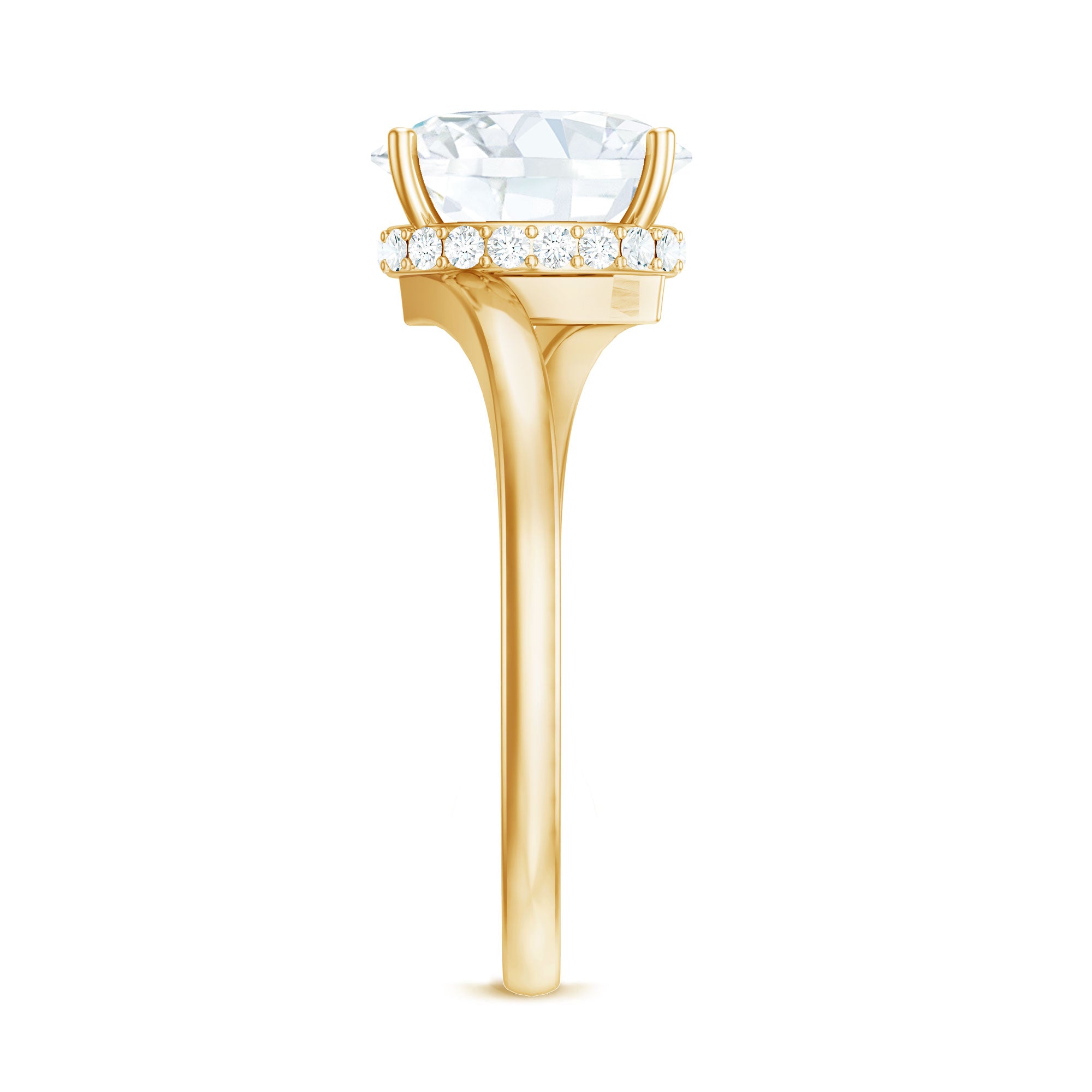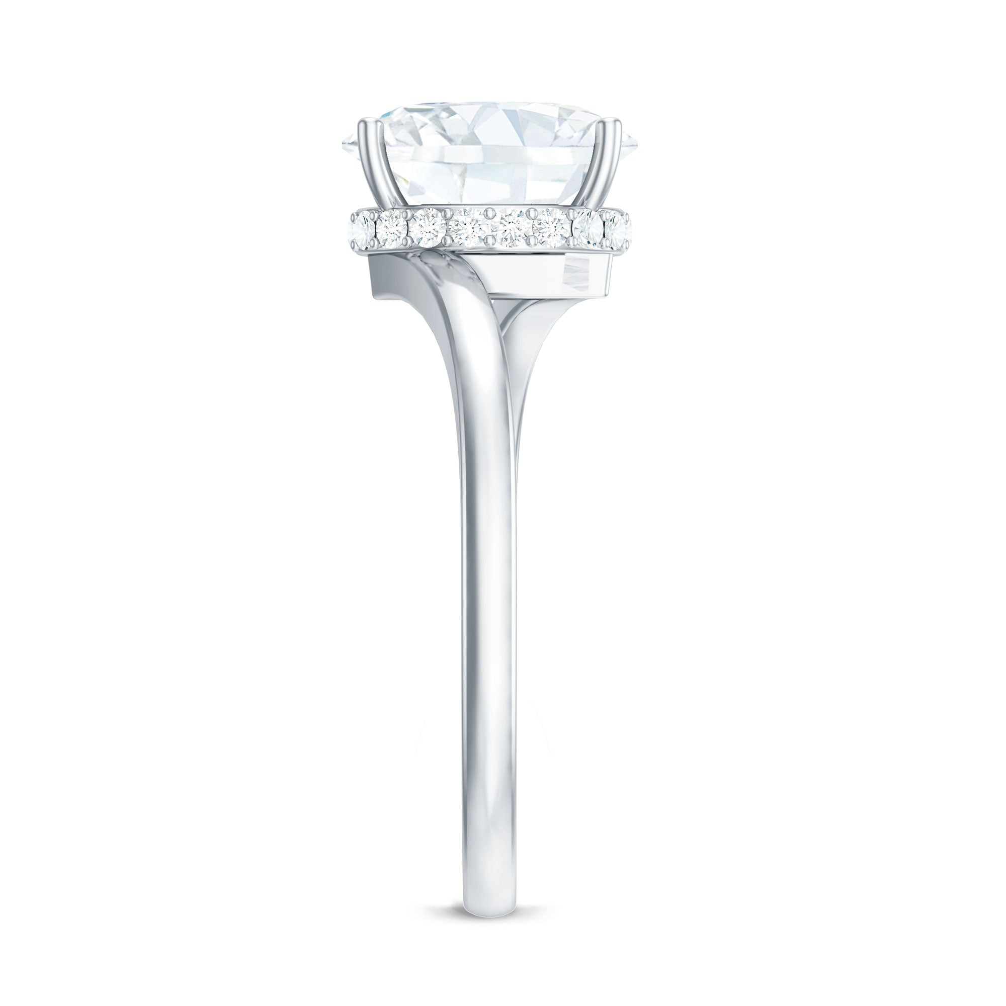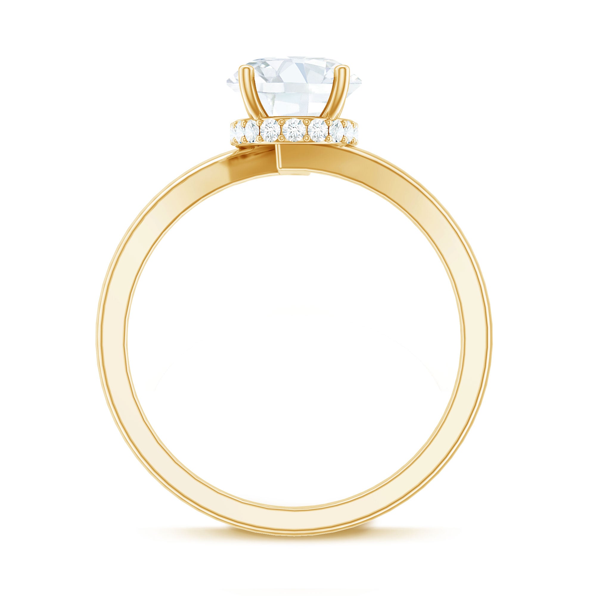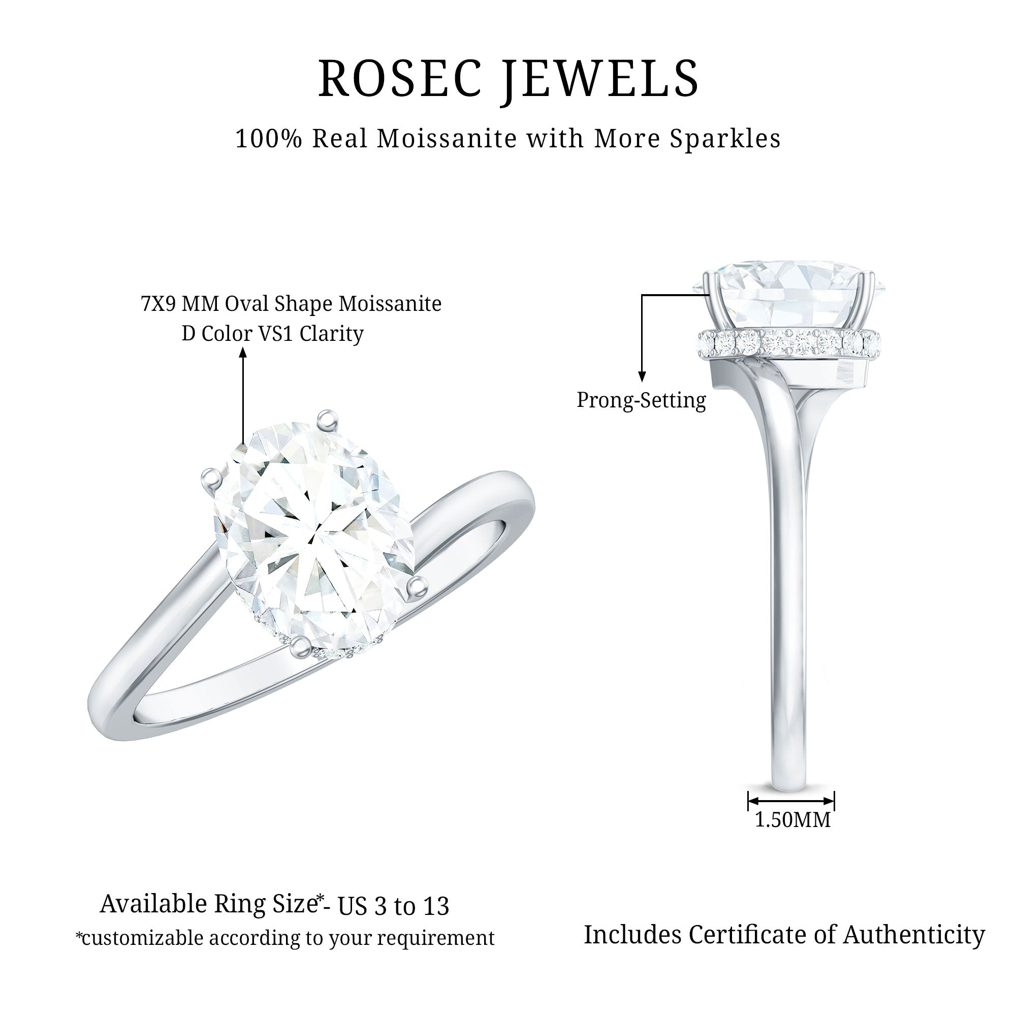 Step into elegance with a Moissanite Engagement Ring designed to shine with beauty and meaning. At its center is a stunning 7X10 MM oval cut moissanite, set in a secure prong setting. To give it extra shine and a unique twist, a hidden halo of small moissanites sits beneath the center stone. This small detail adds a soft, glowing sparkle that makes the Solitaire Engagement Ring even more special without taking away attention from the design. The band features a graceful bypass style, where the curves gently wrap around the center stone. This smooth twist gives the Bypass Engagement Ring a flowing, modern look while symbolizing unity, balance, and the shared path of two people coming together. The mix of the bold center stone and the soft shine of the hidden halo creates a ring that feels both classic and fresh. It is a beautiful choice for someone who loves traditional styles but also wants something with a modern touch. This Oval Engagement Ring comes carefully packaged in a jewelry box, ready to be shared or treasured. With its mix of elegance, comfort, and thoughtful design, it is a lovely symbol of love and commitment that is made to last.