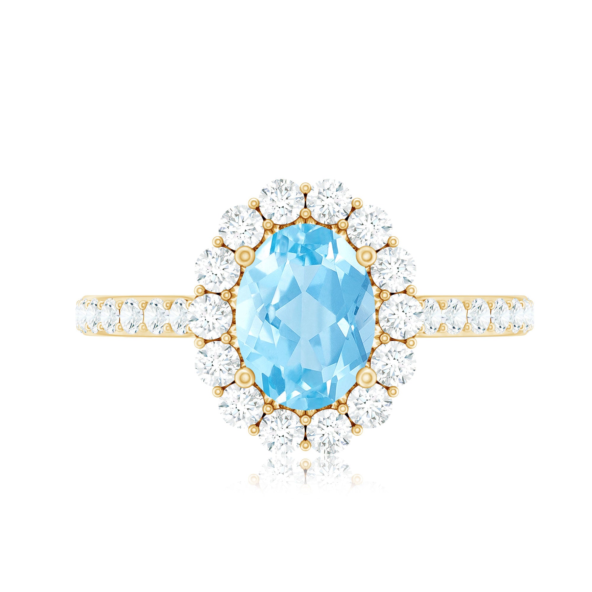 2.50 CT Oval Shape Solitaire Aquamarine and Moissanite Accent Engagement Ring