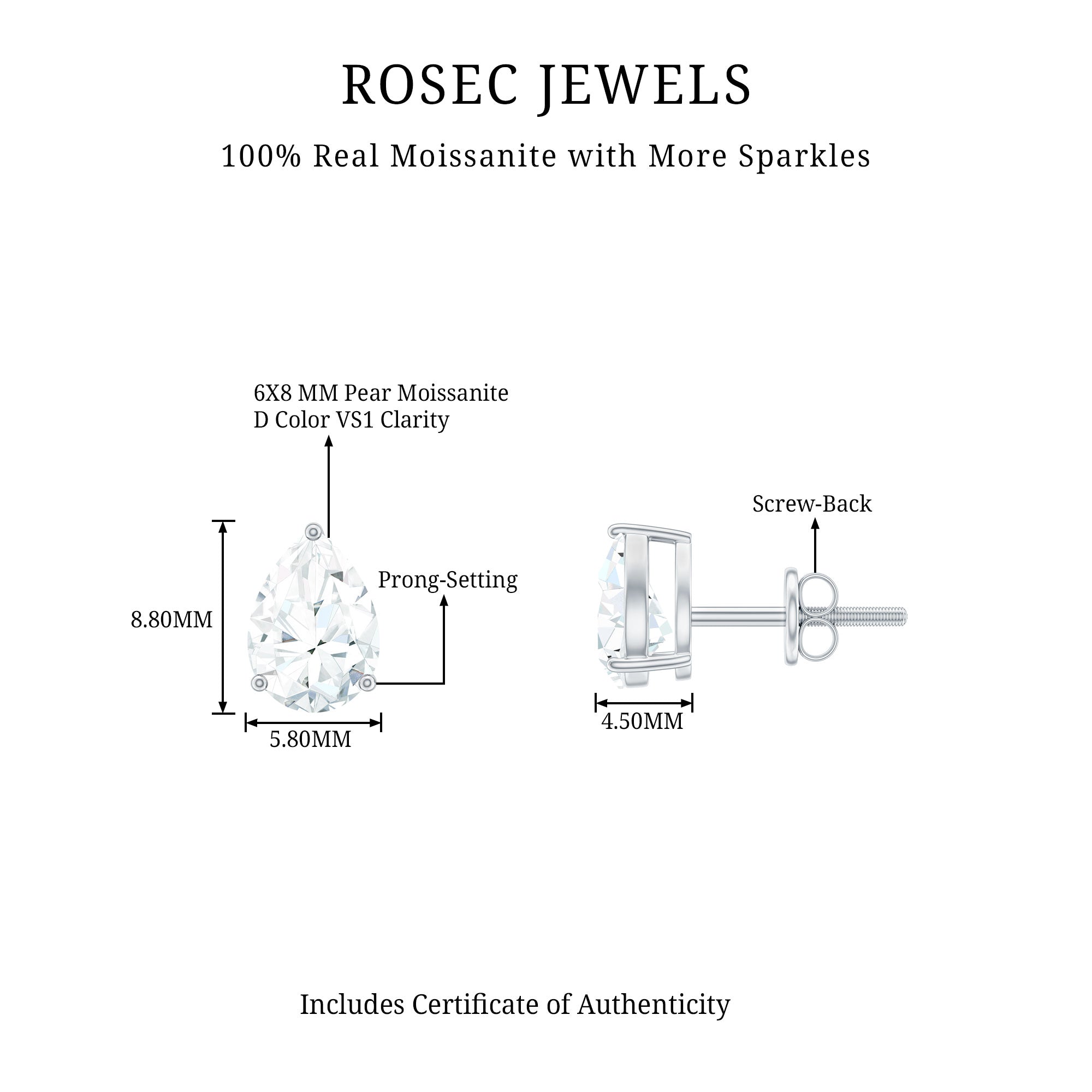 Pair these beautiful Pear Cut Moissanite Stud Earrings with your outfit to look even more graceful. These Solitaire Stud Earrings are embellished with three Prong Setting and crafted in Solid Gold Metal