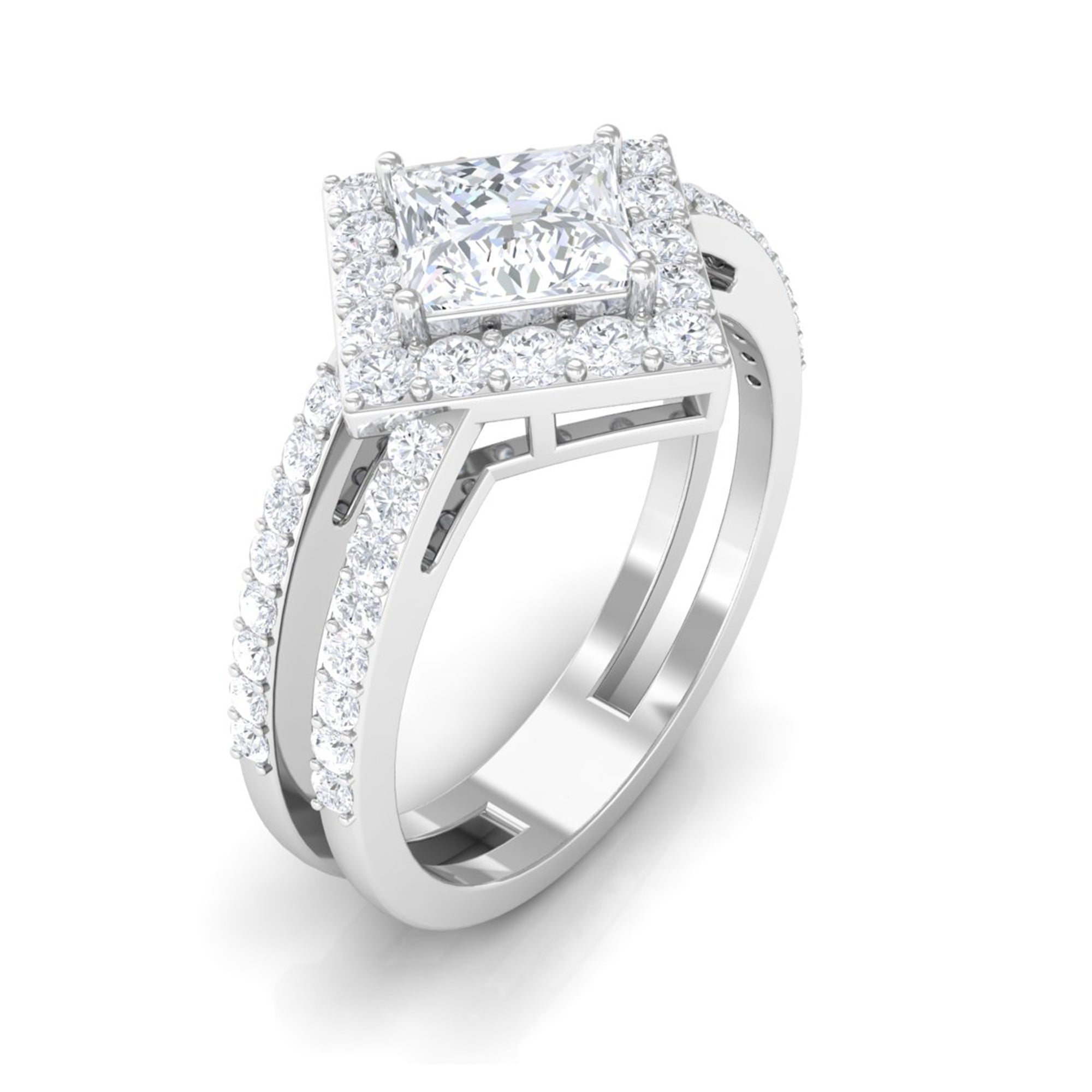 2.50 CT Princess Cut Zircon Double Engagement Band Ring