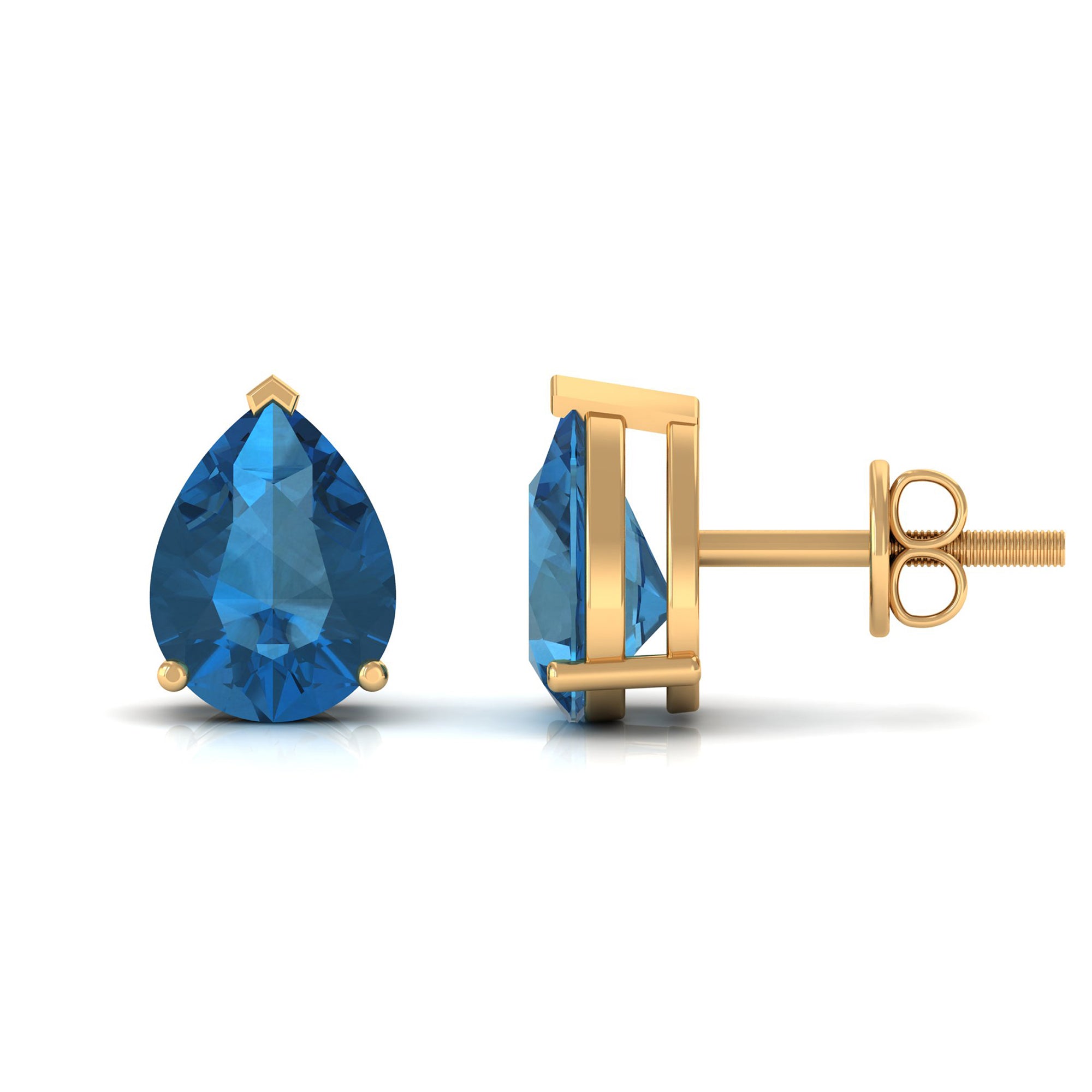 2.50 CT Solitaire Stud Earrings with Pear Shaped London Blue Topaz