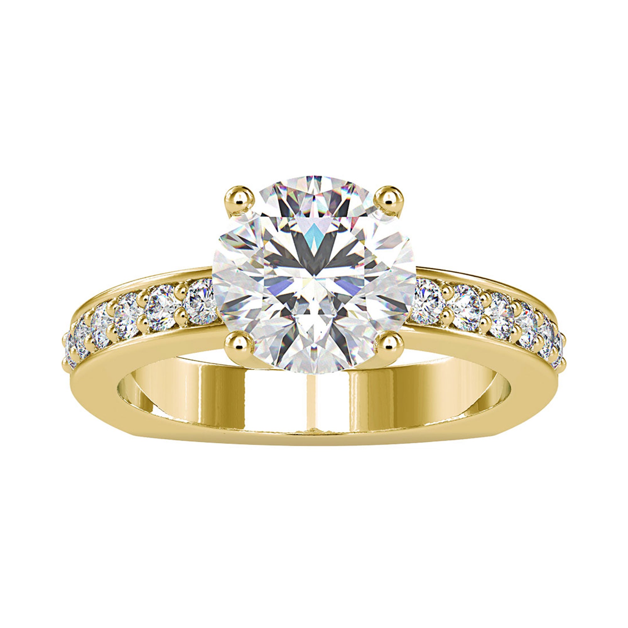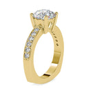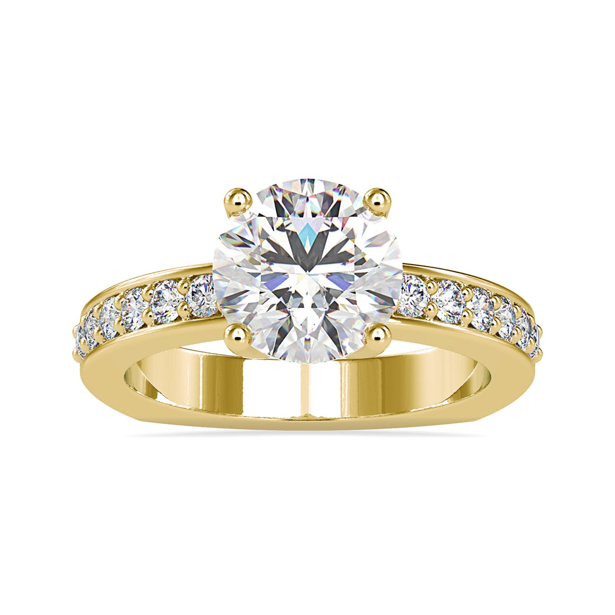 Eyes will be fixated on this immaculate Cubic Zirconia Engagement Ring, showcasing Prong Set Round Zircon with Side Stones in Euro Shank that complement your fashion choice. The Solitaire Design makes this ring light and feminine for a truly special look. Crafted in Gold for a luxurious look.