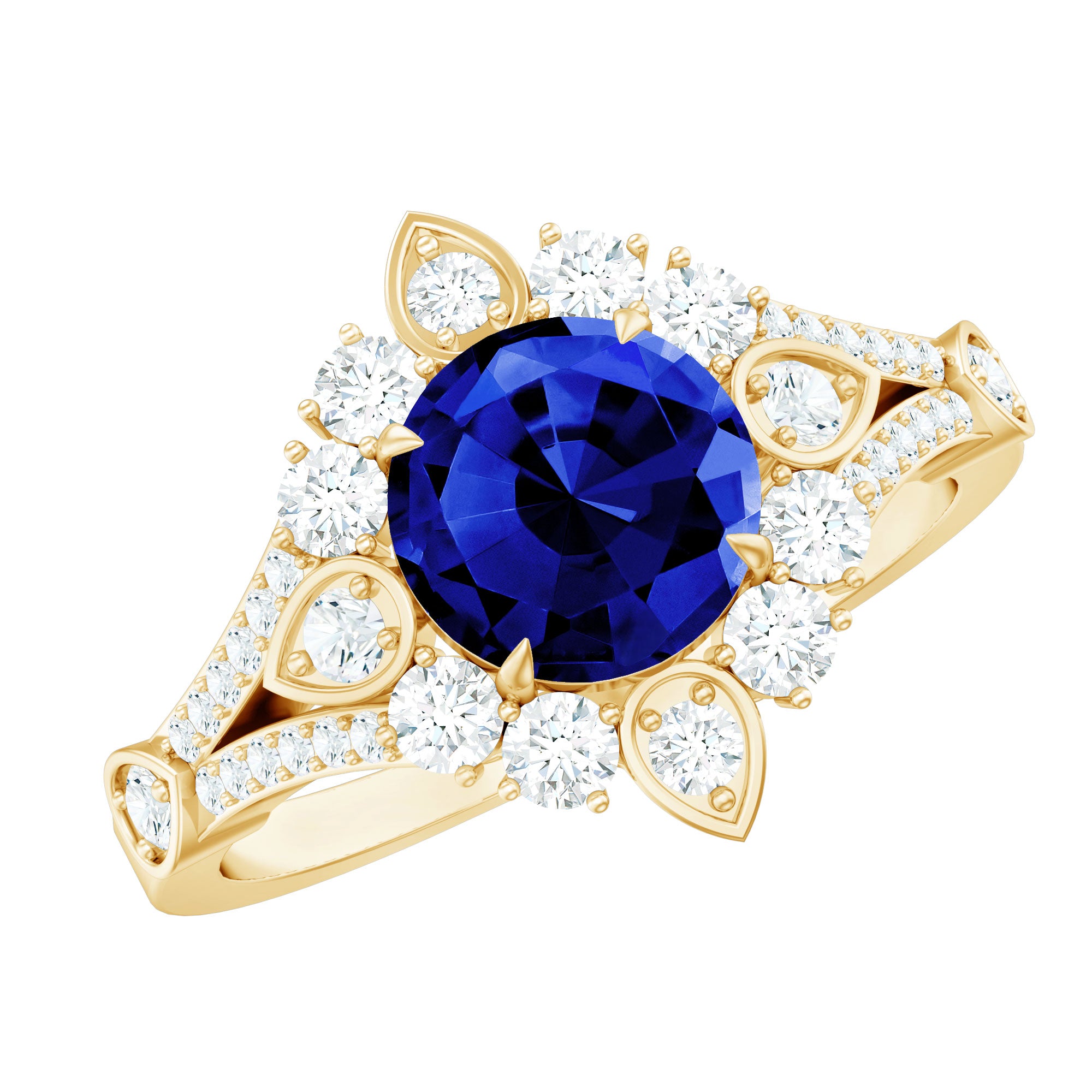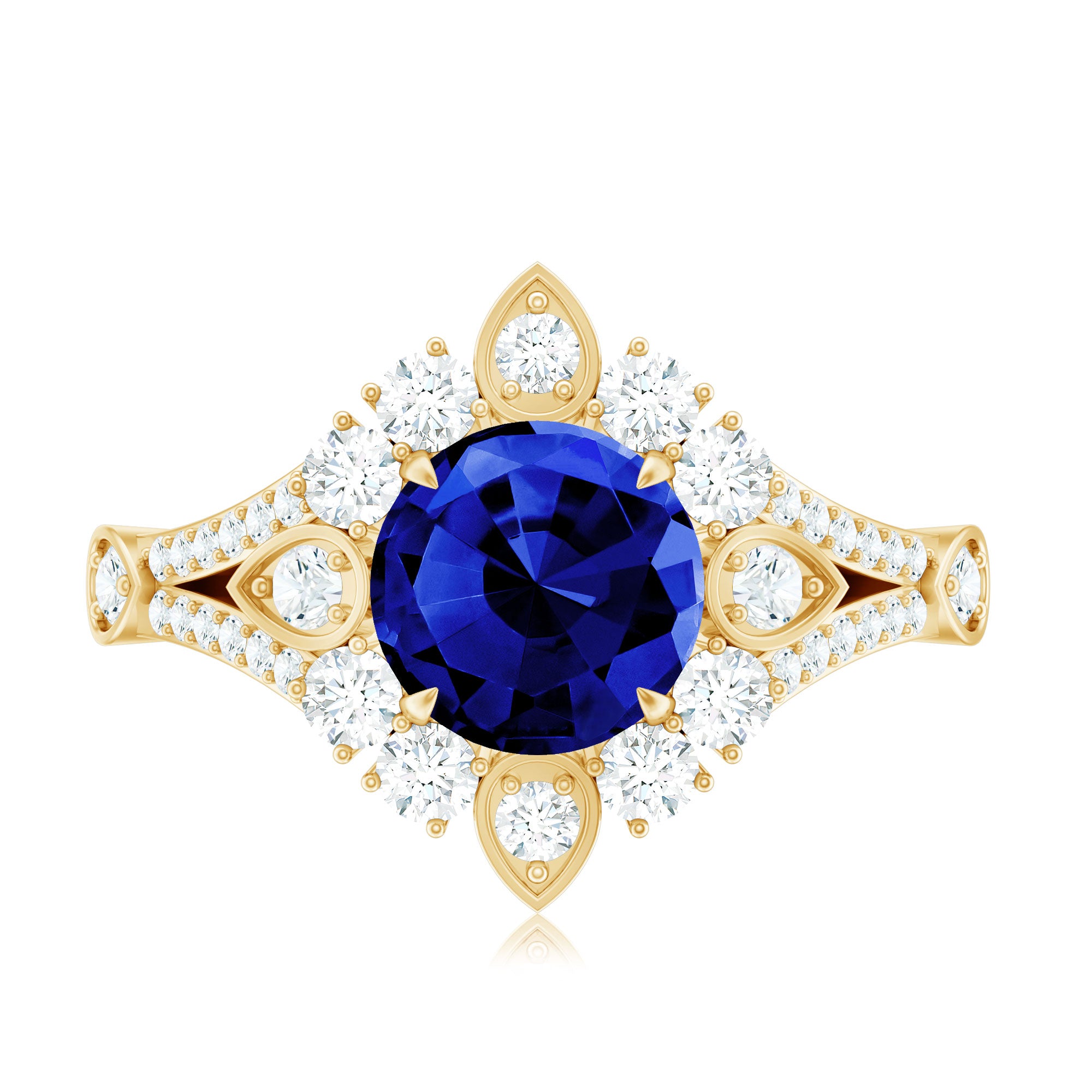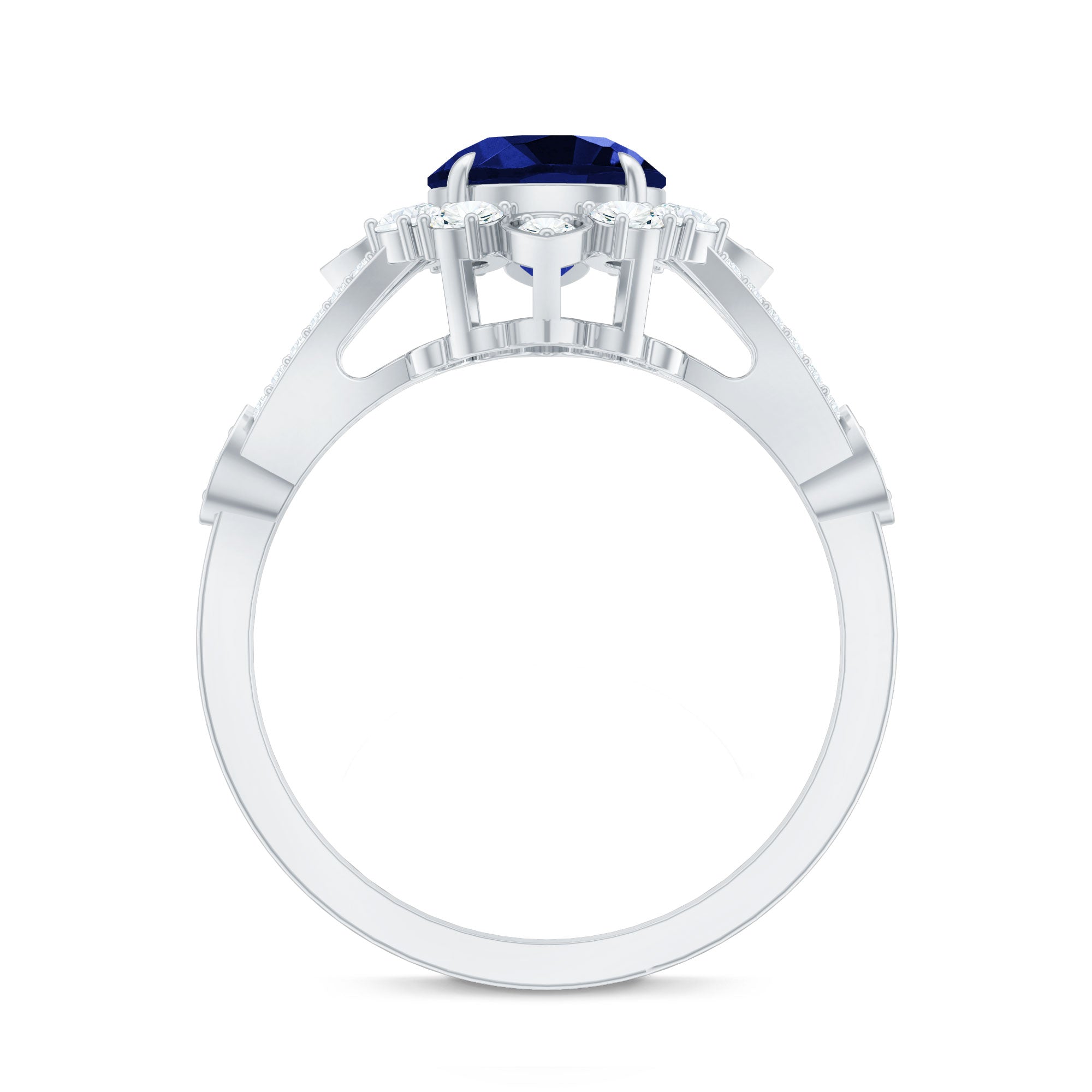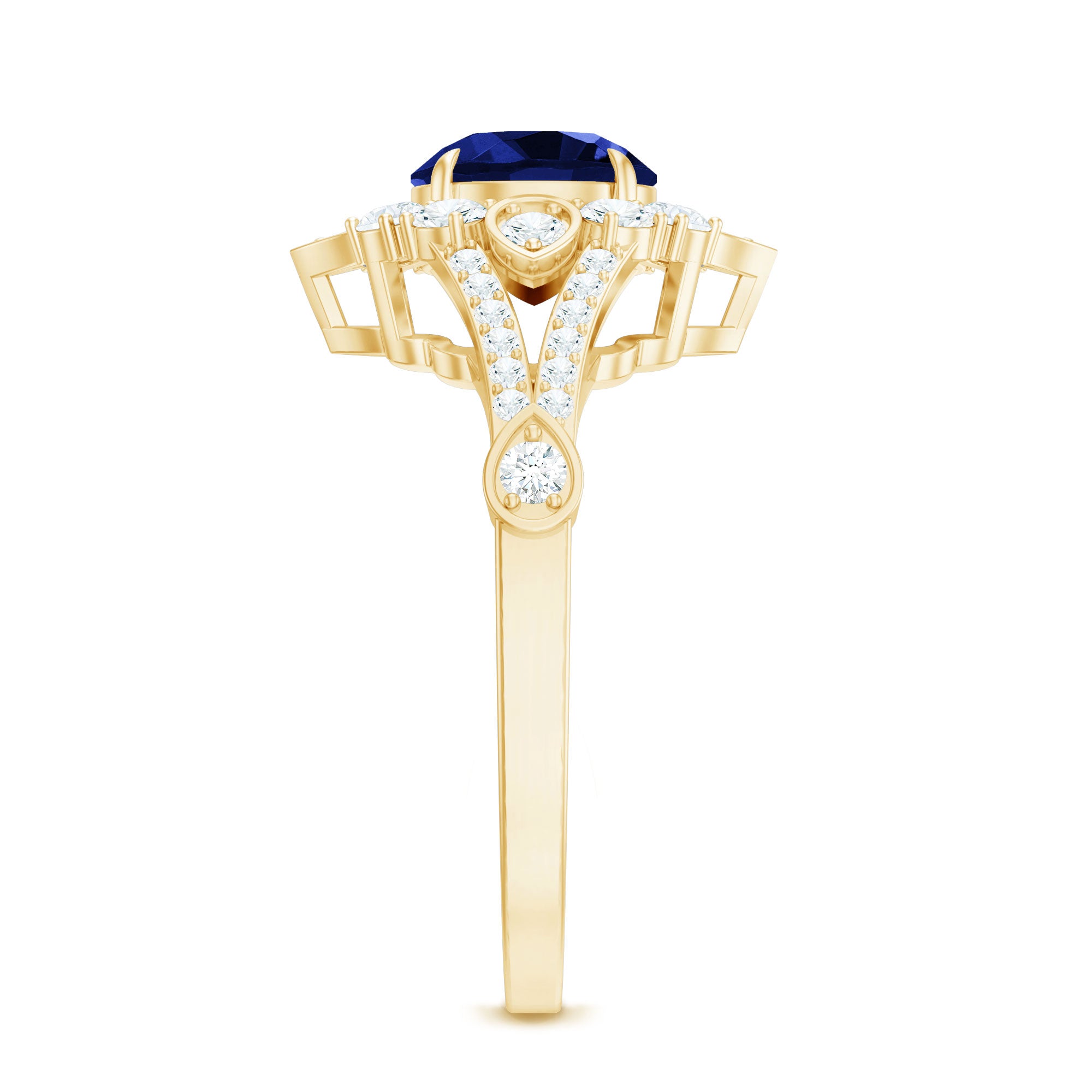 2.50 CT Vintage Inspired Created Blue Sapphire Ring with Zircon Accent