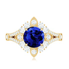 Present something graceful to her, this Created Blue Sapphire Ring is clearly an alluring piece of fine jewelry. This Created Blue Sapphire Round Ring is accentuated with Zircon. This Created Blue Sapphire Vintage Ring is crafted in Solid Gold.