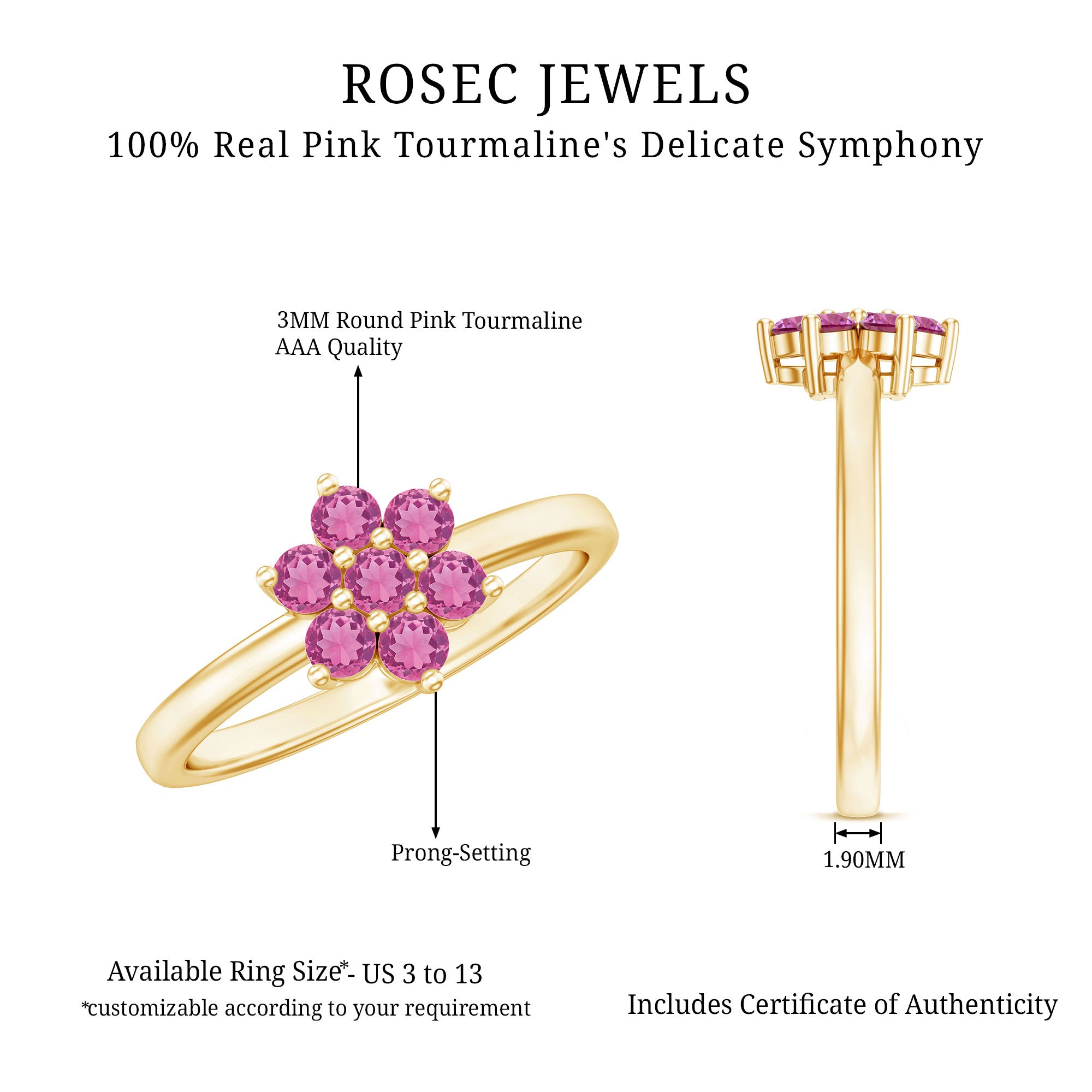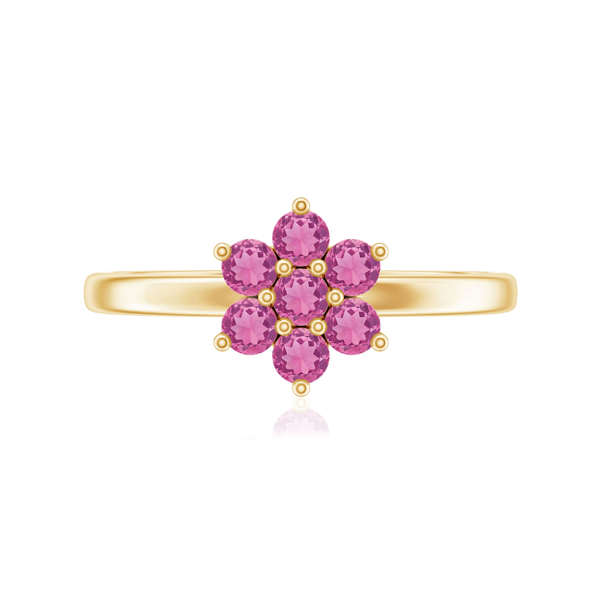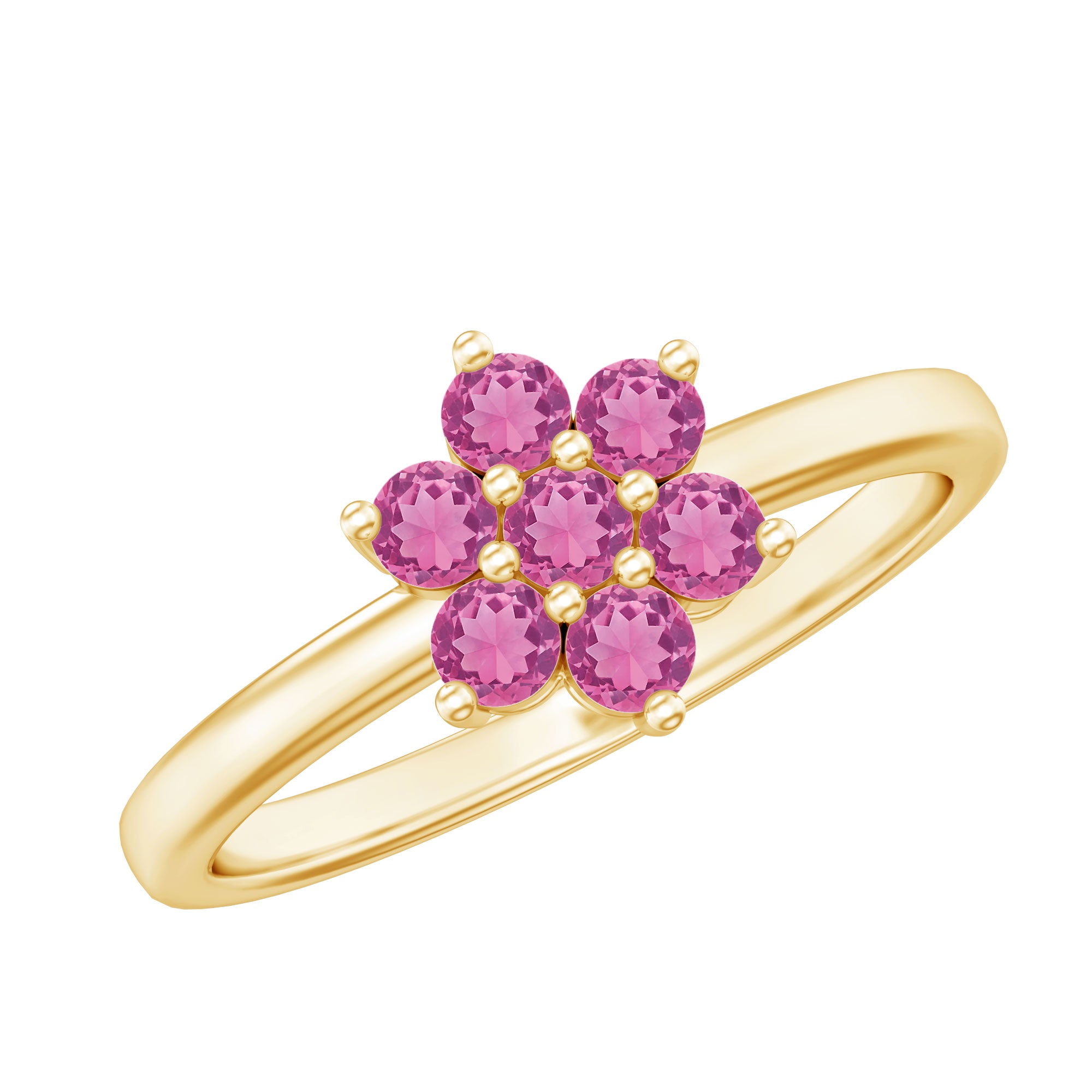 An attractive and shimmering Gold Cluster Ring is adorned with 2.50 MM Round Shaped Pink Tourmaline is beautifully studded in the prong setting. Gold Flower Ring is crafted in 14K Solid Gold. An ideal Jewelry Wedding Collection for Bride.
