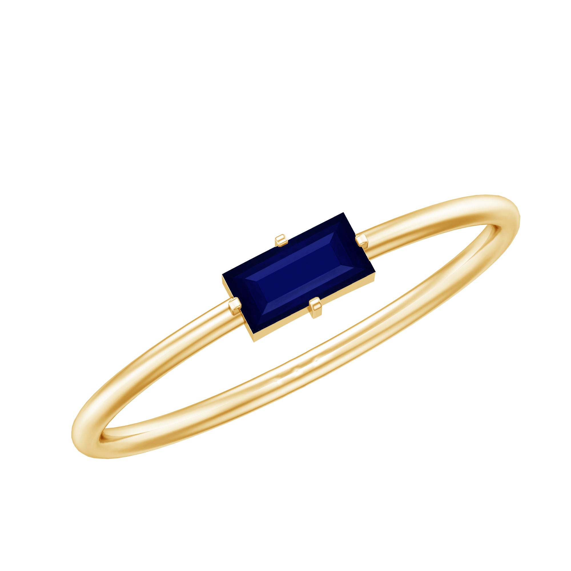 2.5X5 MM Baguette Cut Blue Sapphire Solitaire Ring in 4 Prong Diagonal Setting