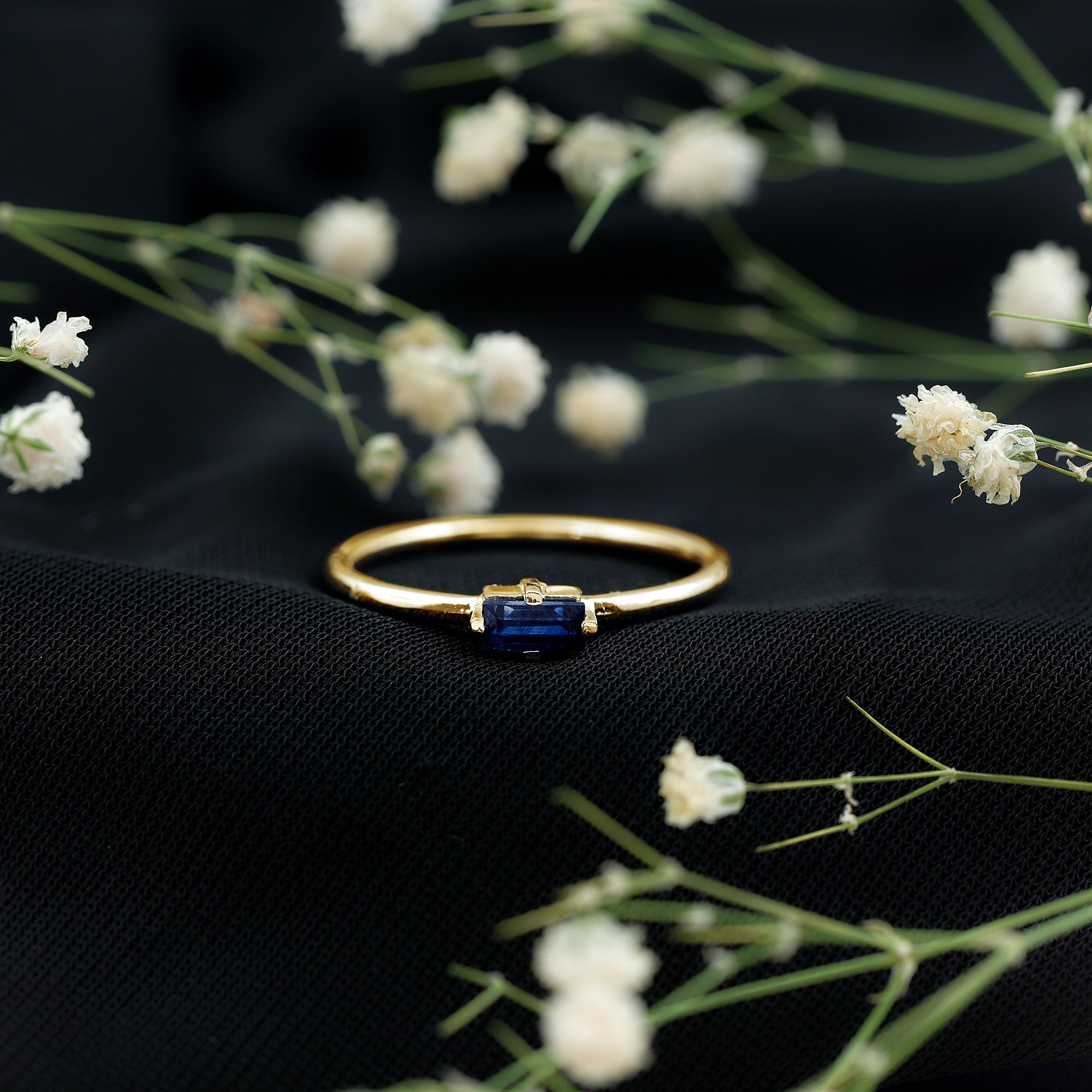 Celebrate your love and commitment with this beautiful Promise Ring. Adorned with a Baguette Cut Blue Sapphire set in a Four Prong Diagonal Setting, this ring is crafted in solid gold for a timeless and elegant look. The simple yet striking design of this Blue Sapphire Solitaire Ring makes it a perfect symbol of your promise to each other.