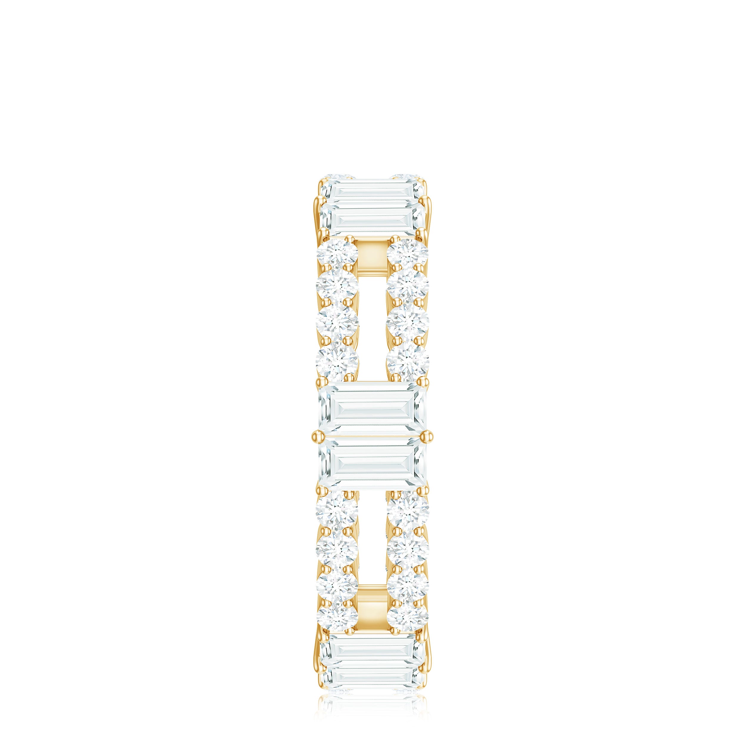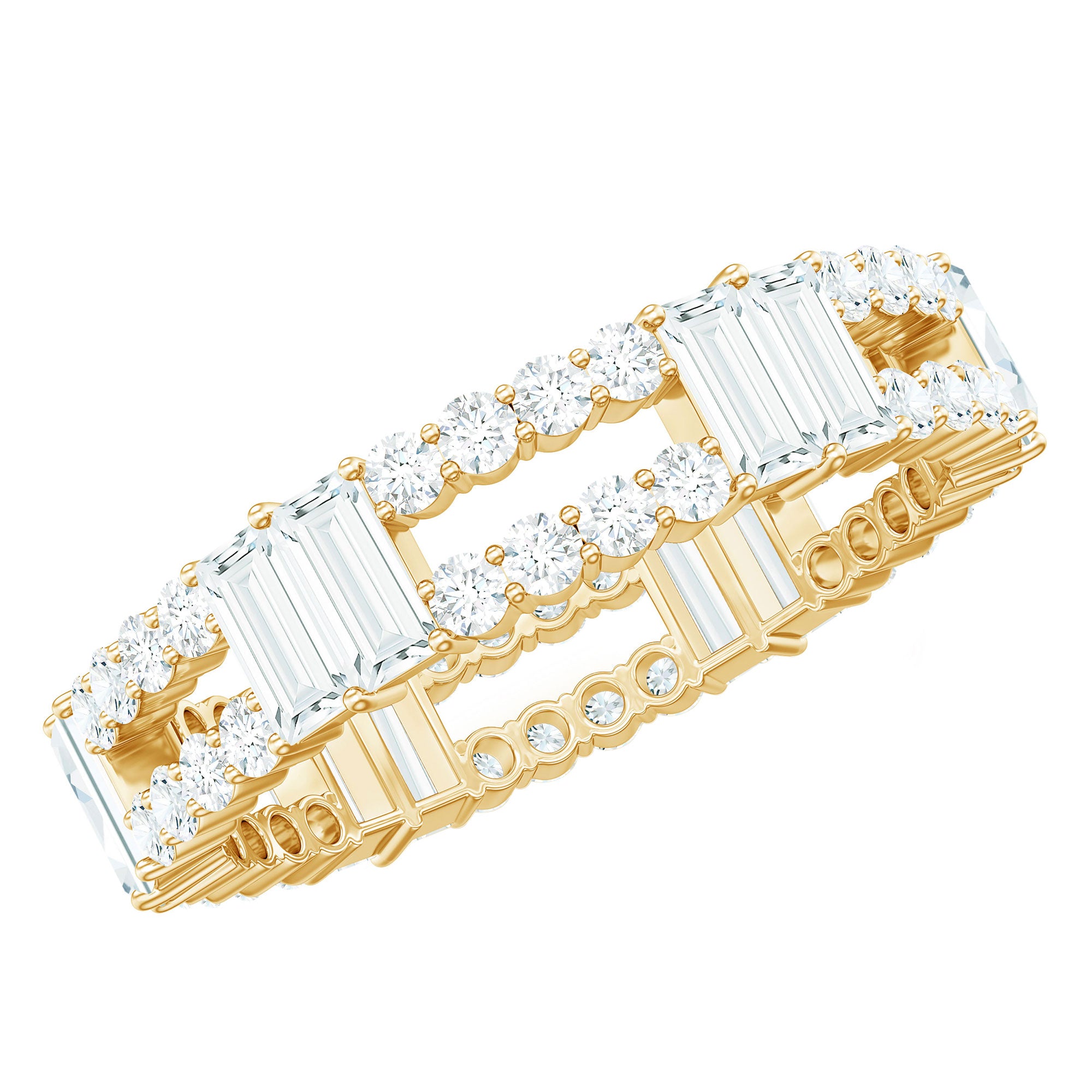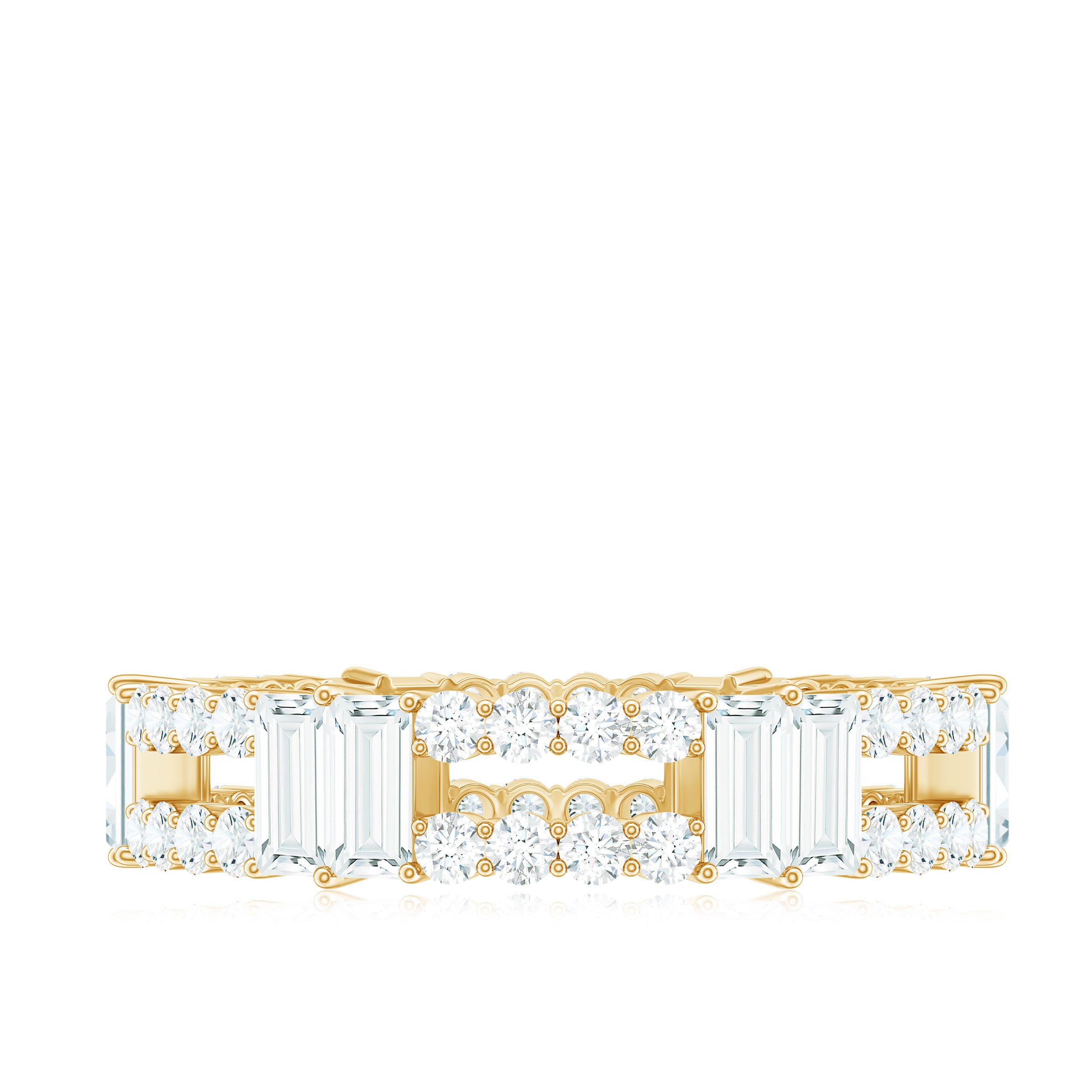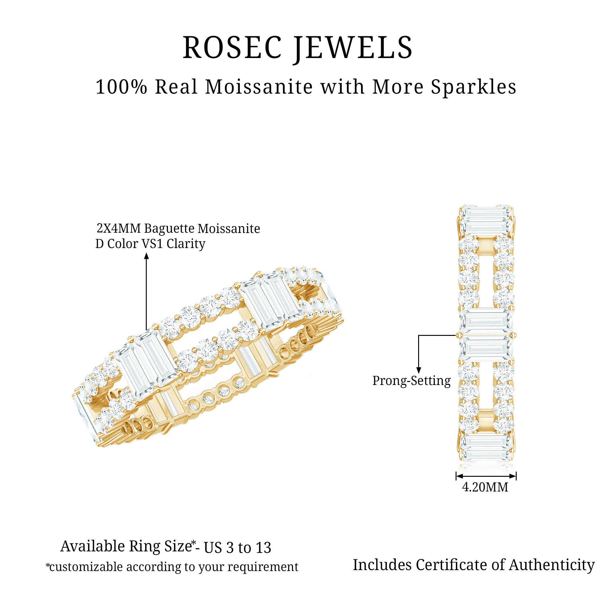 Moissanite is the best alternative to diamond for all the great reasons. The brilliant and fierce moissanite stackable wedding bands can withstand the test of time. Couple are considering moissanite wedding bands leaving behind the diamond ones as moissanite is pretty affordable. Being an Eco-friendly and cruelty-free stone gives moissanite a plus point for sustainability loving brides.