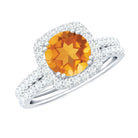 2.75 CT Citrine Classic Halo Wedding Ring Set with Moissanite Band