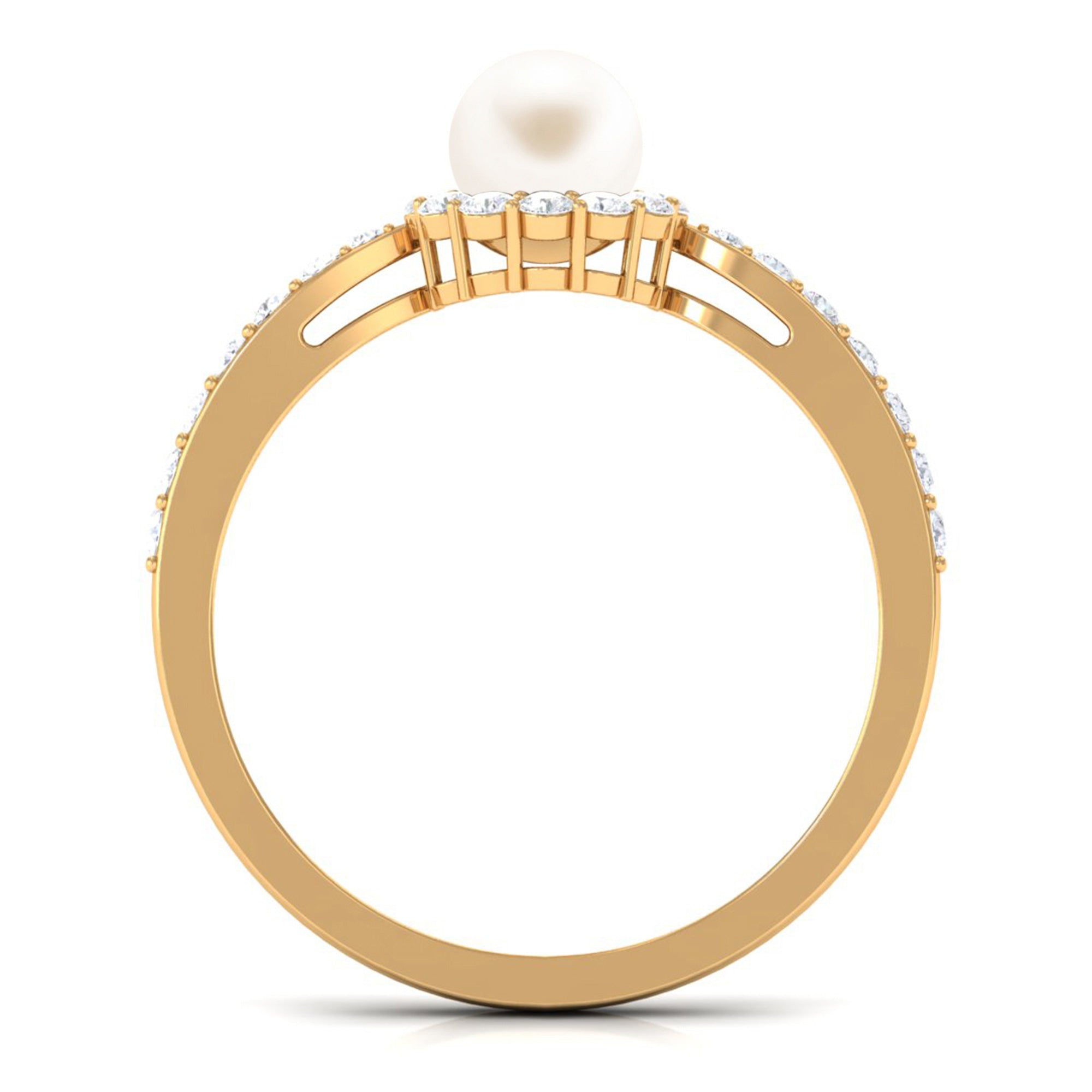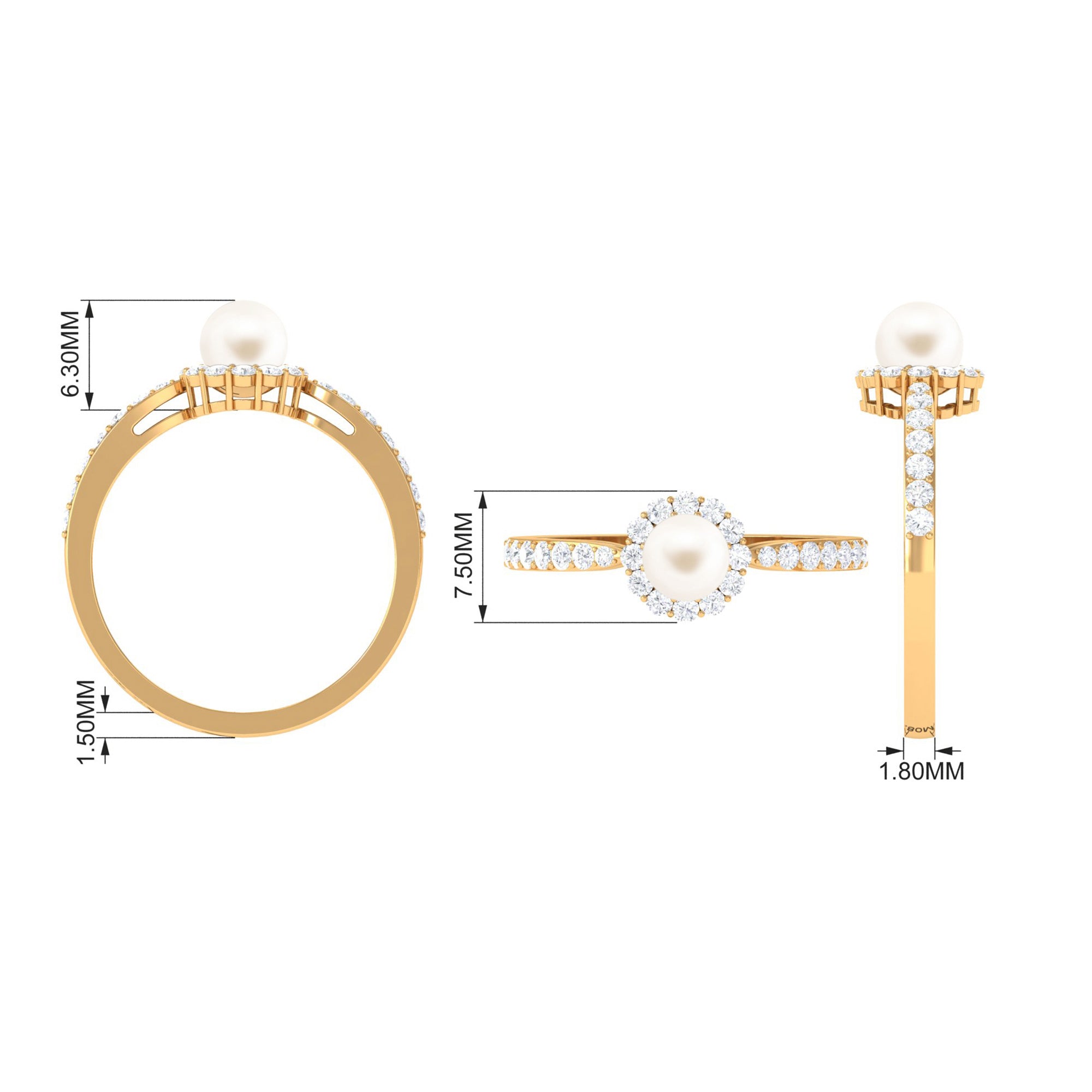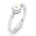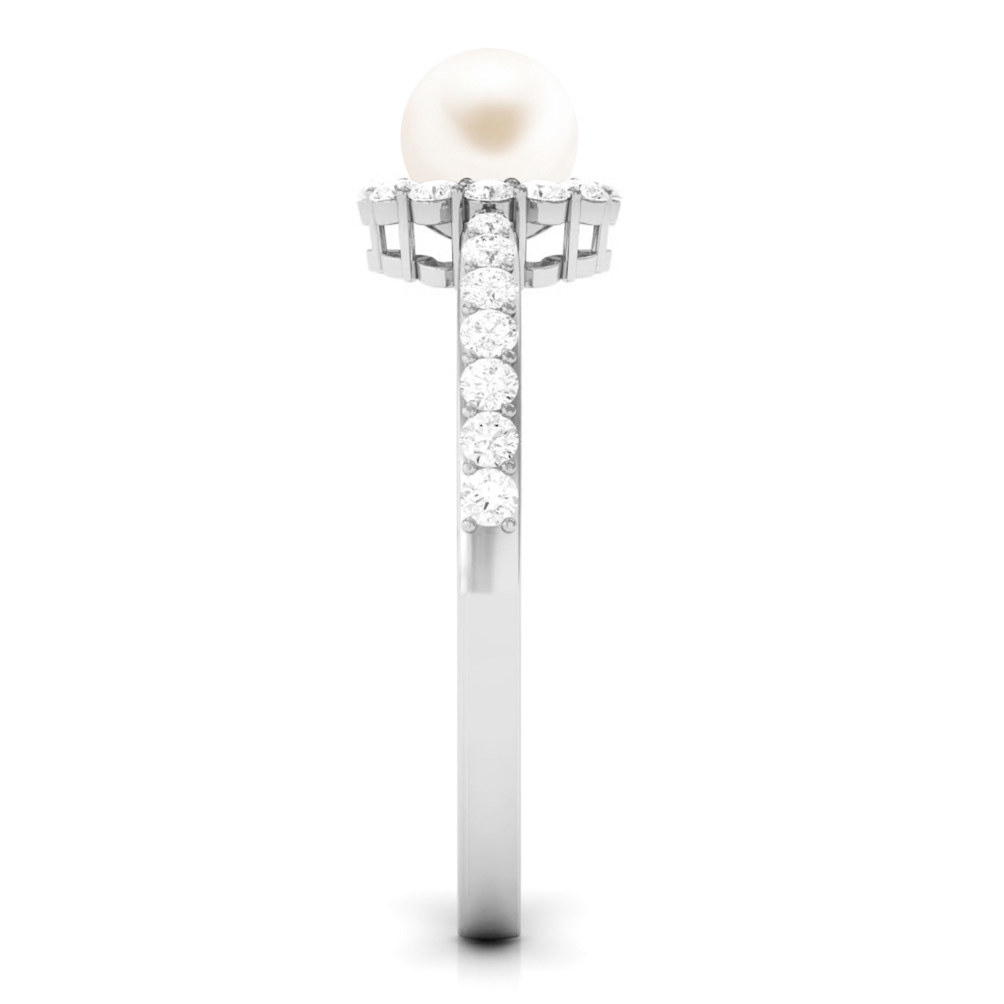2.75 CT Classic Freshwater Pearl Promise Ring with Diamond Halo