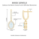 2.75 CT Claw Set Moonstone and Diamond Drop Hoop Earrings