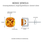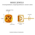 Immerse yourself in the warm embrace of these Solitaire Stud Earrings. Each earring features an 8 MM Cushion Cut Citrine gemstone elegantly set in Prong Setting. With timeless elegance and a touch of natures splendor, these Stud Earrings with Screw Back Closure are a radiant addition to your jewelry collection.