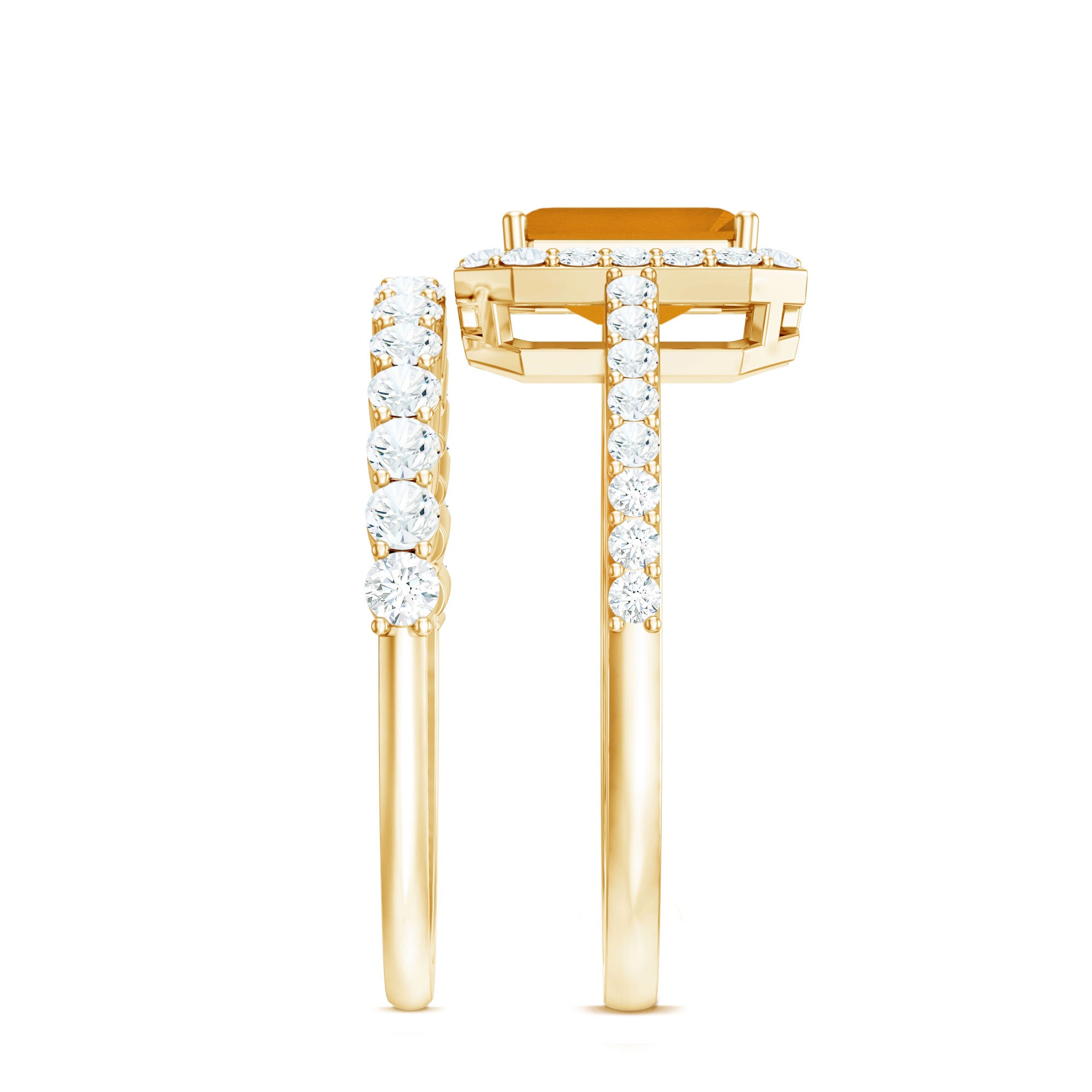 Shine like a diva with this alluring Stackable Ring Set embellished with Octagon Cut Citrine in Prong Setting with Round Cut Moissanite and a Moissanite Enhancer Ring. Crafted with Gold. this Citrine Ring Set will give you a luxurious look. Stack this Yellow Citrine Ring Set with a few other styles or wear it as a single stunner.
