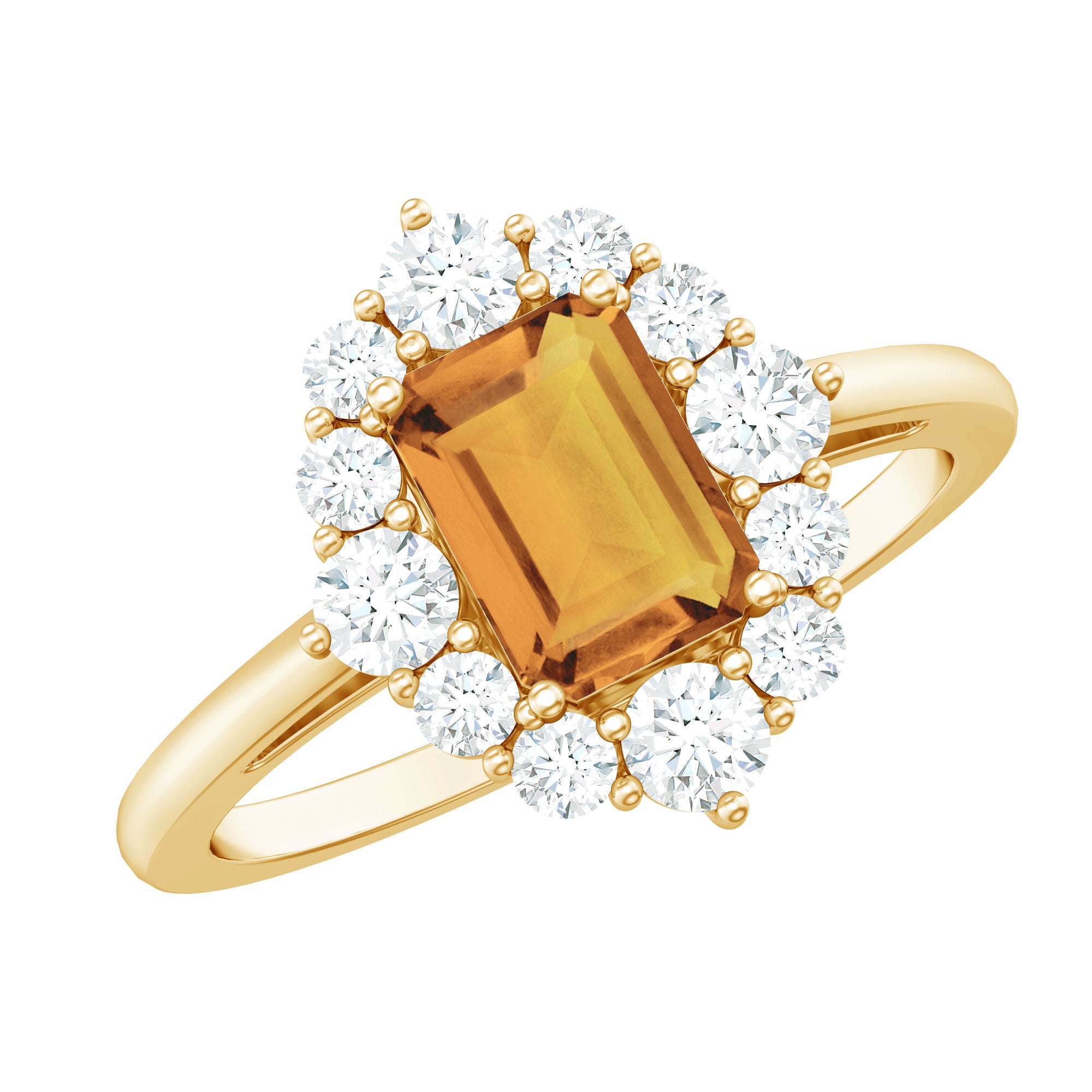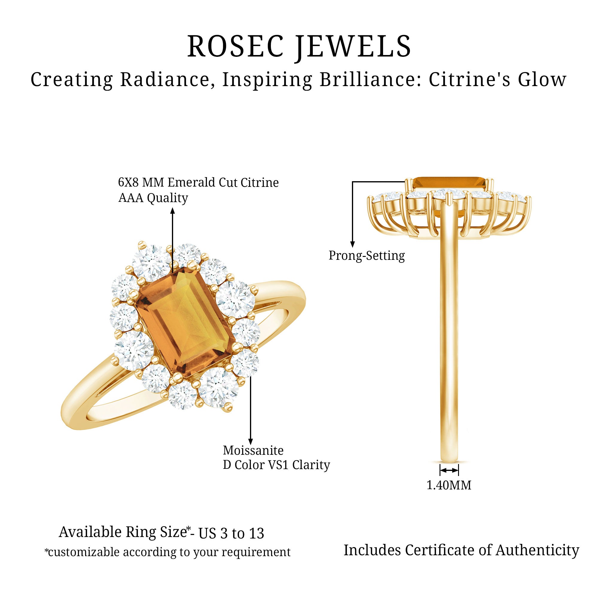 2.75 CT Octagon Cut Citrine Halo Engagement Ring with Moissanite
