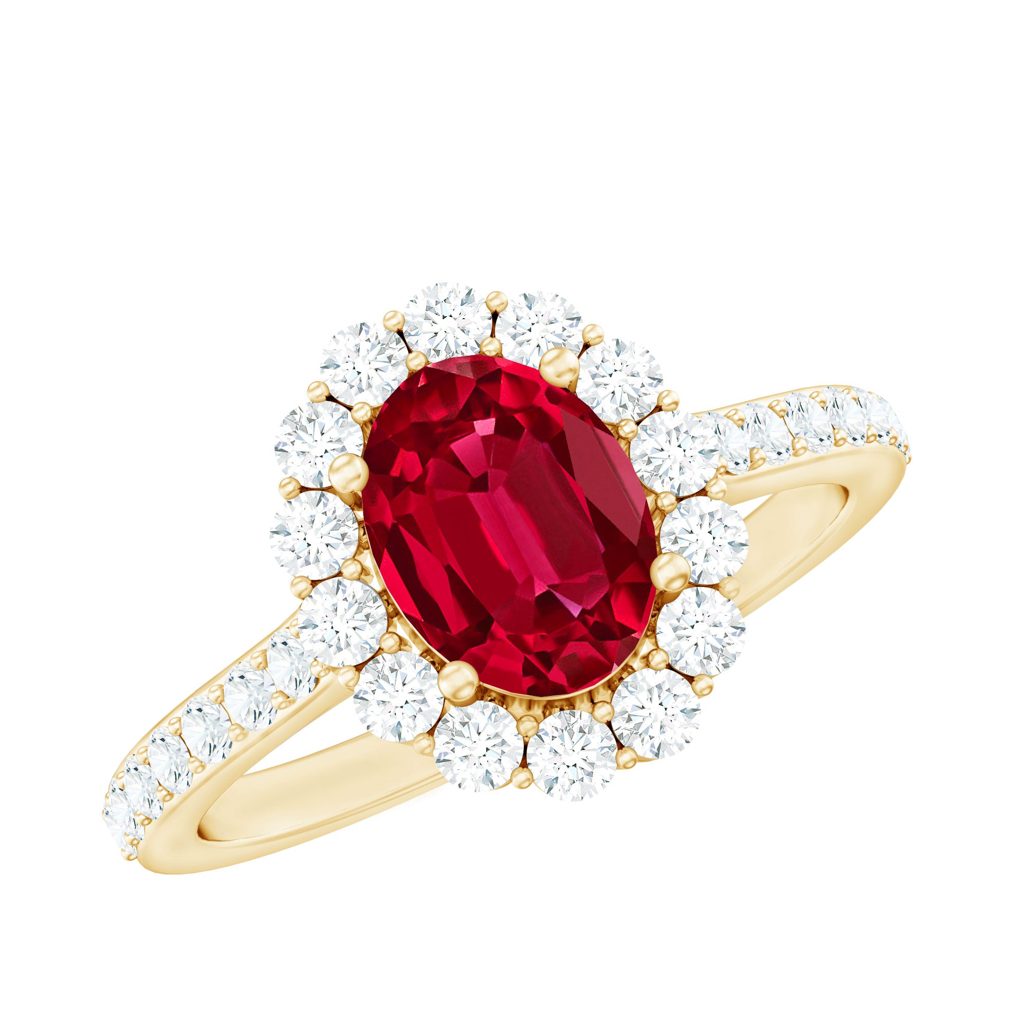 2.75 CT Oval Cut Created Ruby Ring with Moissanite Halo