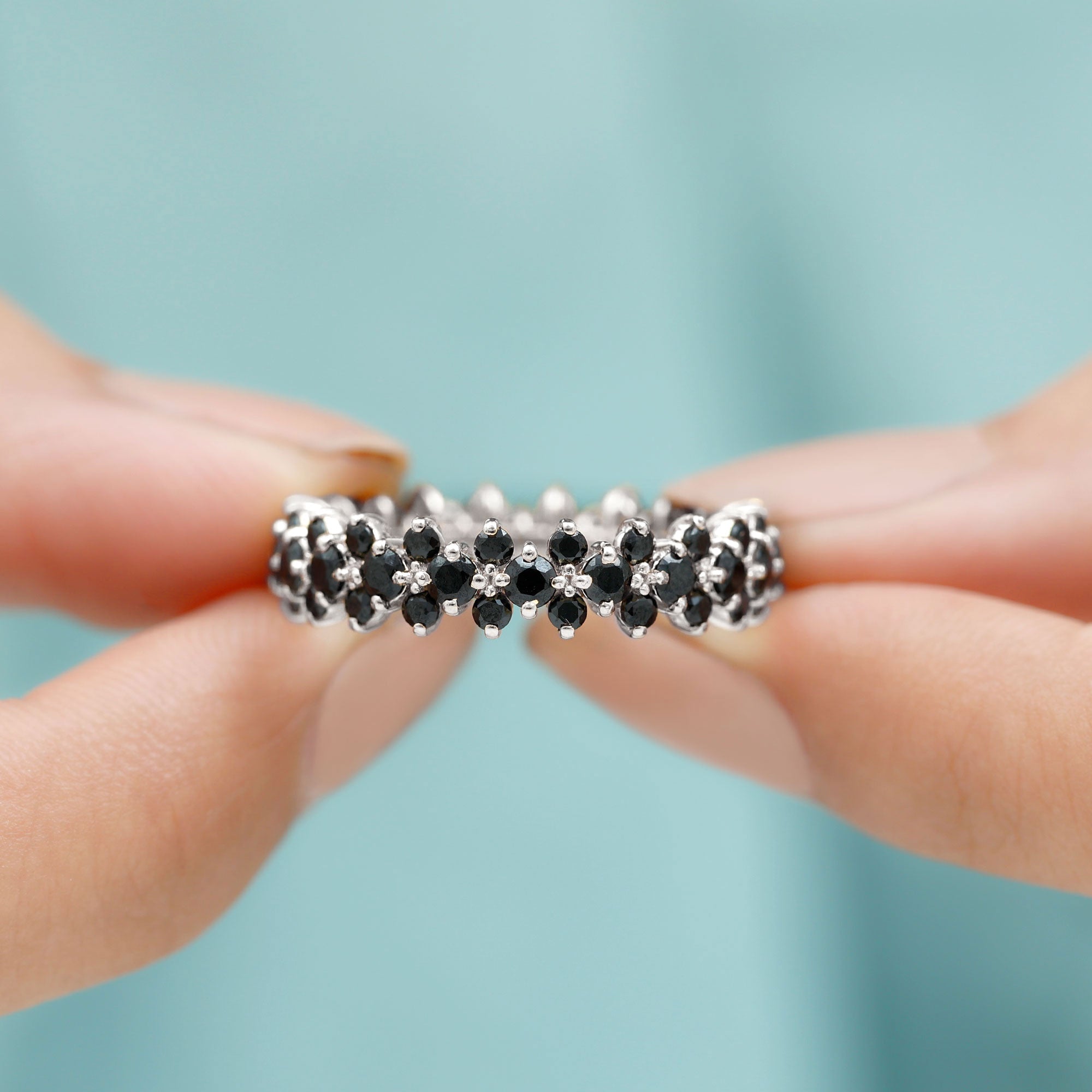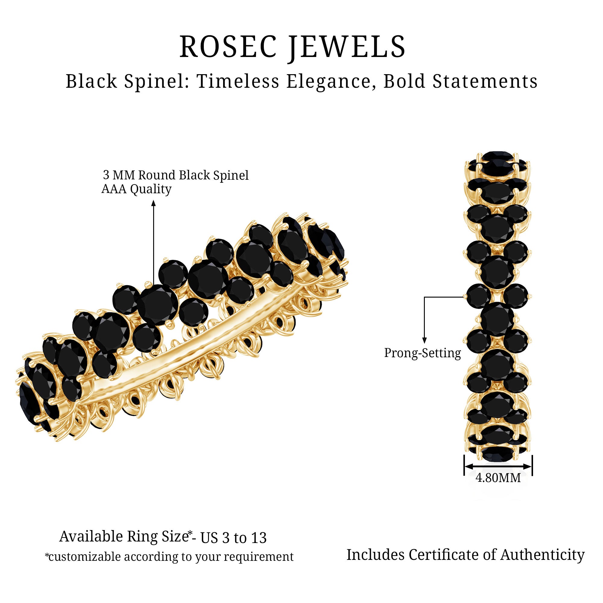 2.75 CT Prong Set Black Spinel Full Eternity Band Ring