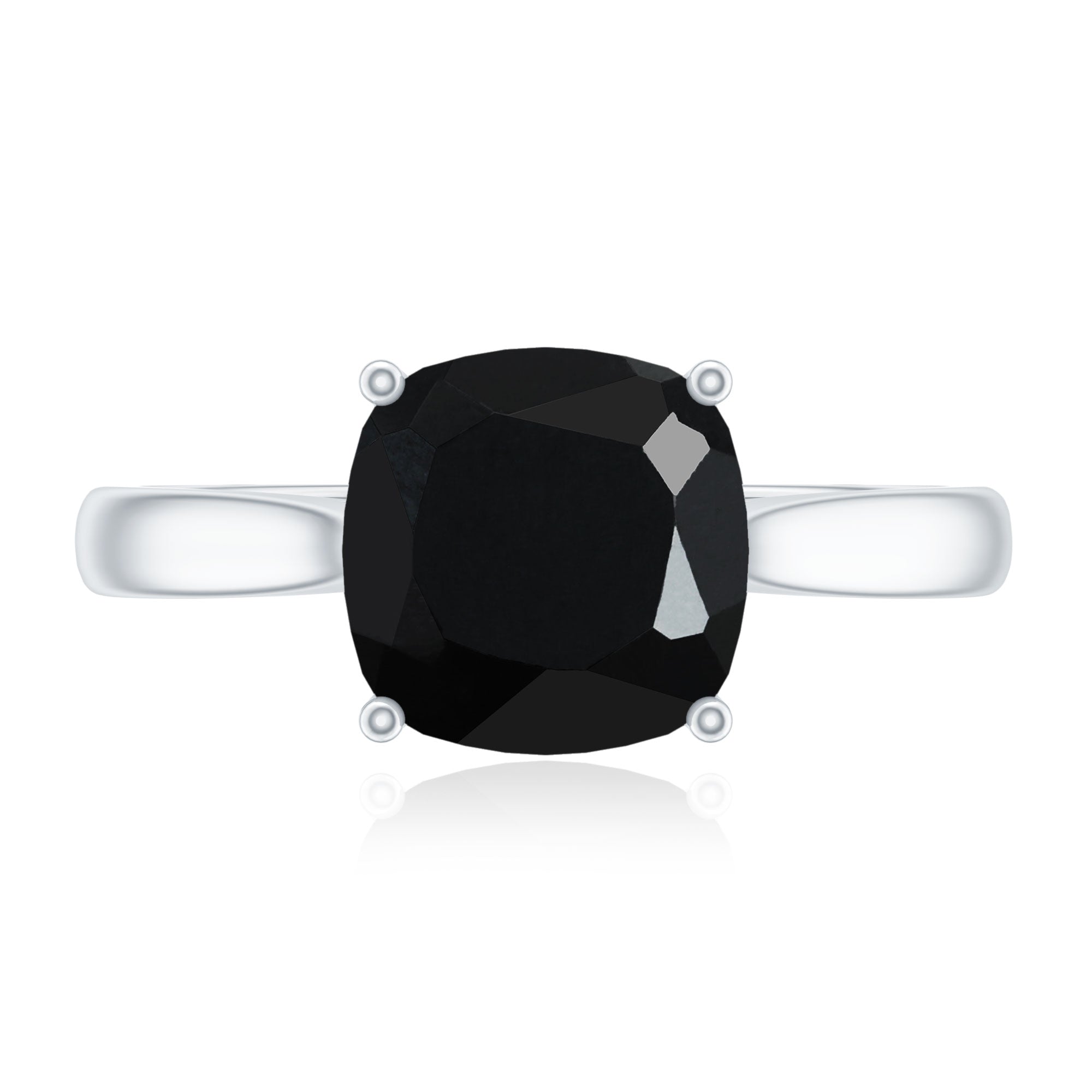 2 Carat Cushion Cut Black Spinel Solitaire Engagement Ring