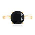 This cushion cut black spinel solitaire engagement ring is designed for those who appreciate a distinctive and modern aesthetic. The deep black tone of the center stone creates a striking presence, offering a unique alternative to traditional engagement styles.