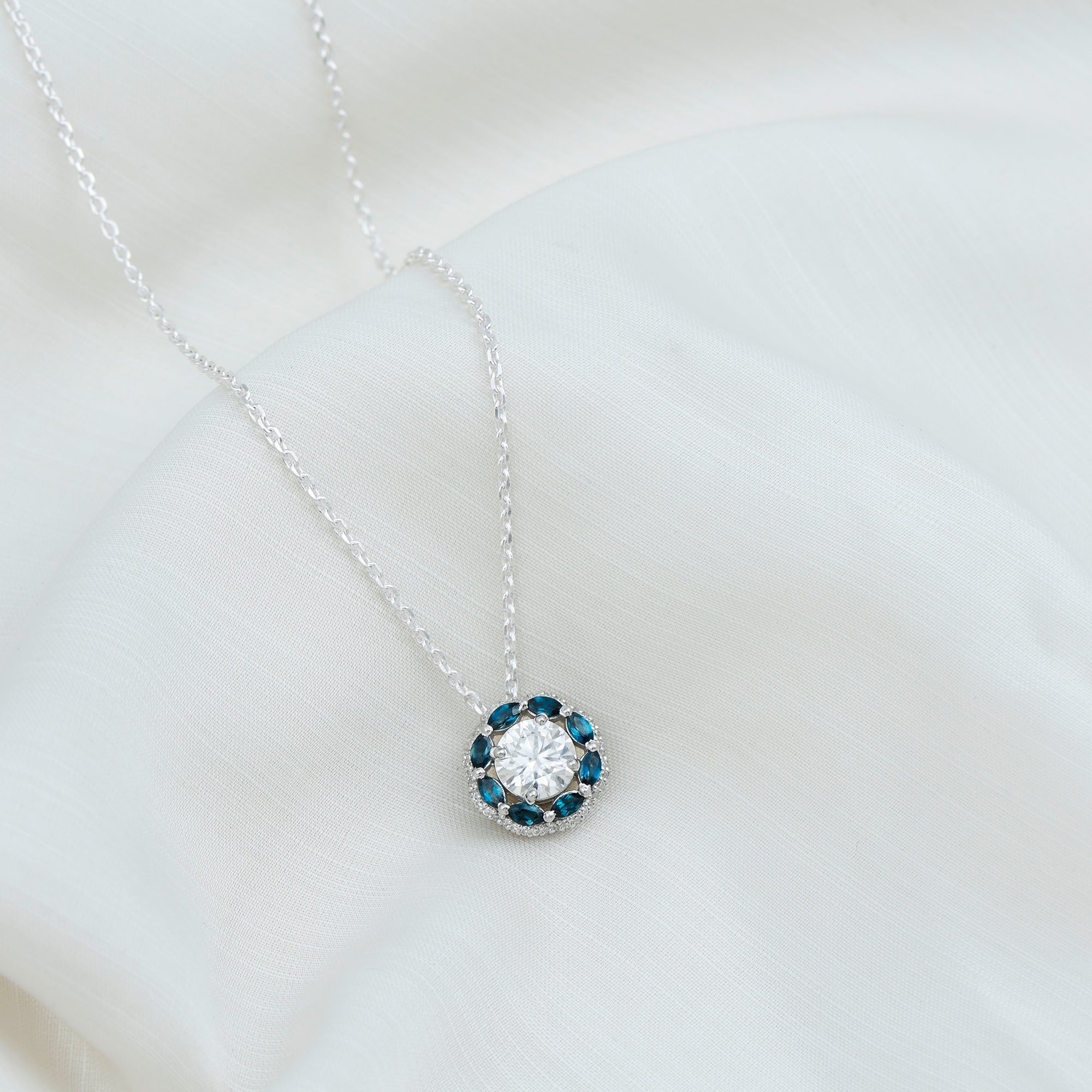 2 Carat Lab Grown Diamond Halo Necklace With London Blue Topaz