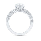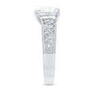 Pop the question to her with this Diamond Heart Ring that captures the depth of your love and the elegance of a bygone era. At the center of this Vintage Style Engagement Ring, a dazzling 8MM heart shaped diamond of EF-VS quality is set in secure claw setting that helps the romantic shape to sparkle from every angle. The band is a work of art in itself, handcrafted from top-notch metal and adorned with a filigree design reminiscent of antique heirlooms. Delicate milgrain detailing runs along the shank, making this 2 carat Diamond Engagement Ring a piece of timeless jewelry. The gemstone is lab grown, ensuring it possesses the same fire, clarity, and durability as a mined diamond while being an ethical and environmentally friendly choice.