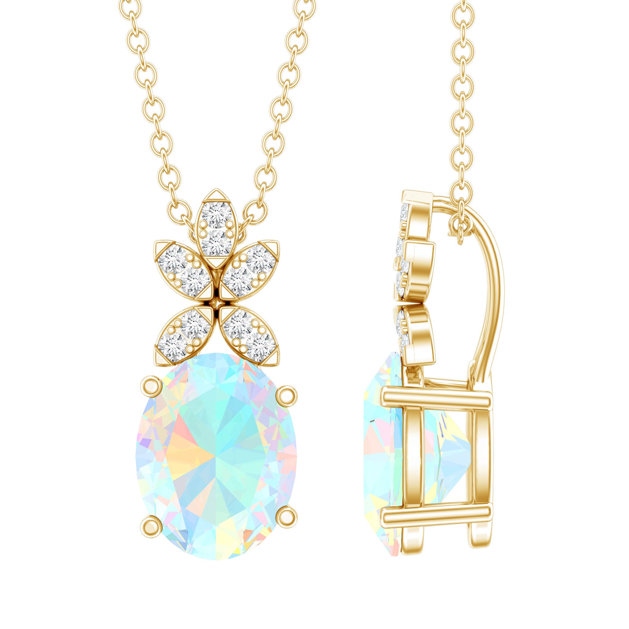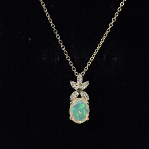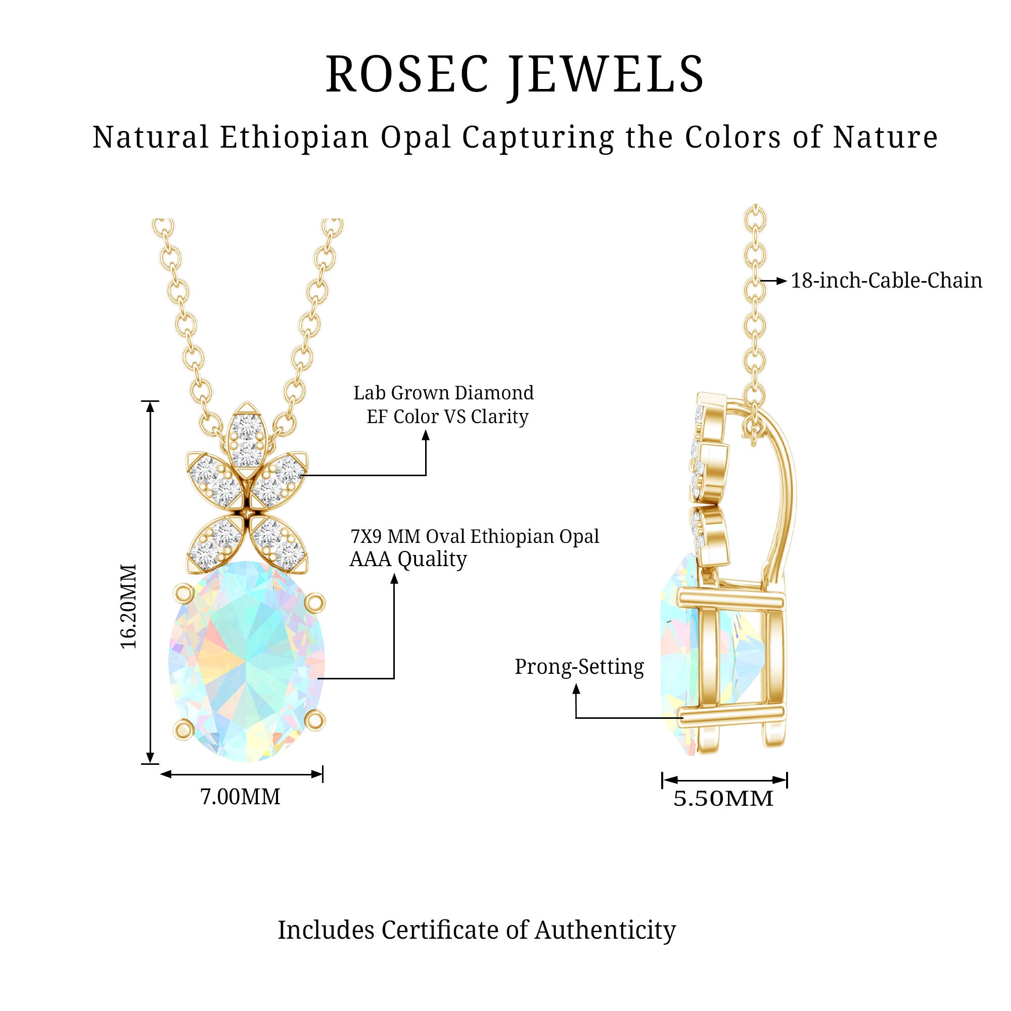 2 Carat Oval Shaped Ethiopian Opal and Diamond Flower Necklace with Chain