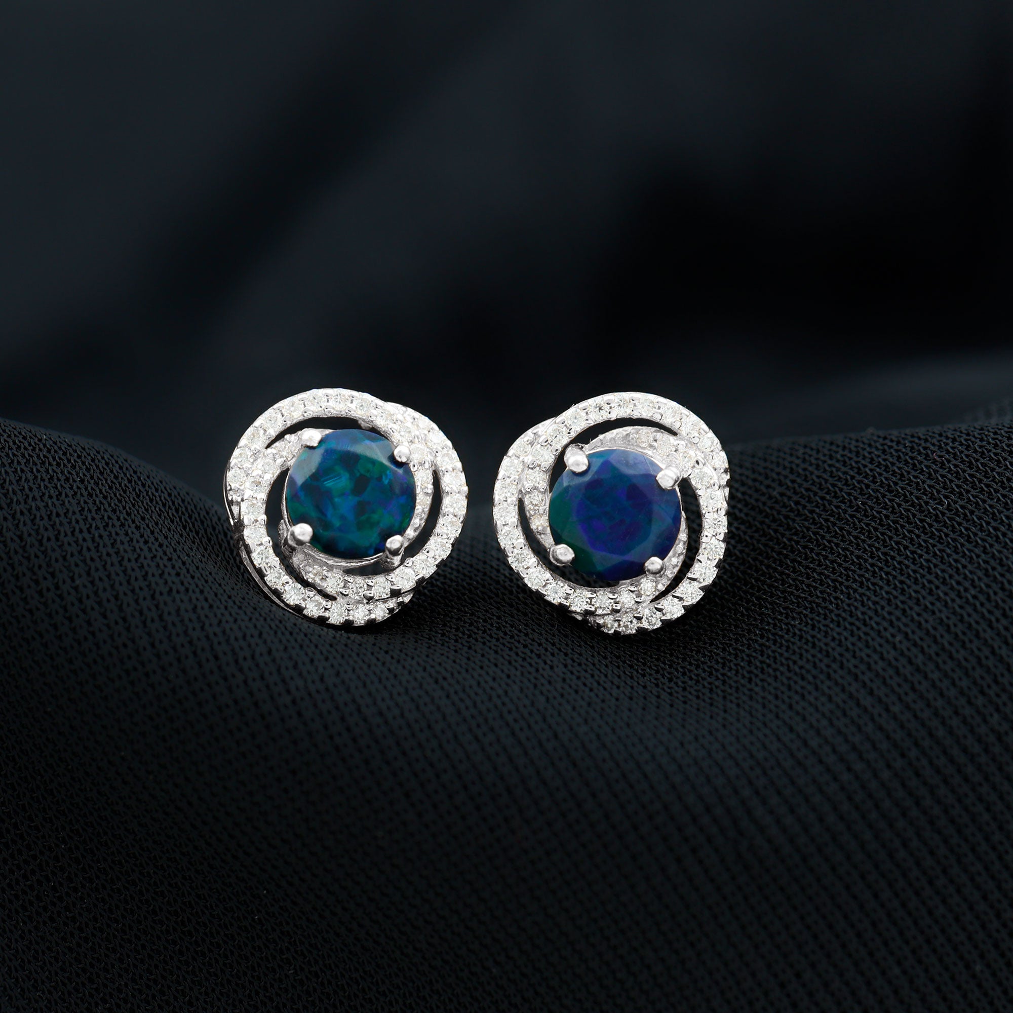 2 CT Black Opal Swirl Stud Earrings with Certificate