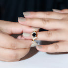 This Black Spinel Ring is a sophisticated symbol of elegance. Featuring a golden leaf motif and Diamond accents that elegantly embrace the gleaming black spinel, this nature-inspired ring is crafted from solid gold. This combination of luxurious charm and ethereal beauty is the perfect accessory for any occasion.