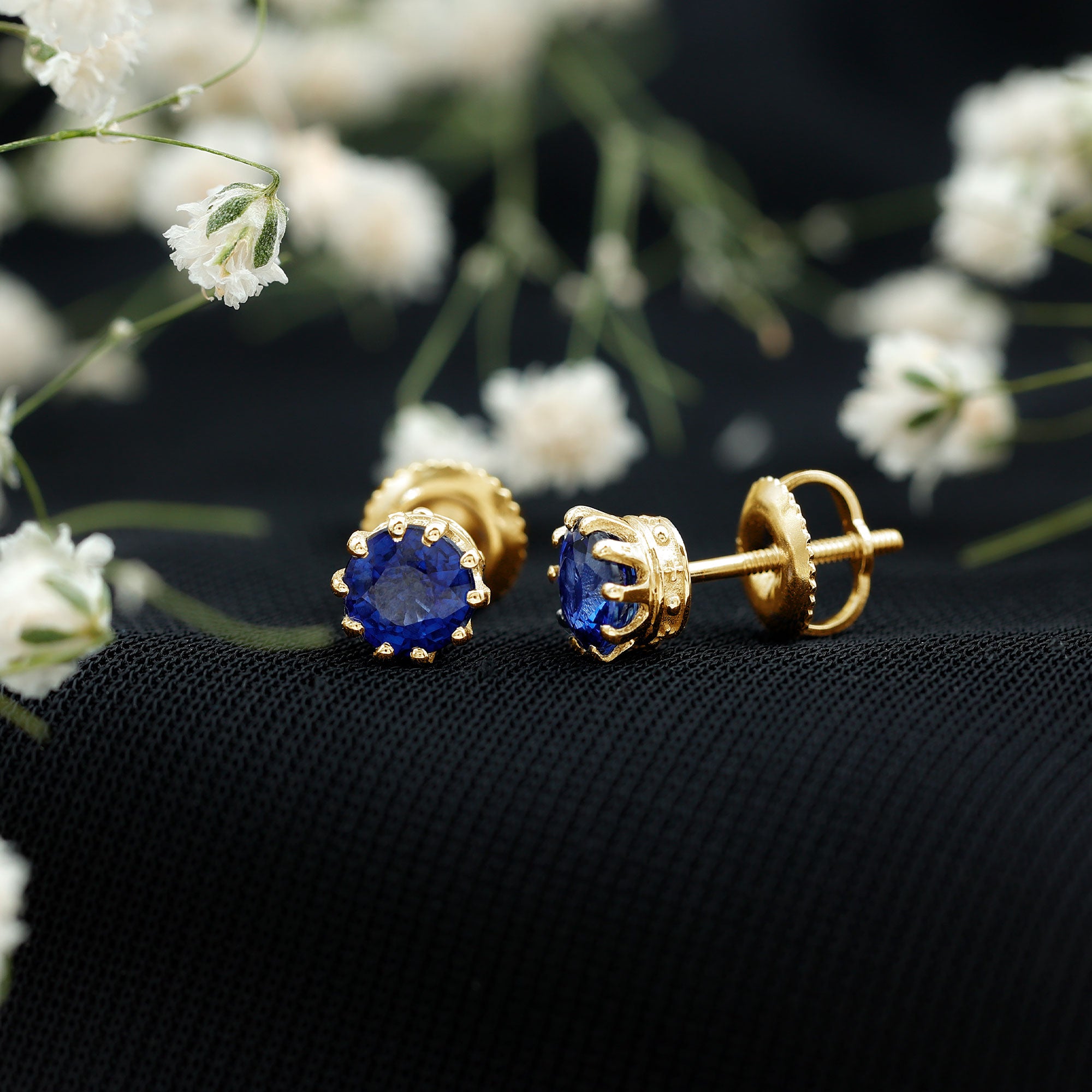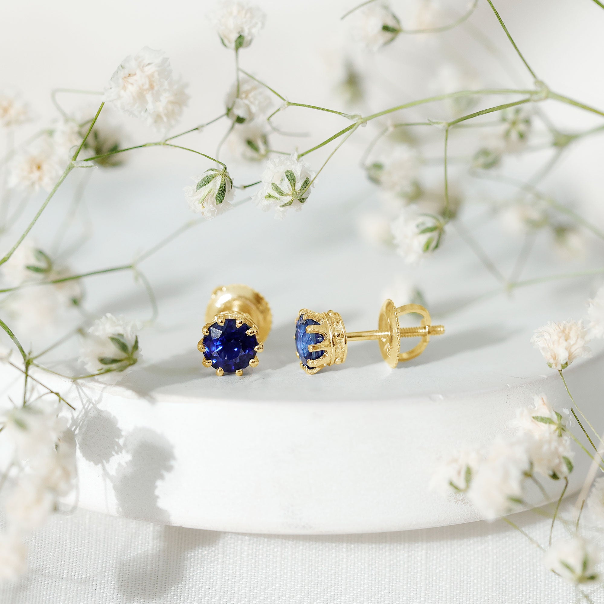 Add a pop of color to your jewelry collection with these stunning round blue sapphire solitaire stud earrings. The high-quality sapphires are set in a secure crown setting, crafted from durable and lustrous gold. The simple yet elegant design makes these earrings perfect for both casual and formal occasions, while the vibrant blue hue adds a touch of sophistication to any outfit. These sapphire stud earrings are a classic and timeless addition to any jewelry collection and make a thoughtful gift for any special occasion.