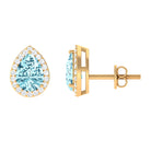 Natural Pear Shape Aquamarine Stud Earrings with Diamond Halo